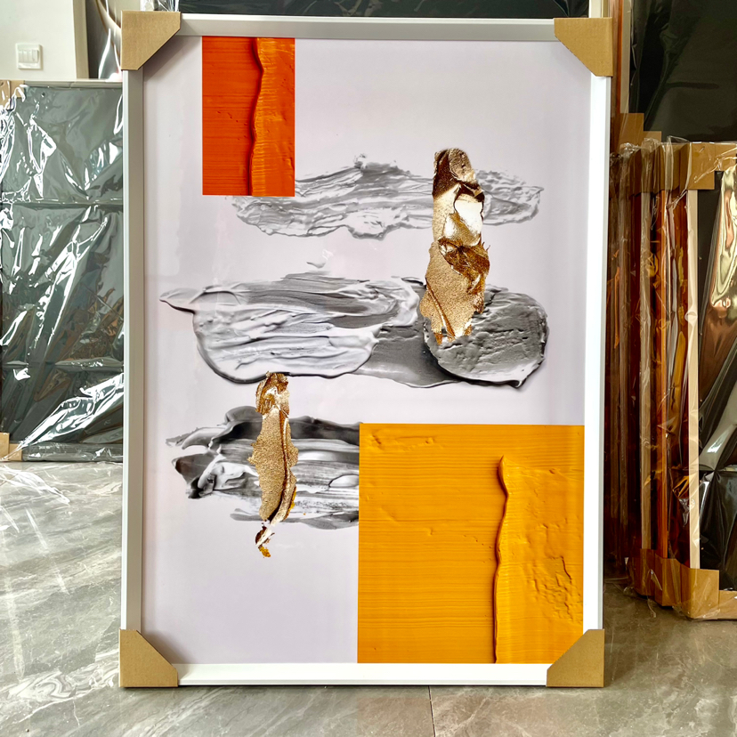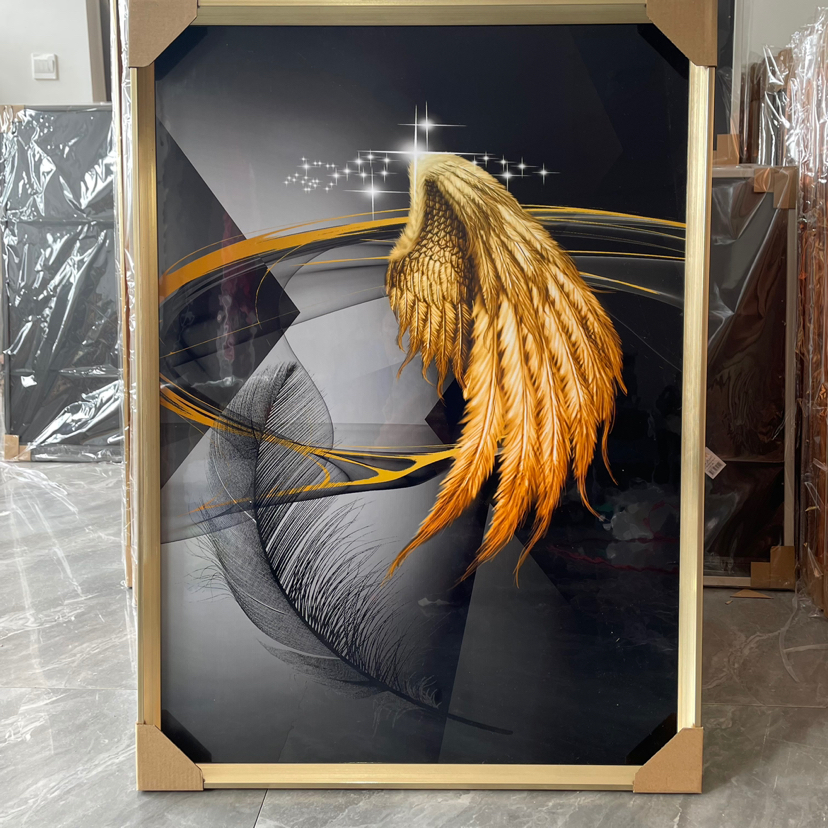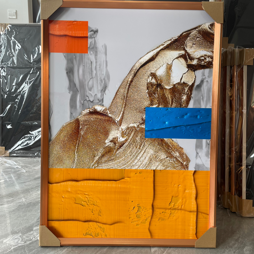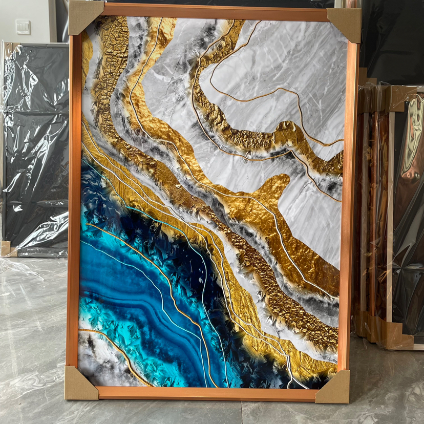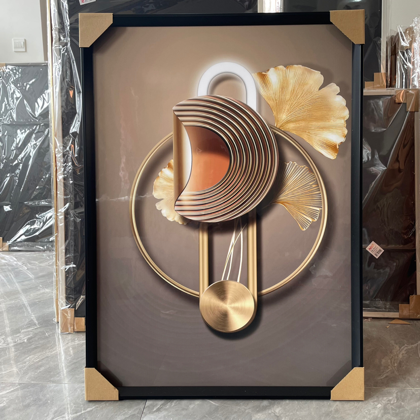 Estudio del dormitorio de la Sala de estar de película de cristal, pintura decorativa de fondo del sofá, artesanía mural, hojas abstractas modernas de lujo ligero