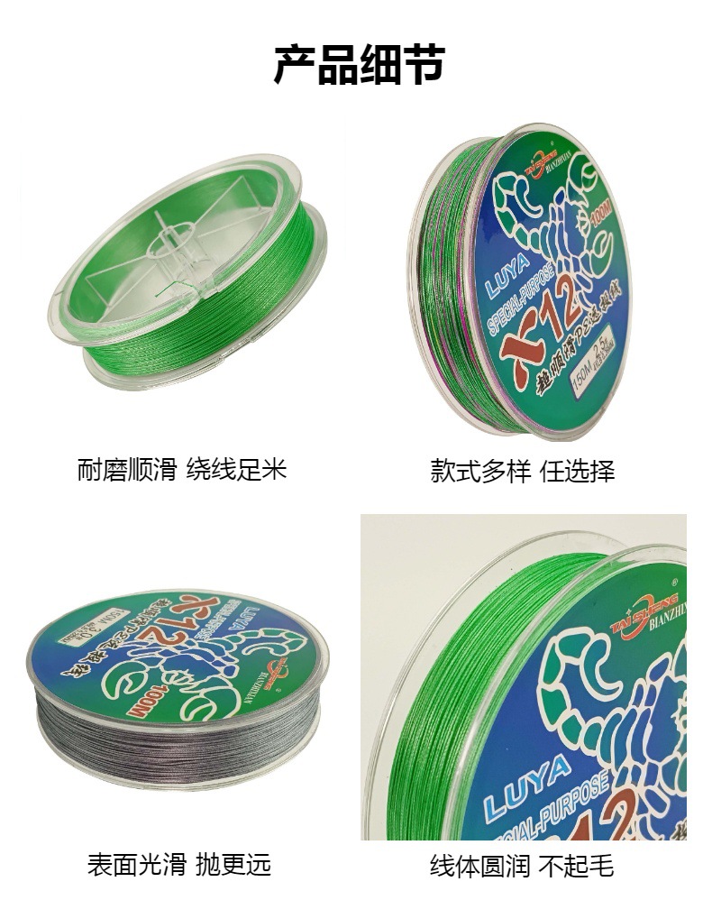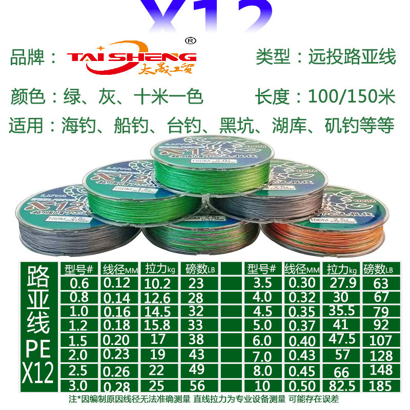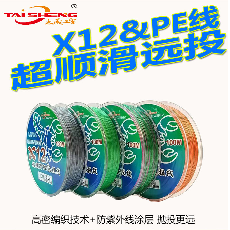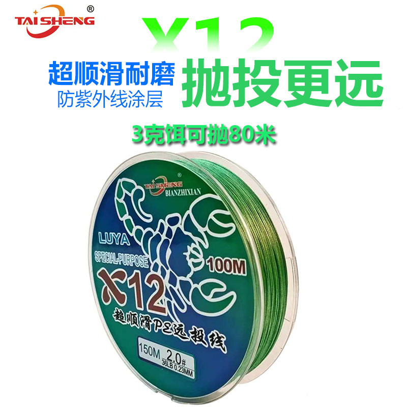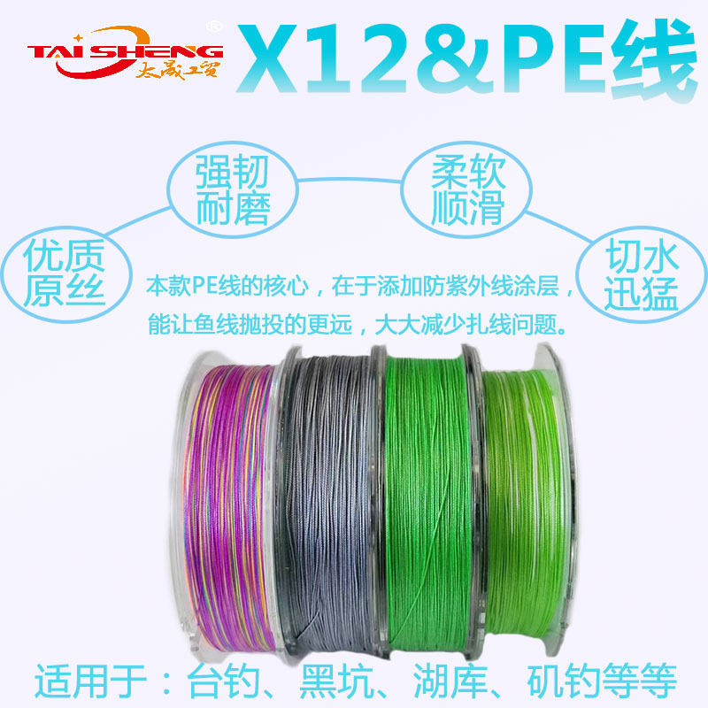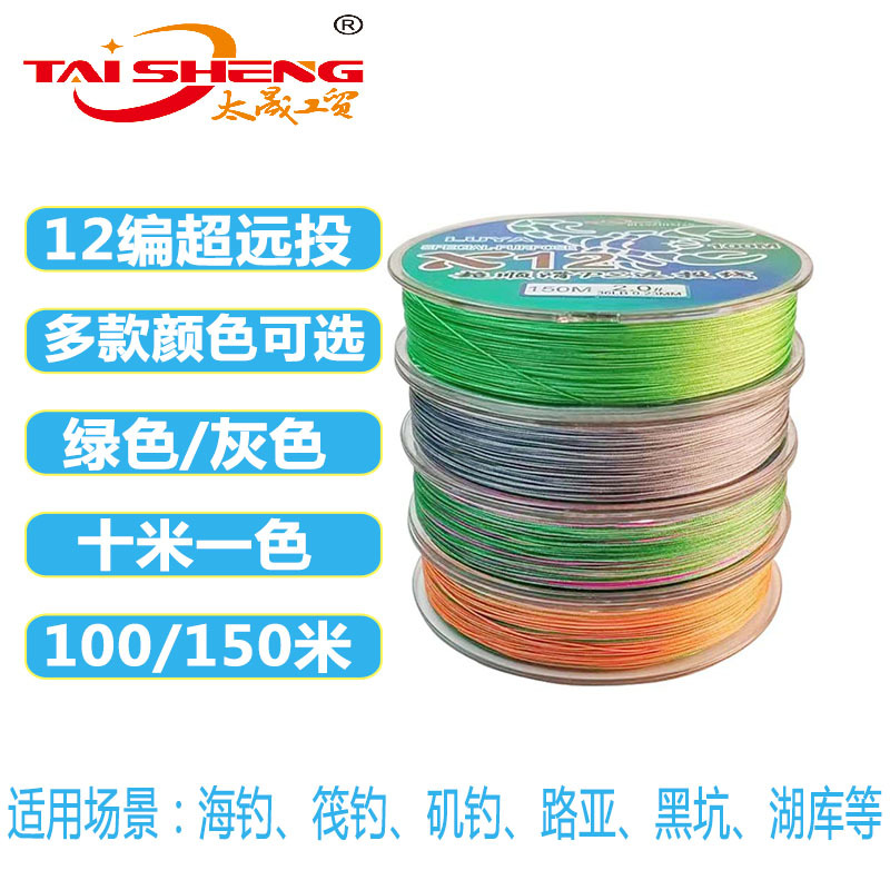 Línea de pescado taisheng 12 tejidos 100 metros línea tejida de caballos vigorosos pesca marina lei Qiang rueda giratoria de pescado negro pe línea de lanzamiento lejano Lu subcline