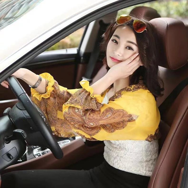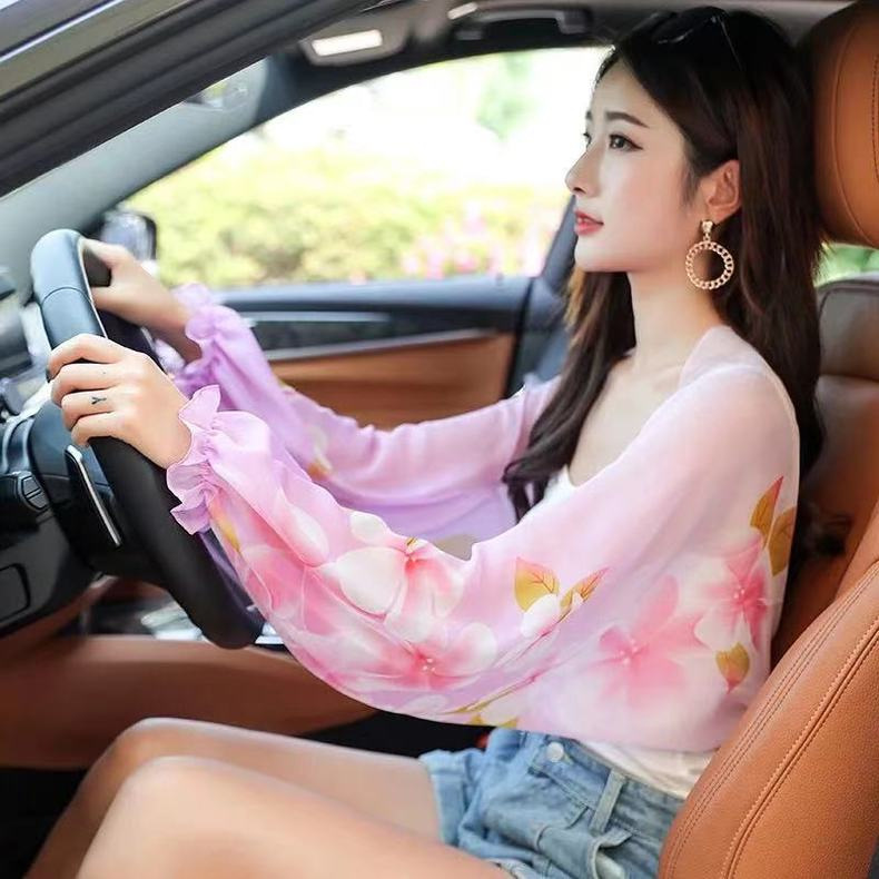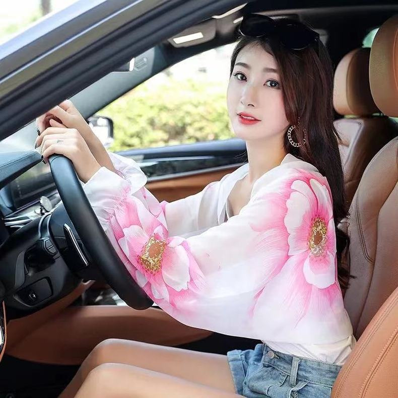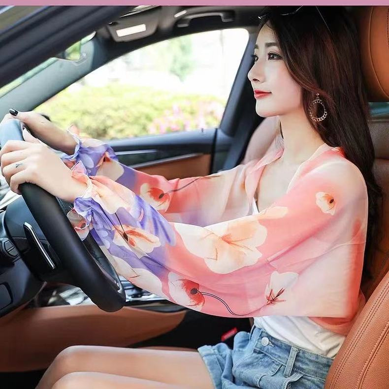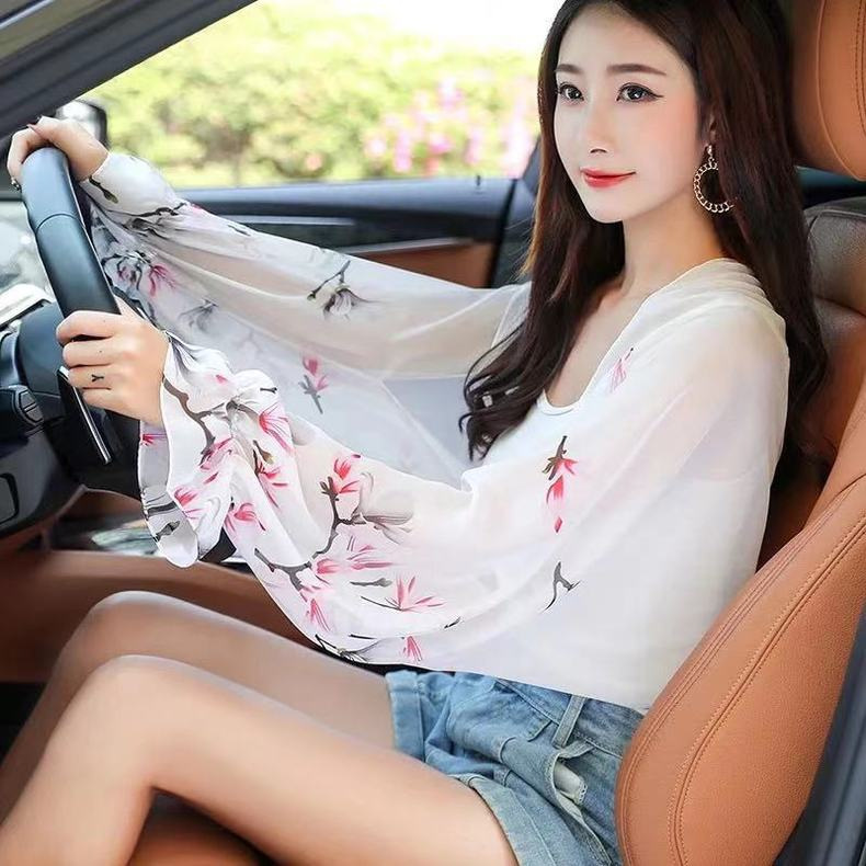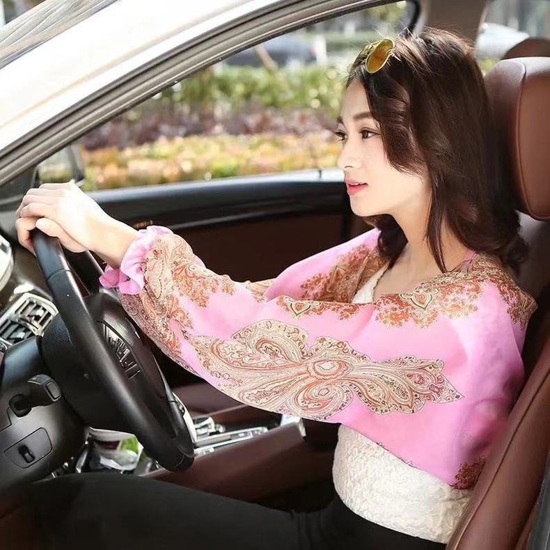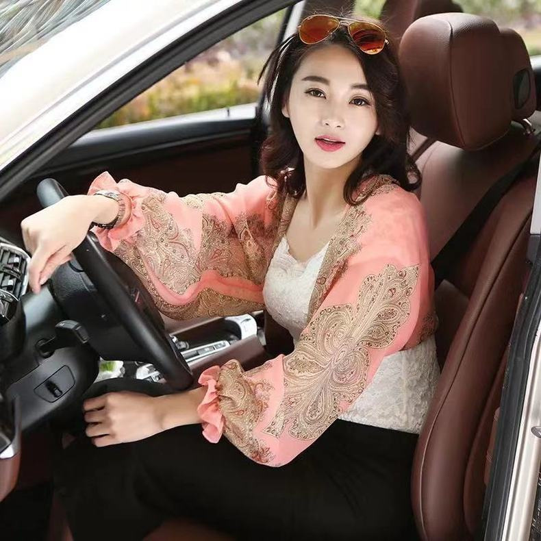 Nueva capa de protección solar de chifón en primavera y verano, ropa de protección solar de anacardo, conducción al aire libre, manga impresa, aire acondicionado, bufanda de seda fina