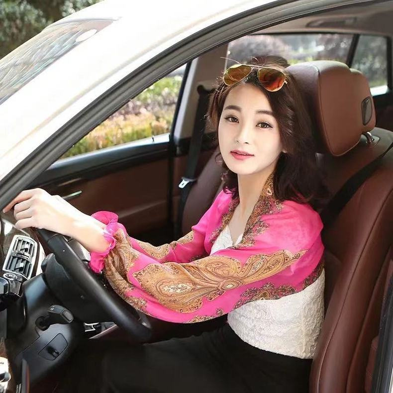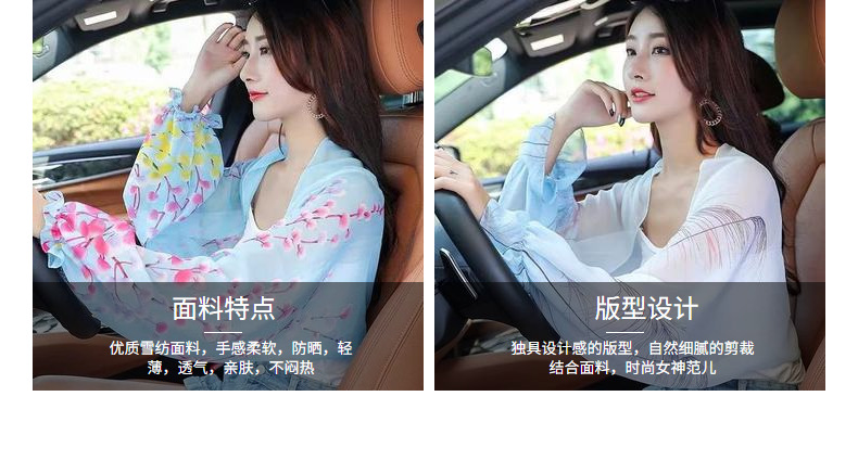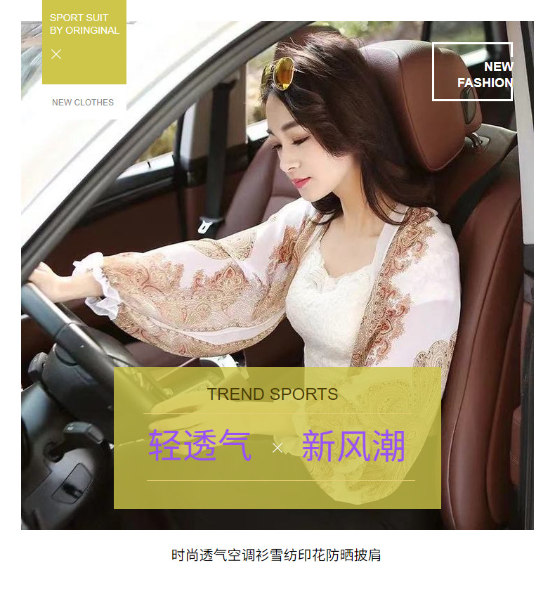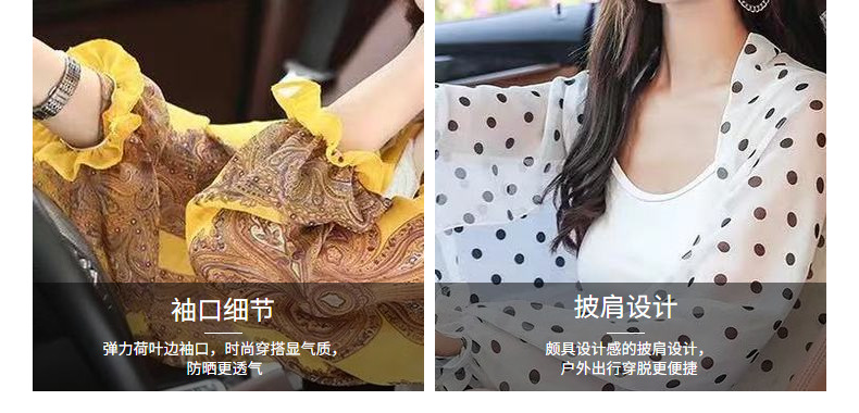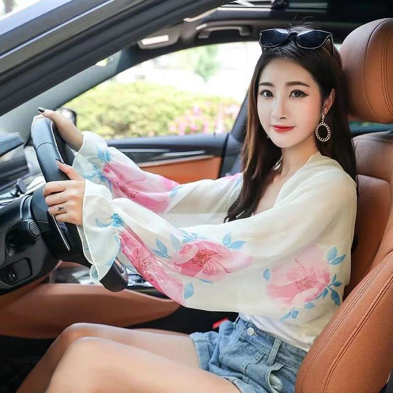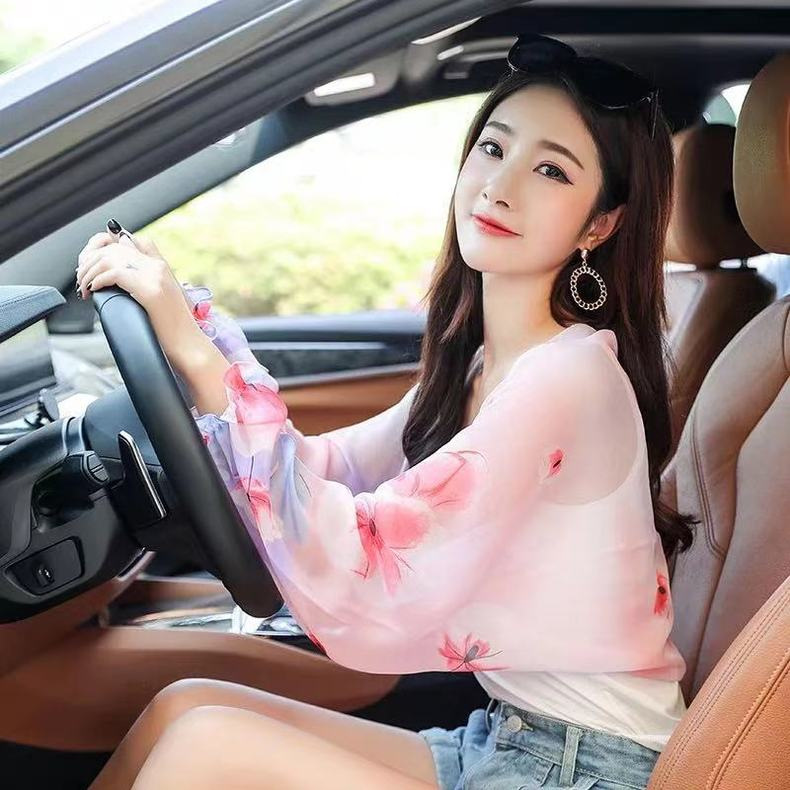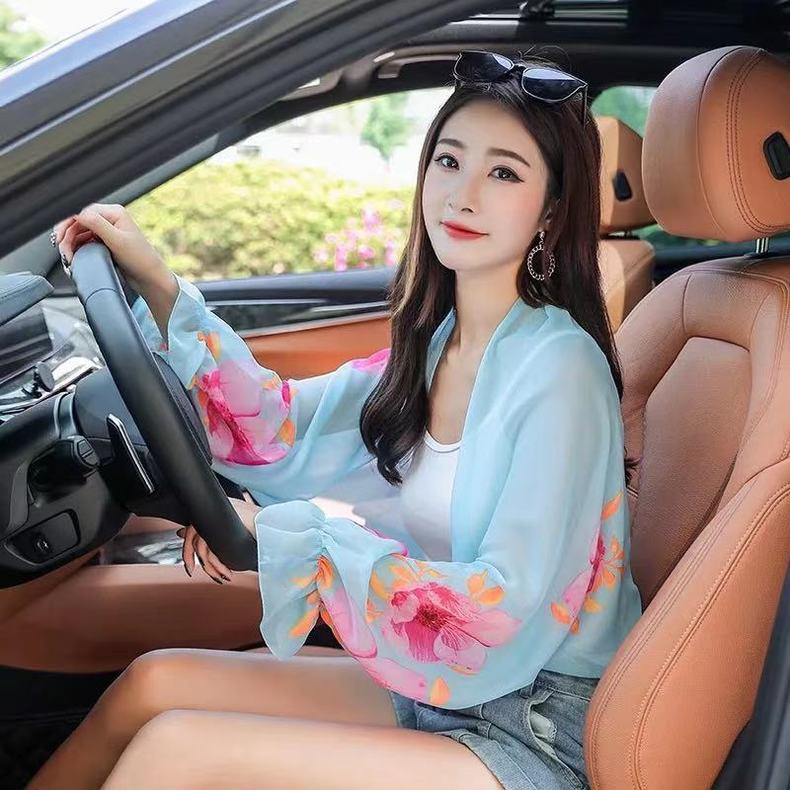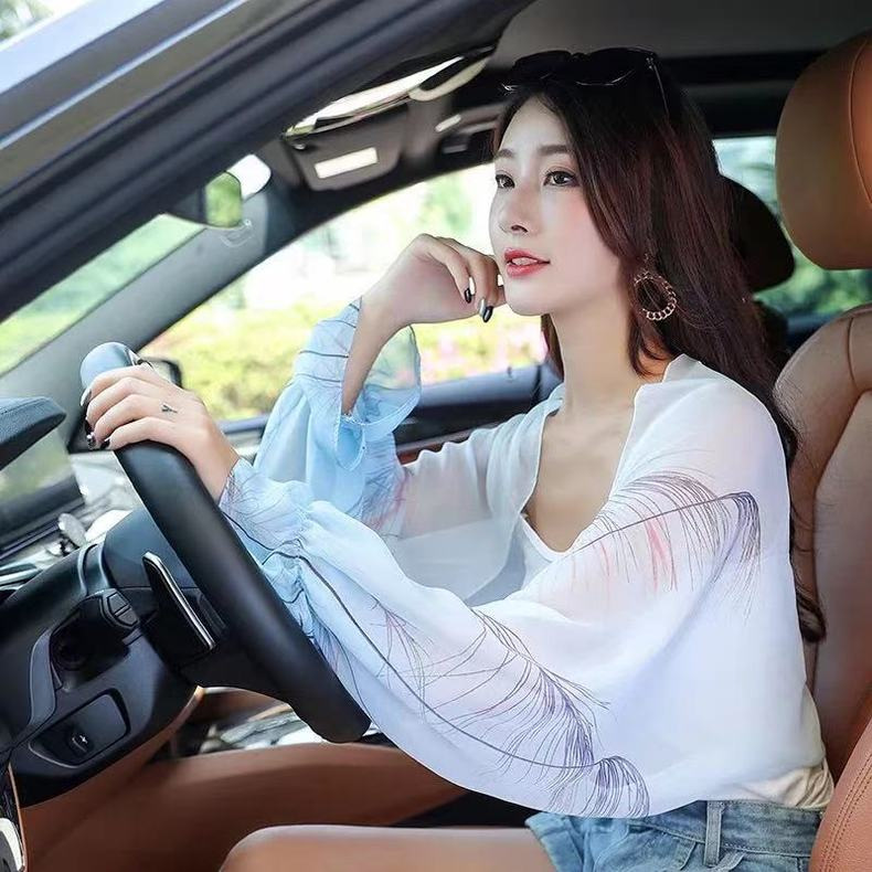 Nueva capa de protección solar de chifón en primavera y verano, ropa de protección solar de anacardo, conducción al aire libre, manga impresa, aire acondicionado, bufanda de seda fina