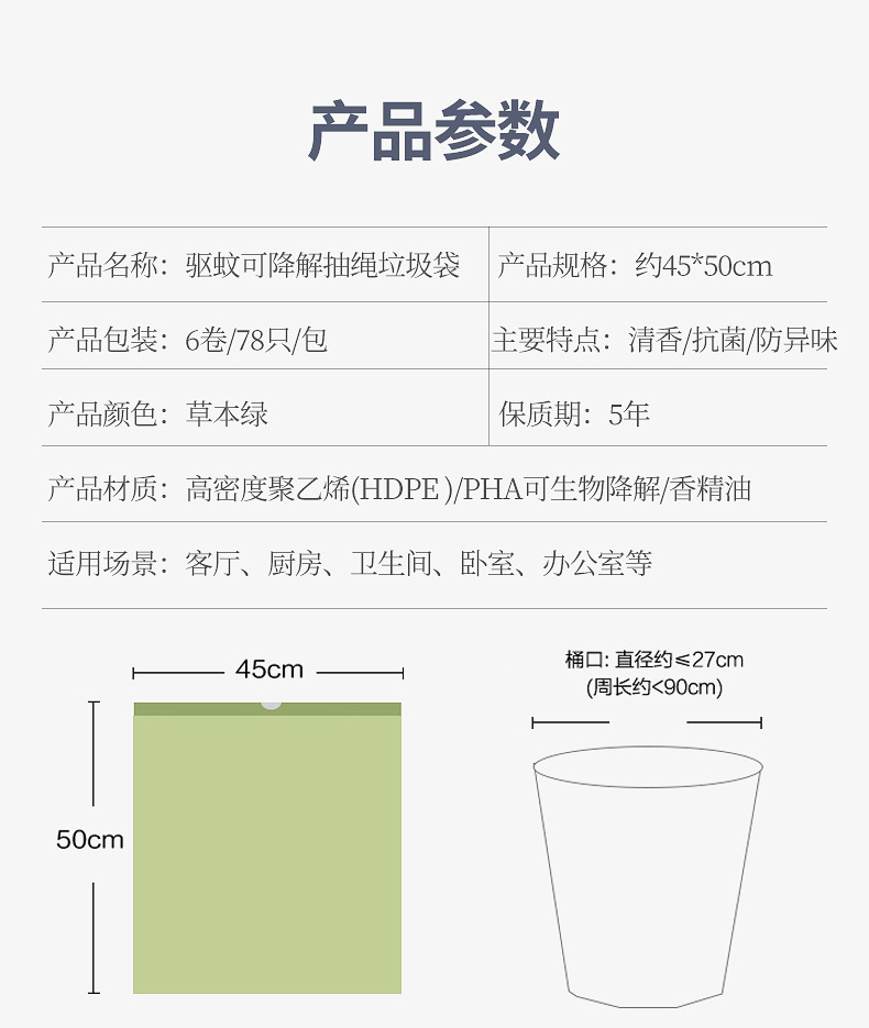- Bolsa de basura de extracción de cuerda repelente de mosquitos de extracción de cuerda de rocío de flores bolsa de basura de extracción de cuerda doméstica bolsa de basura de extracción de cuerda bolsa de basura de cocina bolsa de basura pesada
