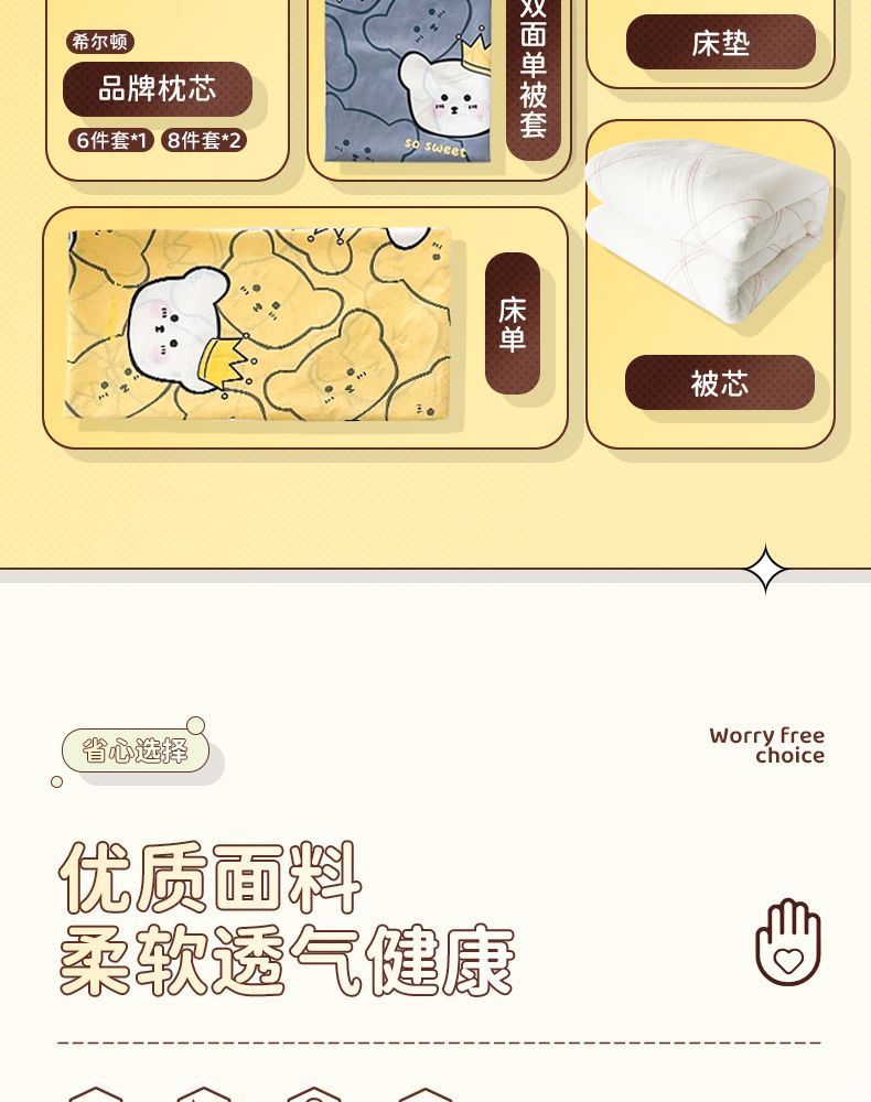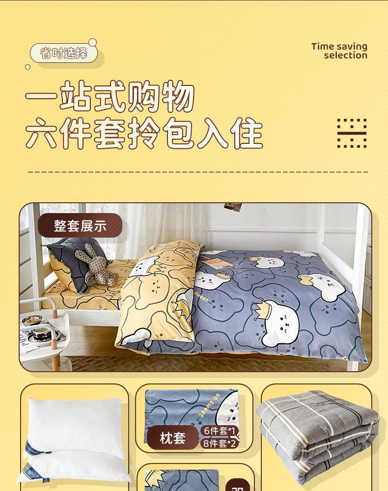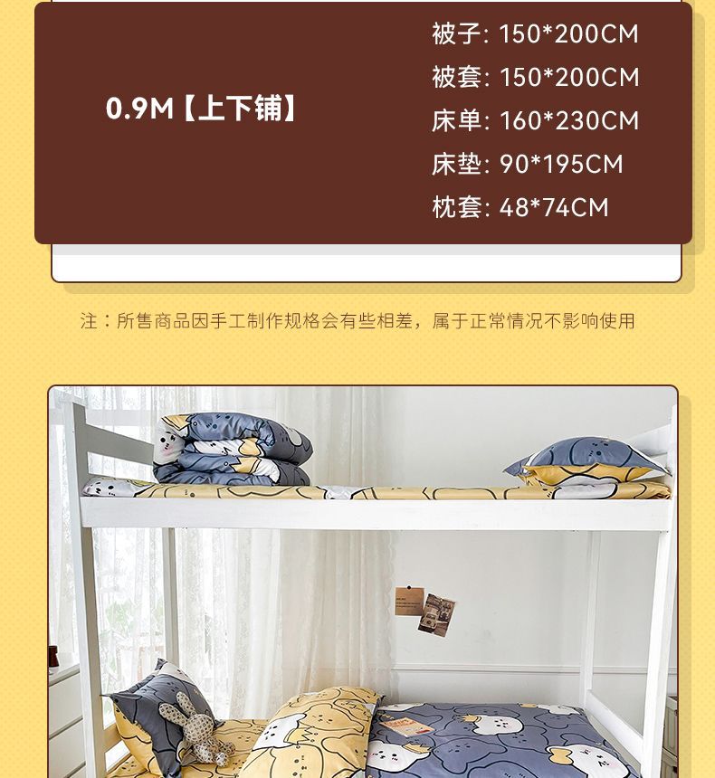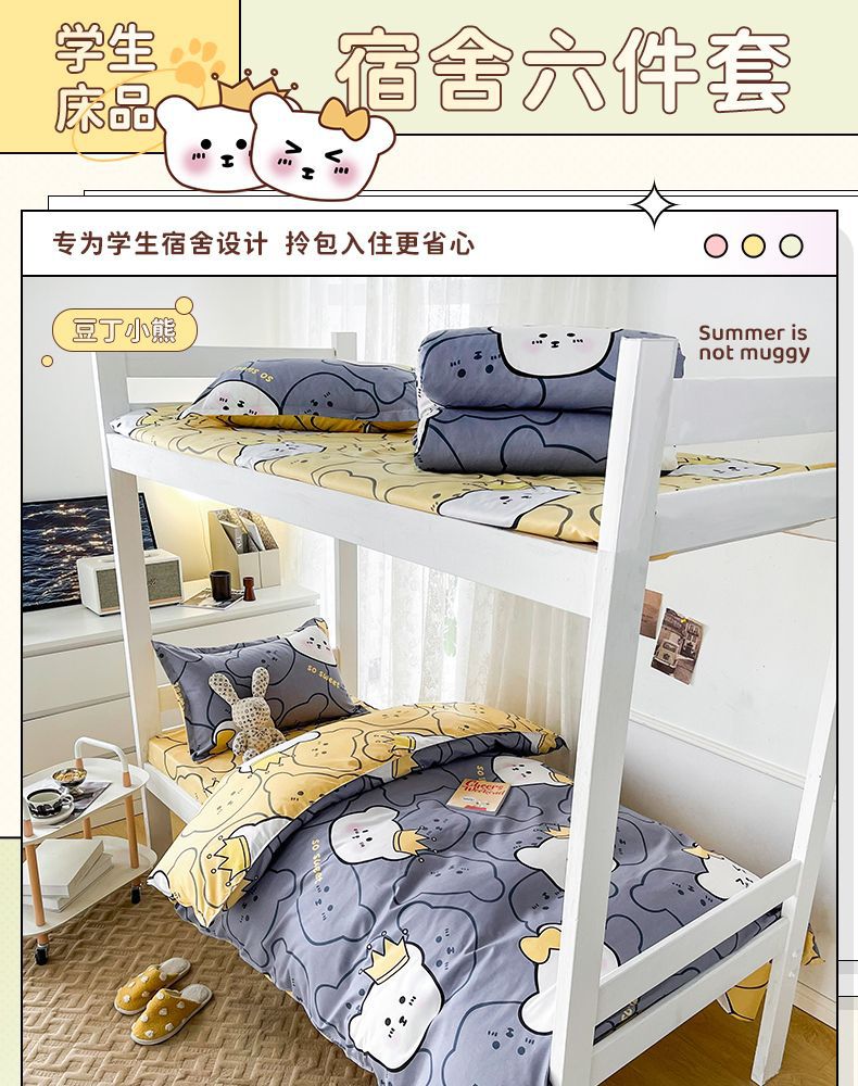 Seis edredones en el dormitorio, un conjunto completo de ropa de cama para estudiantes individuales, 90 camas impresas arriba y abajo