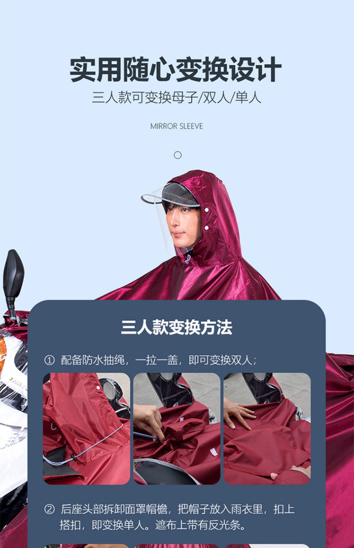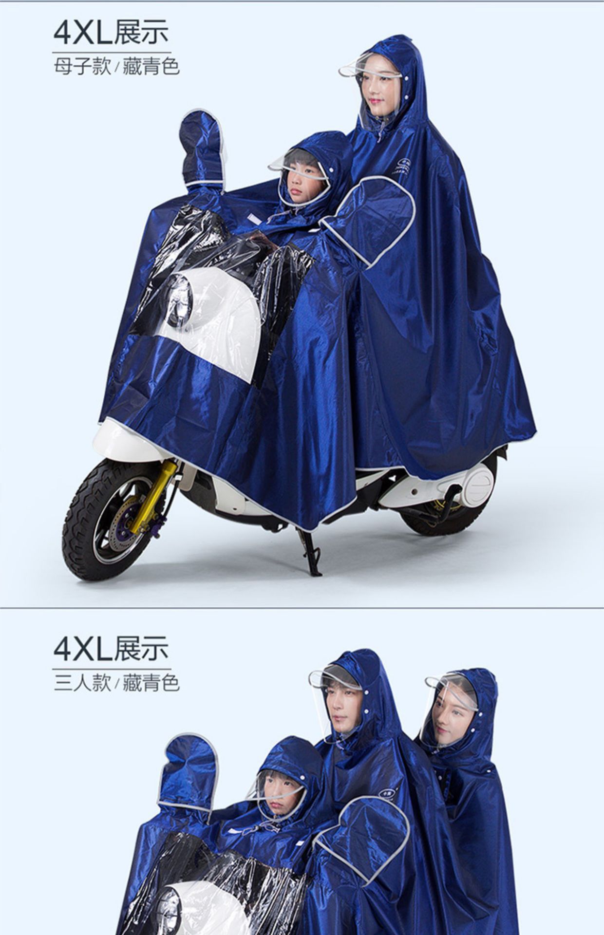 Los impermeables dobles de tres personas de padres e hijos delanteros se engrosan y aumentan los impermeables antidisturbios de los vehículos eléctricos de batería de motocicletas.
