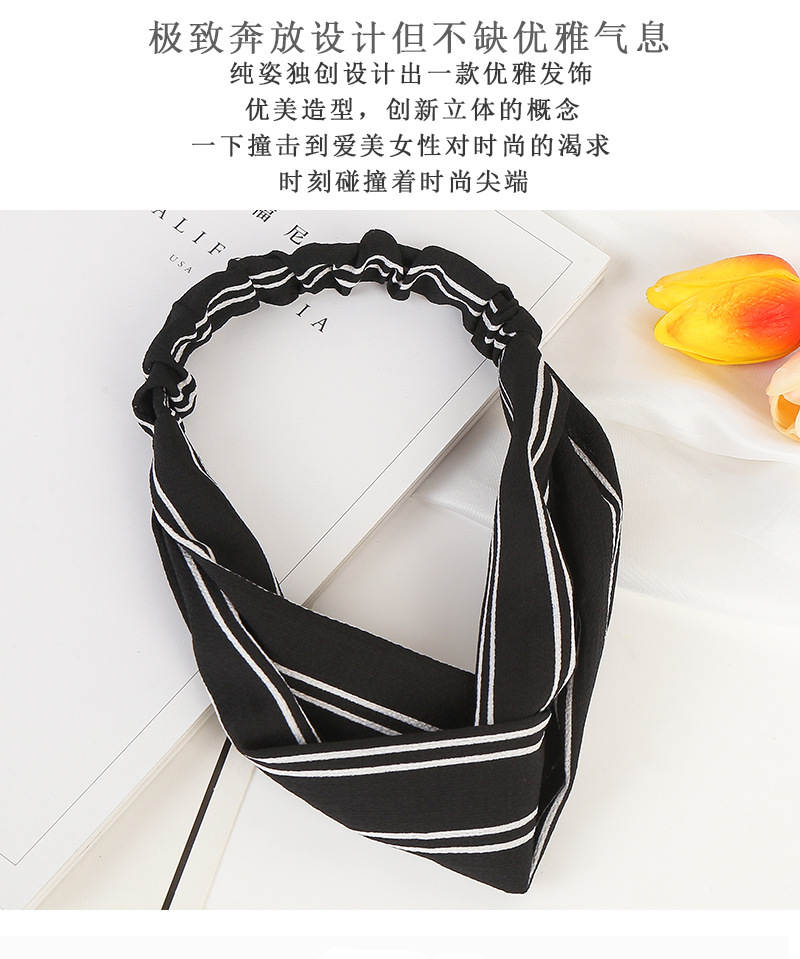 La versión coreana de la tela es elástica, raya, cinturón de pelo, chiffon, tela elástica, cinturón de pelo ancho, mujer, lavado facial, maquillaje, cinturón de pelo.