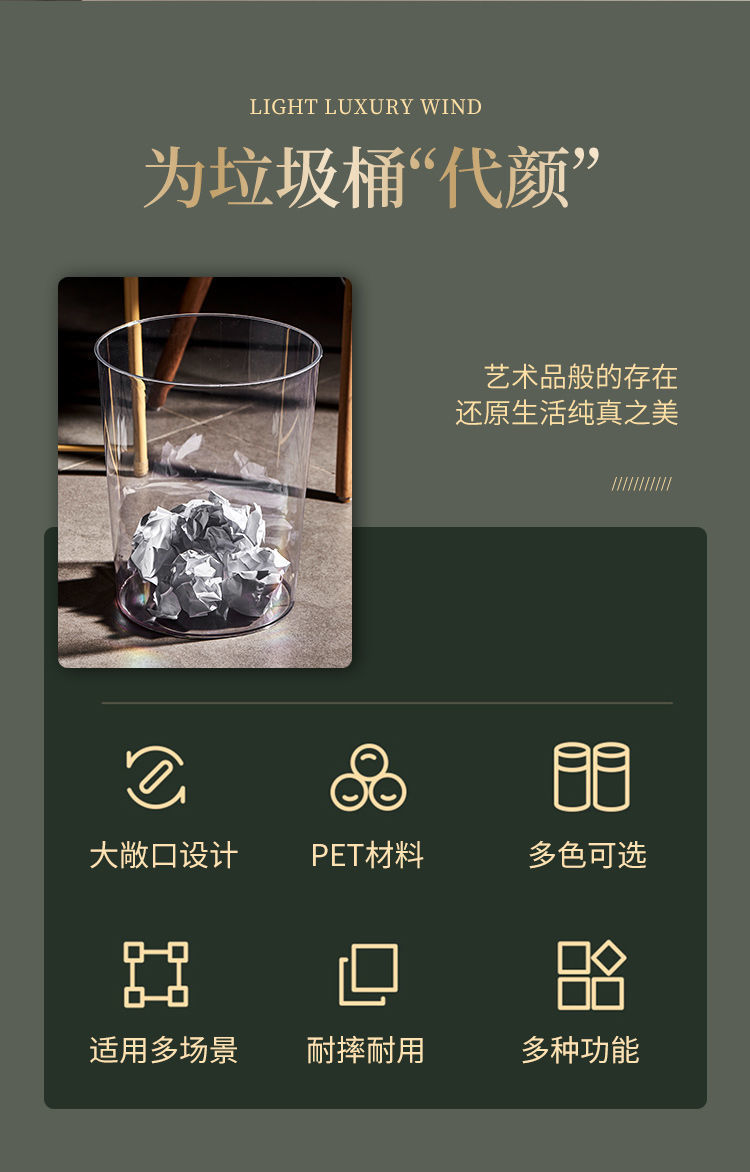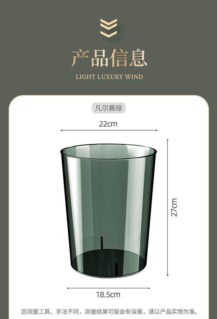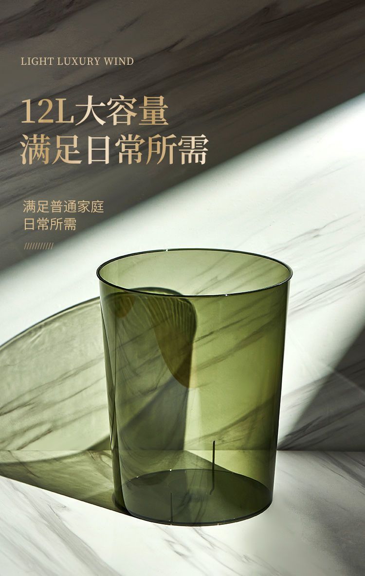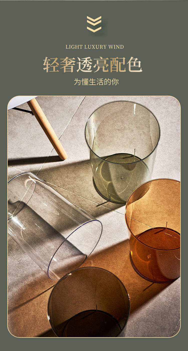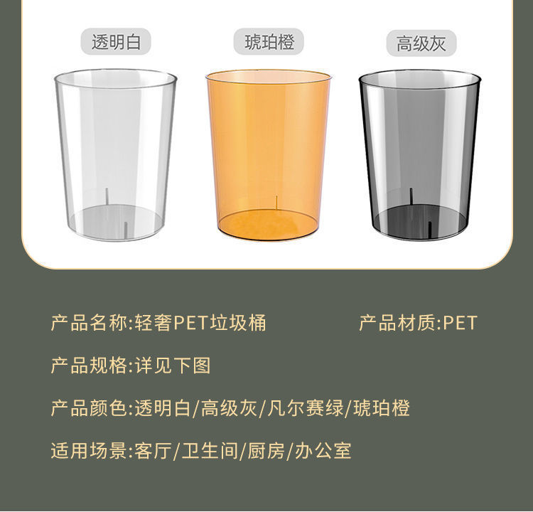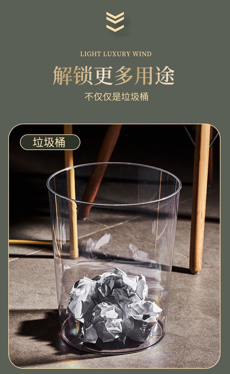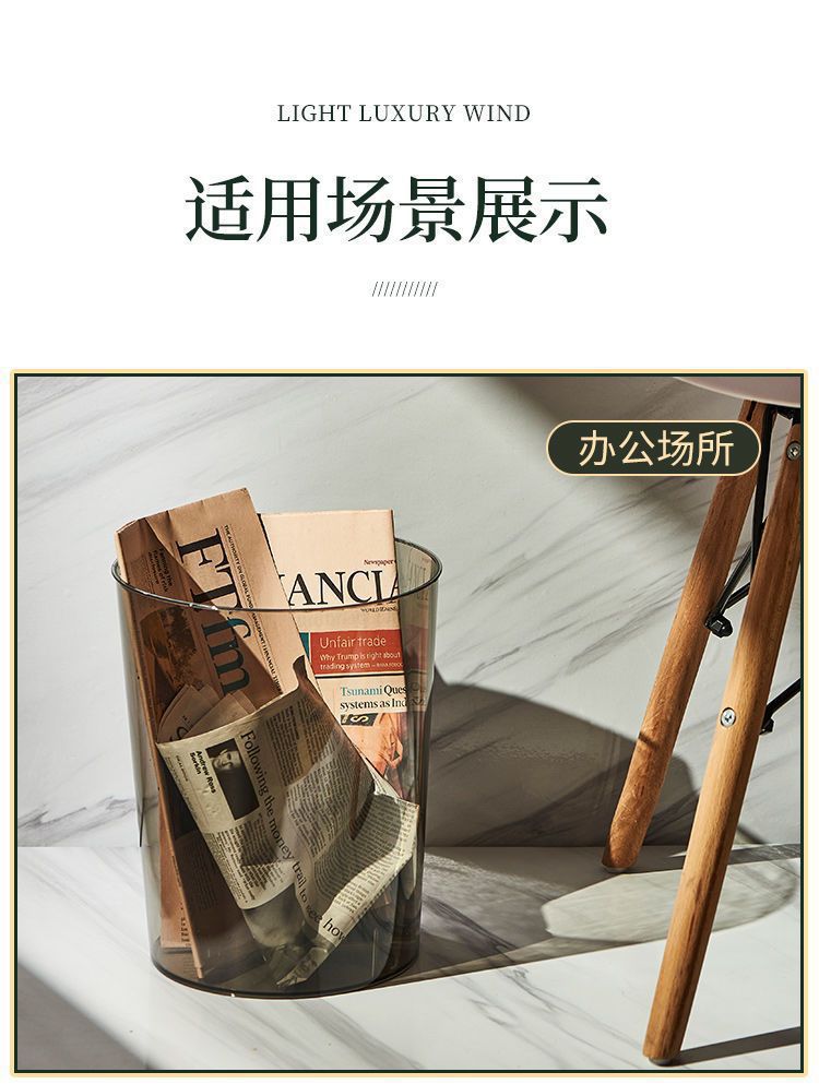 Bote de basura transparente de lujo ligero, Sala de estar, baño doméstico, cocina, escritorio, dormitorio de oficina de gran capacidad, papelera
