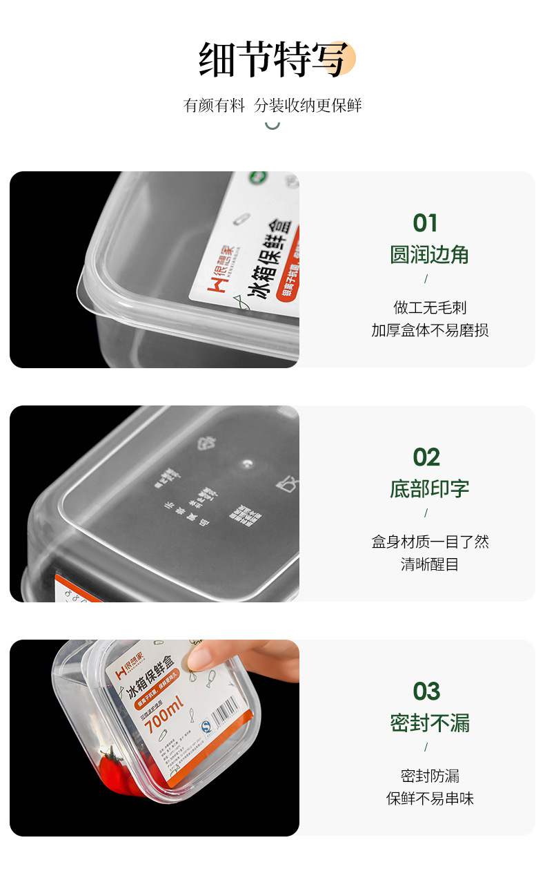 Caja de conservación de plástico refrigerador de alimentos caja sellada de microondas doméstica caja de almacenamiento cuadrada de cocina caja de almacenamiento transparente