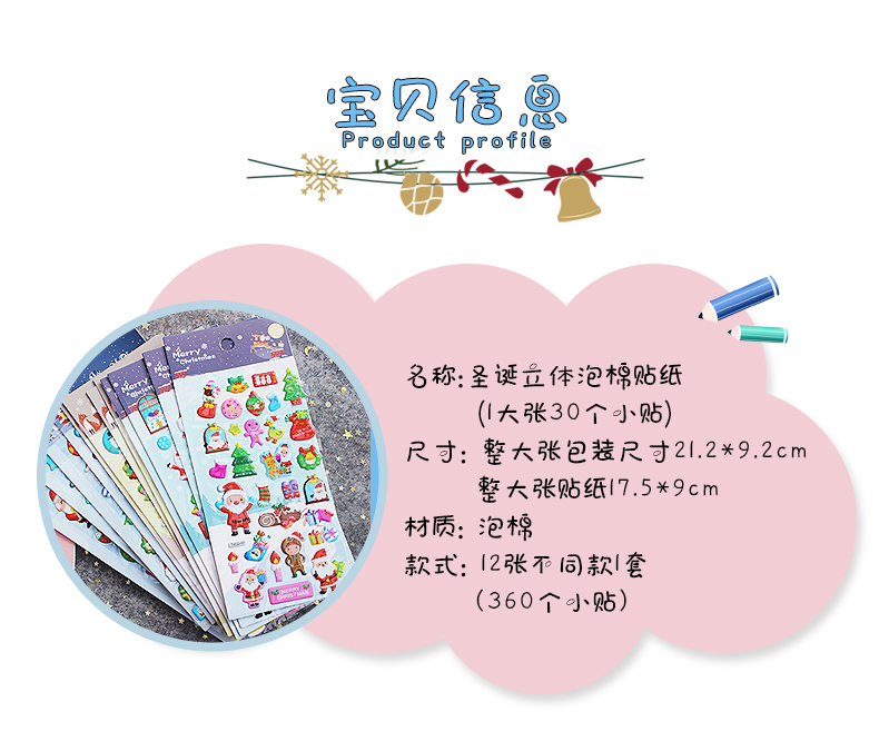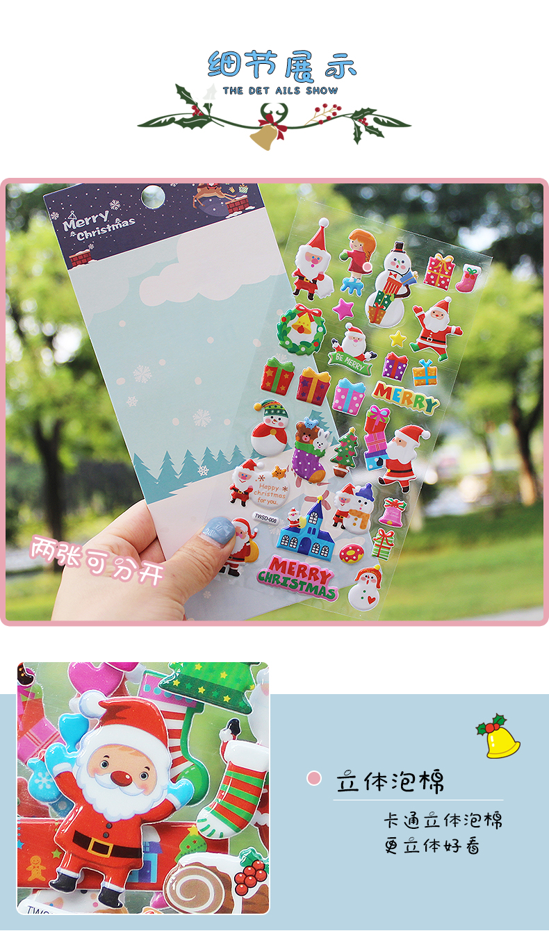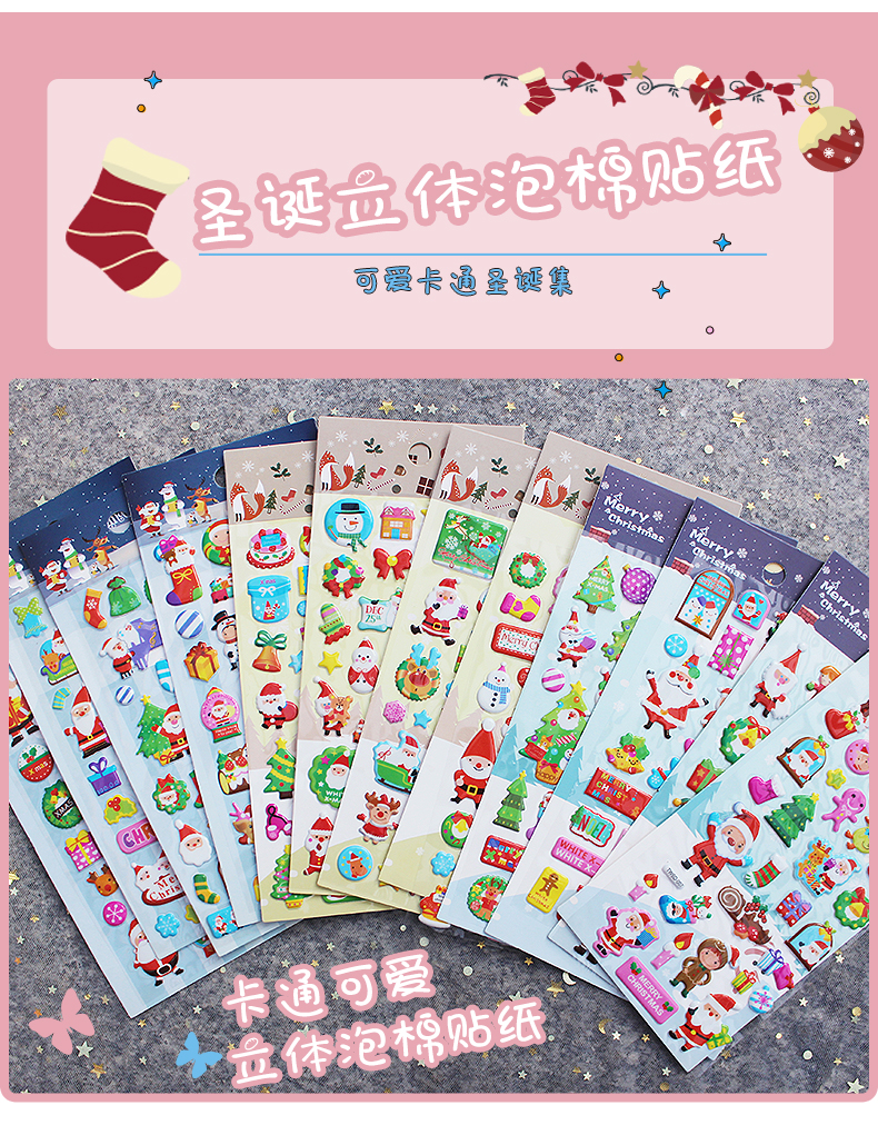 Decoración de escenas navideñas pegatinas de espuma tridimensional jardín de infantes de primaria regalos de Papá Noel premios pequeños regalos