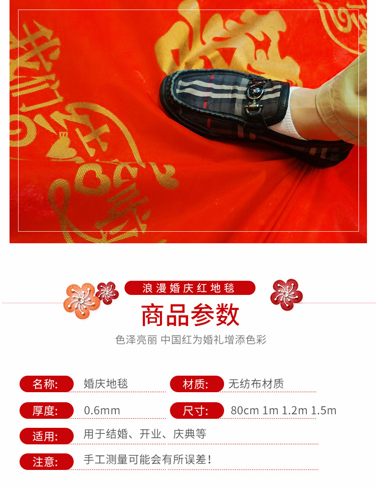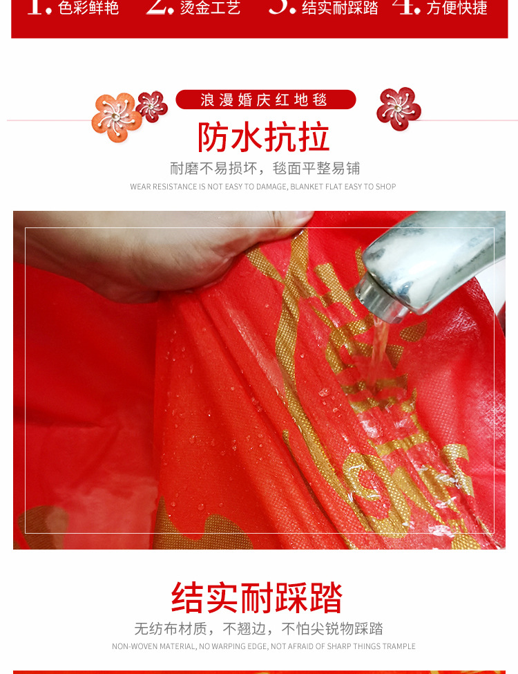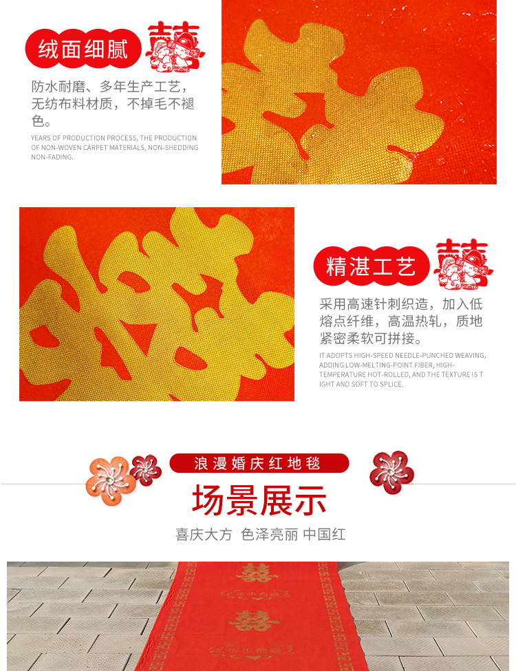 Boda de alfombra roja boda al por mayor desechable boda engrosamiento de la boda roja celebración antideslizante apertura de invitados y cabello