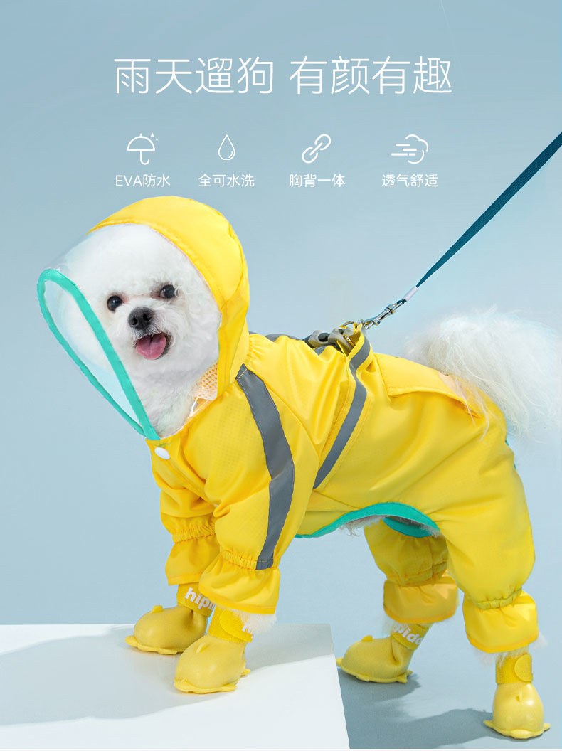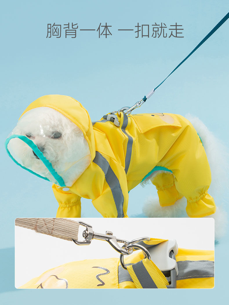 Impermeable para perros estampado de pato amarillo, impermeable para perros de cuatro pies, más impermeable que la ropa para mascotas de oso Teddy bomei