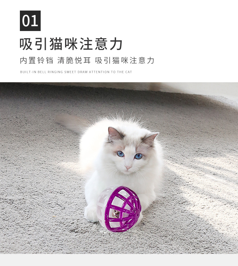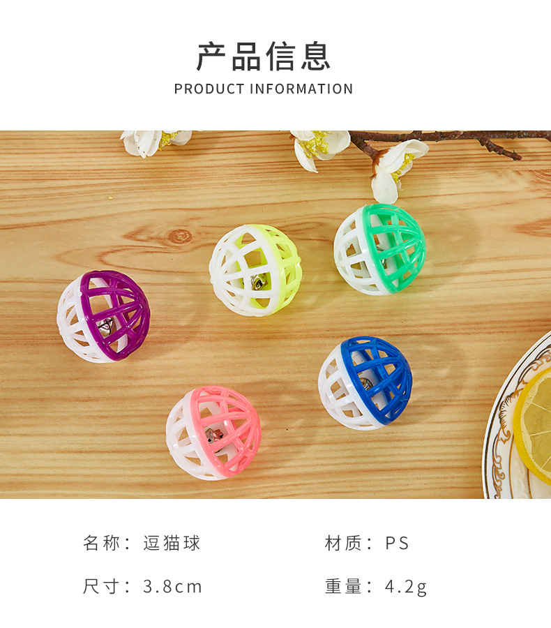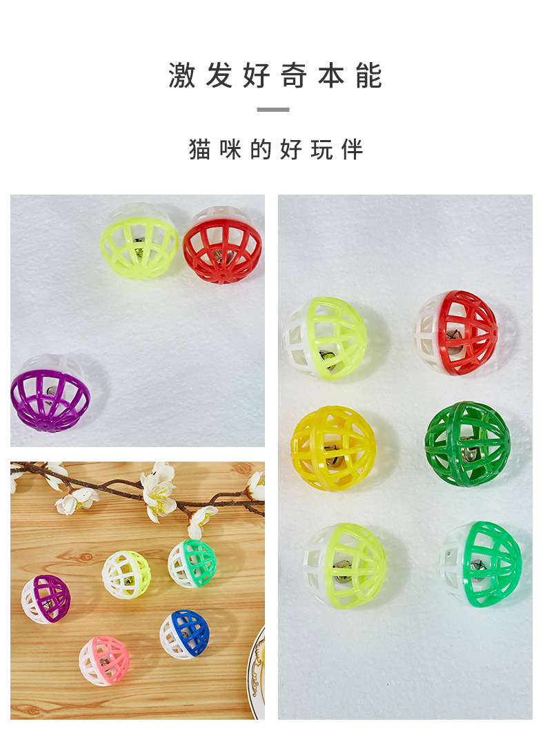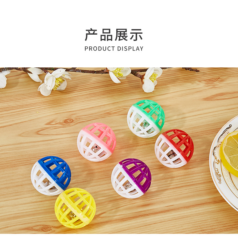 Bola de juguete para gatos mascotas bola de juguete de plástico campana bicolor hueca 3,8 cm gato divertido tirar bola de juguete de plástico para mascotas