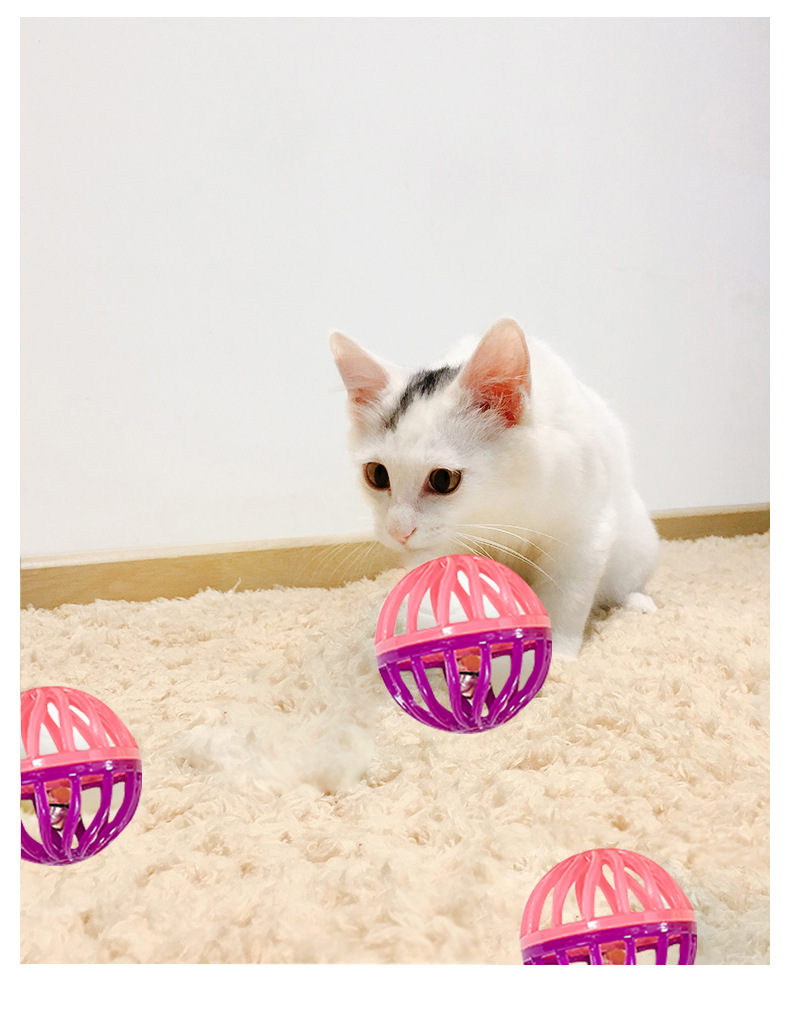 Juguetes para mascotas bolas de juguete para gatos bolas de plástico huecas espiral de campana bicolor bolas de plástico lanzadas para divertir a los juguetes para gatos al por mayor