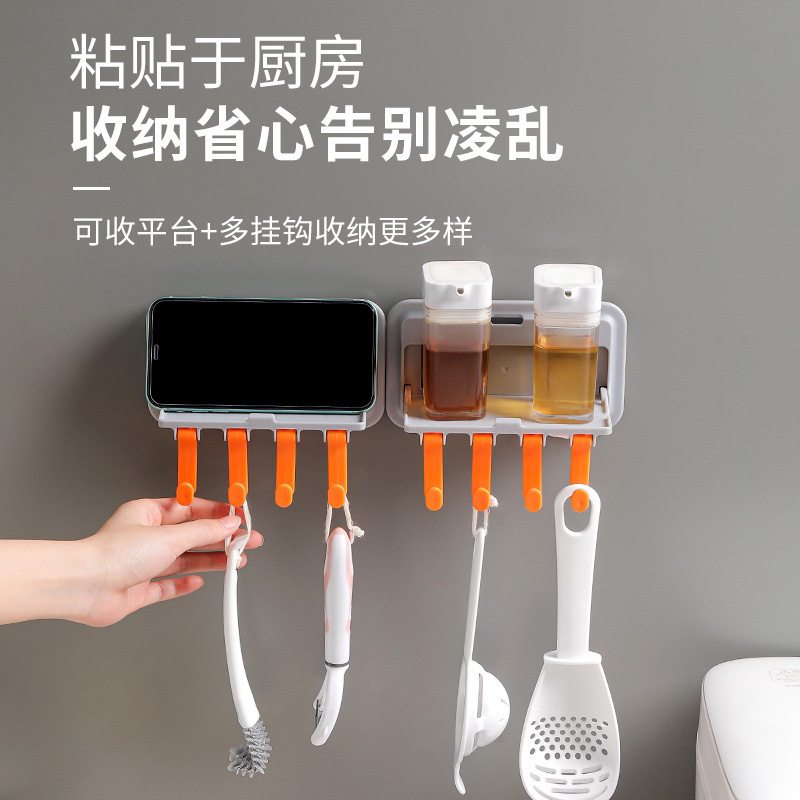 5个挂钩壁挂置物架免打孔家用浴室壁挂架带挂钩收纳壁挂