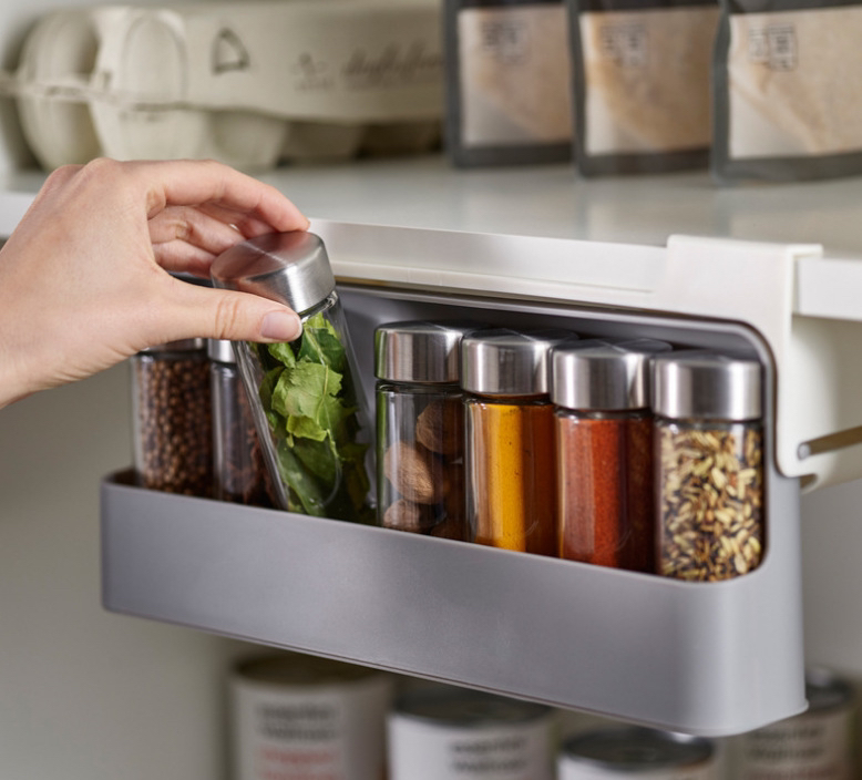 Las botellas de condimento domésticas contienen artículos de cocina.