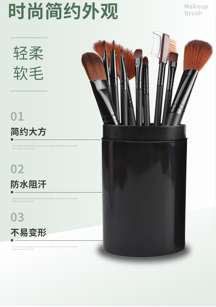 Venta caliente transfronteriza de 12 cepillos de maquillaje en barriles portátiles de almacenamiento súper suave, juegos de cepillos de barriles, fabricantes de herramientas de belleza al por mayor