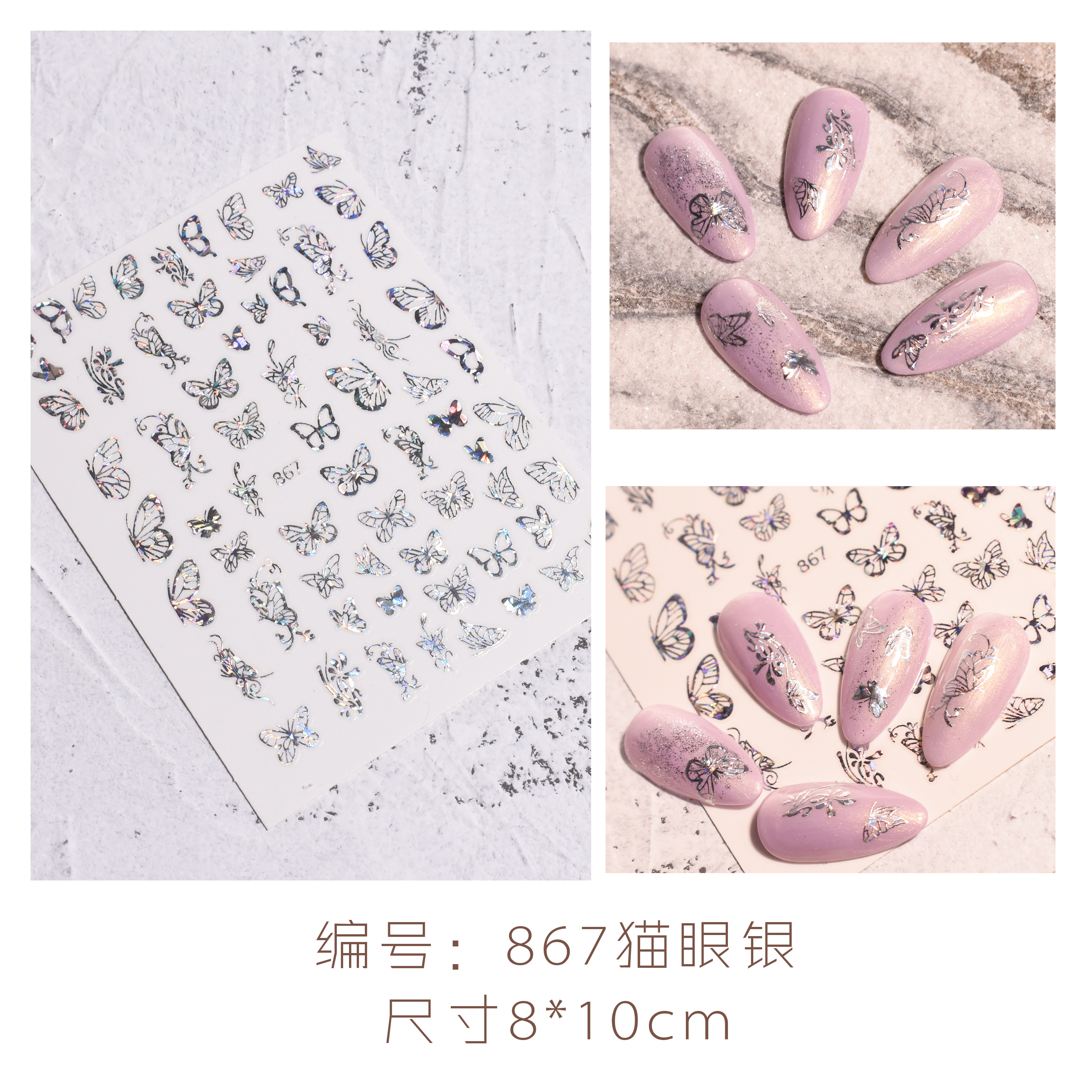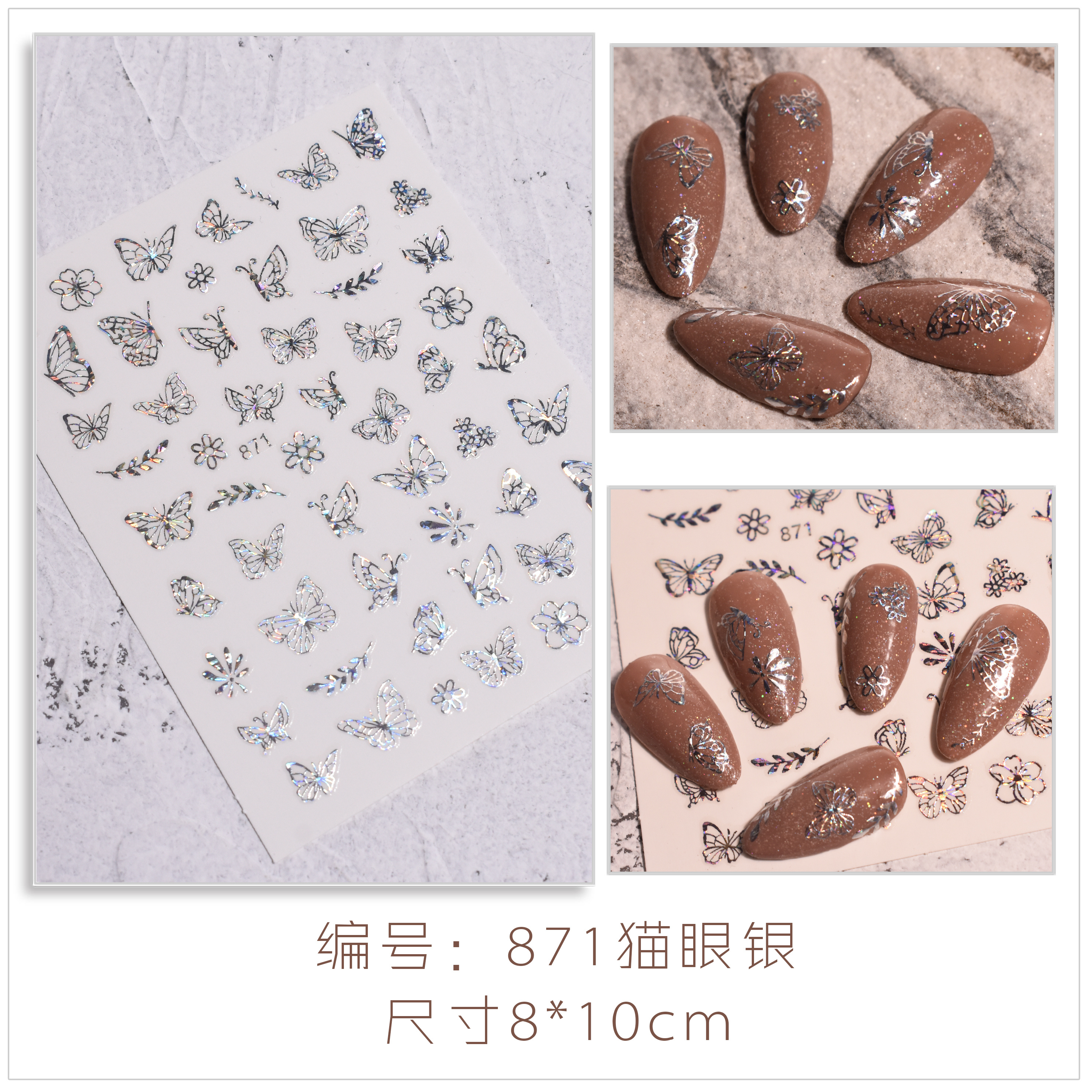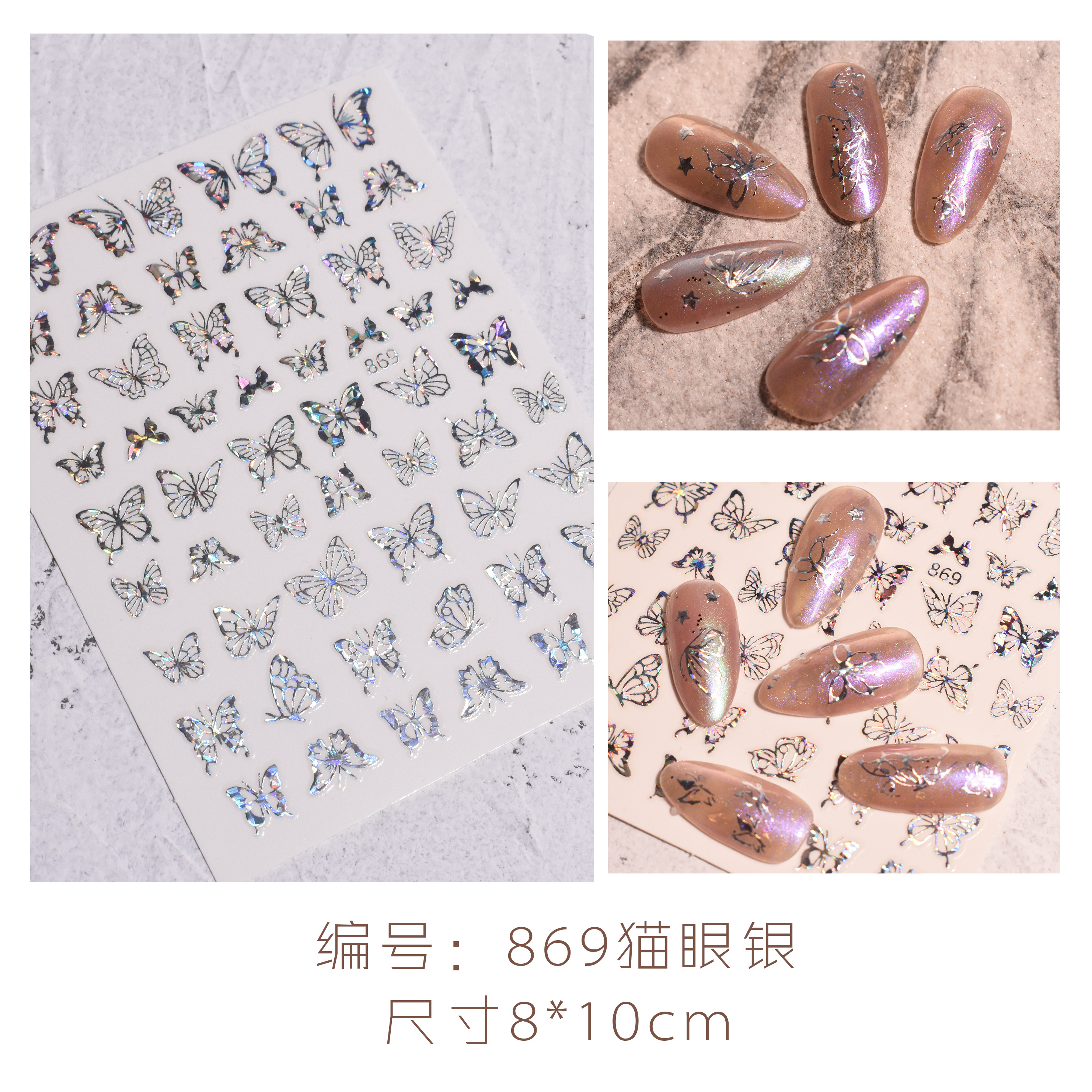 Manicura láser permanente ojo de gato de plata pegatinas de mariposa de oro y plata 3D pegatinas de uñas de oro y plata huecas pegatinas decorativas de estilo INS pegatinas de espalda