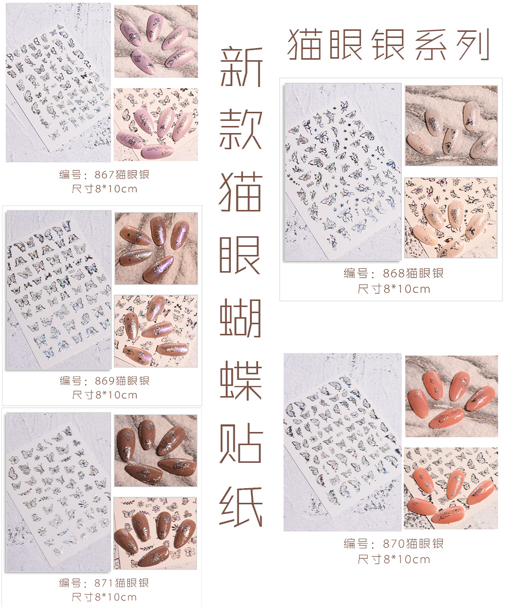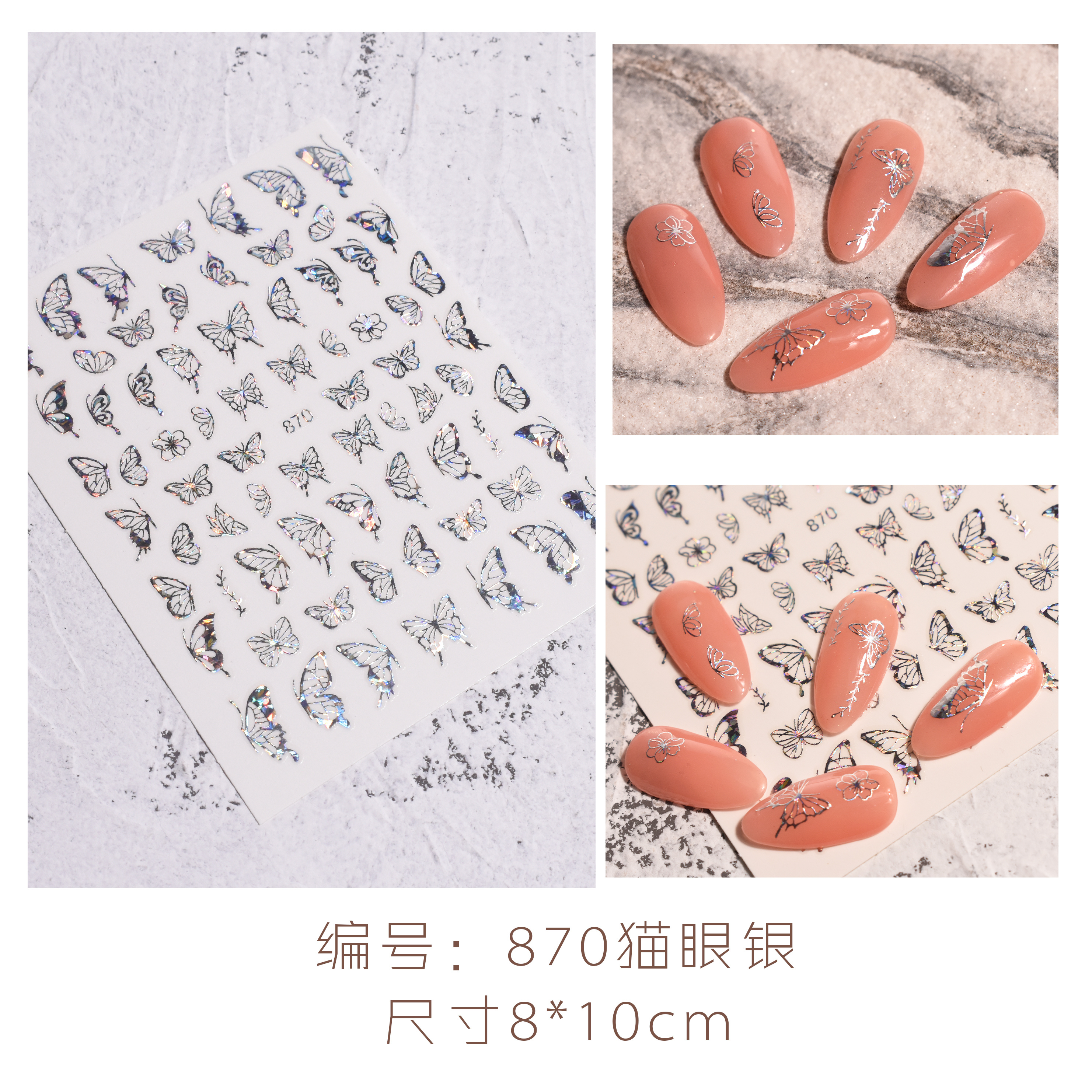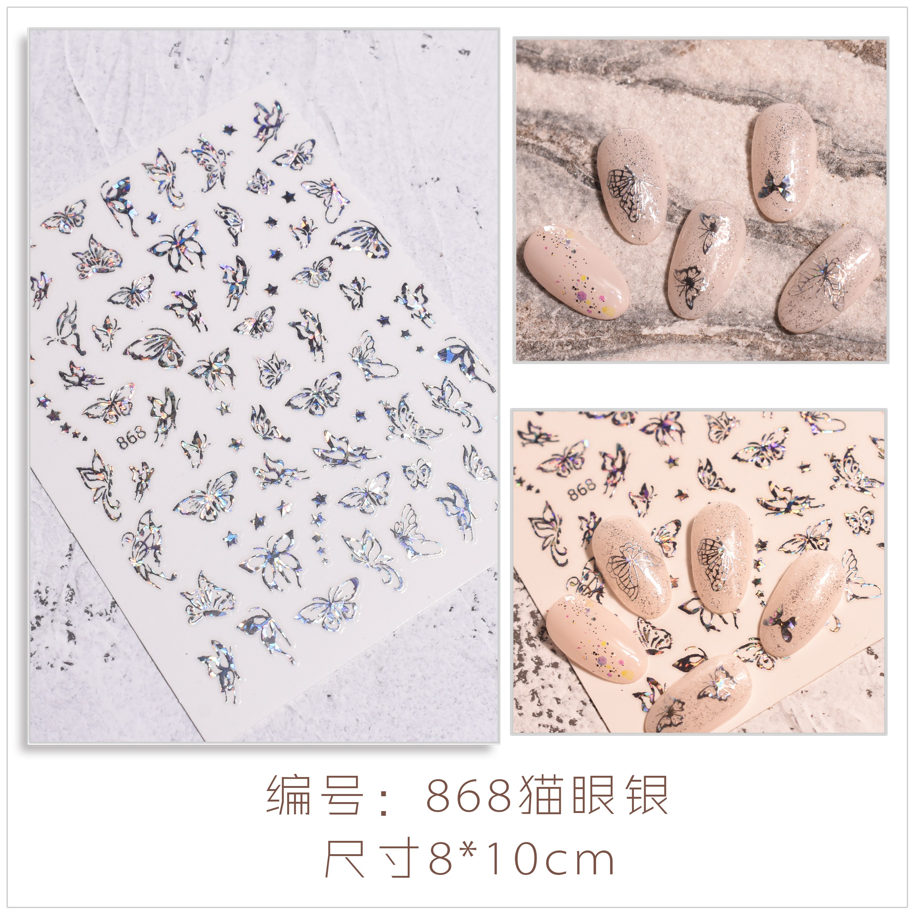 Manicura láser permanente ojo de gato de plata pegatinas de mariposa de oro y plata 3D pegatinas de uñas de oro y plata huecas pegatinas decorativas de estilo INS pegatinas de espalda
