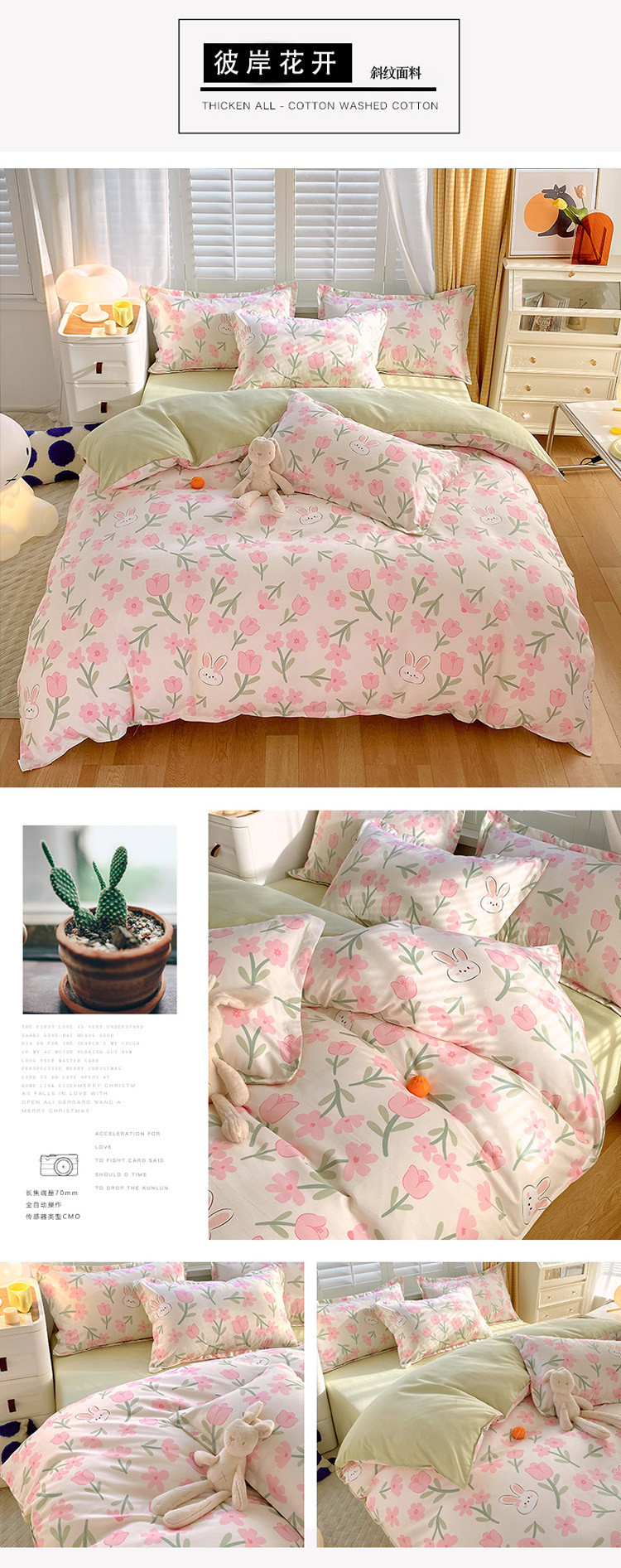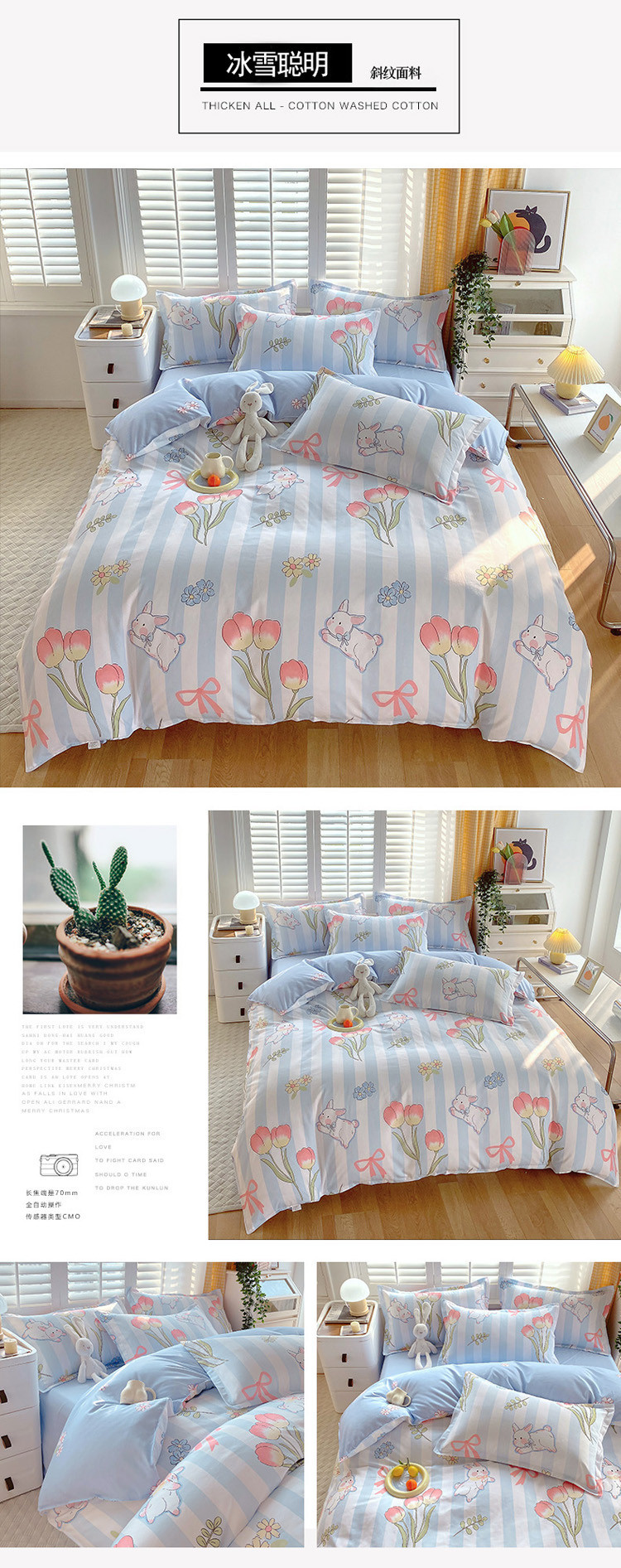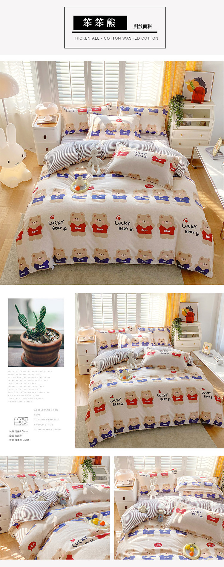 El fabricante vende al por mayor pequeños y frescos cuatro juegos de ropa de cama, sábanas de algodón, edredones, dormitorios estudiantiles tres juegos lavables a máquina