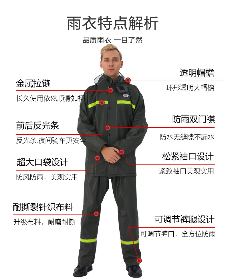 Impermeable de tela de punto, traje de pantalones de lluvia a prueba de lluvias torrenciales, reflejo de todo el cuerpo engrosado, ciclismo para llevar, pesca al aire libre, impermeables separados
