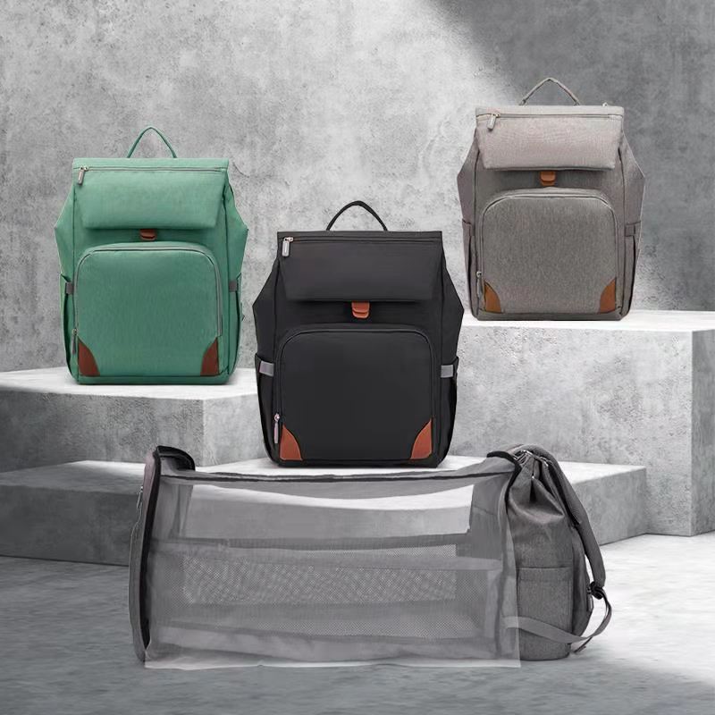 新款妈咪包折叠婴儿床时尚母婴包带蚊帐妈妈包大容量尿布背包双肩