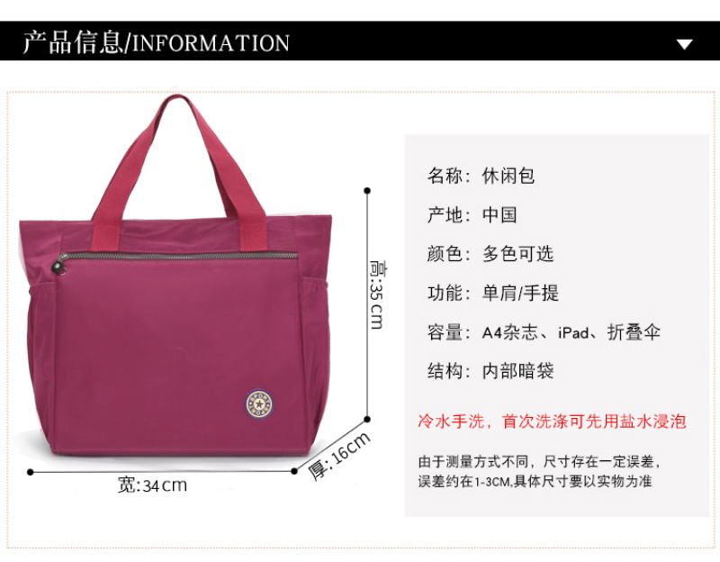 Nueva versión coreana impermeable y de gran capacidad de bolso de mujer bolso de hombro único bolso de tela corredizo bolso de nylon Mommy bolso de viaje portátil