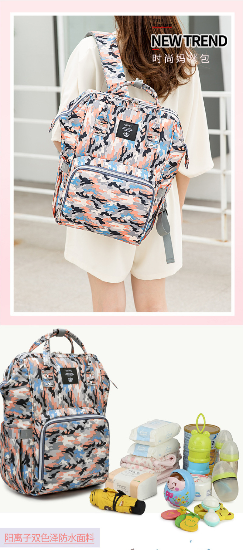 Nuevo paquete de mamá personalizado bolso de madre e hijo multifuncional bolso de moda bolso de madre, biberón, mochila, bolsa de tela de orina, venta directa del fabricante