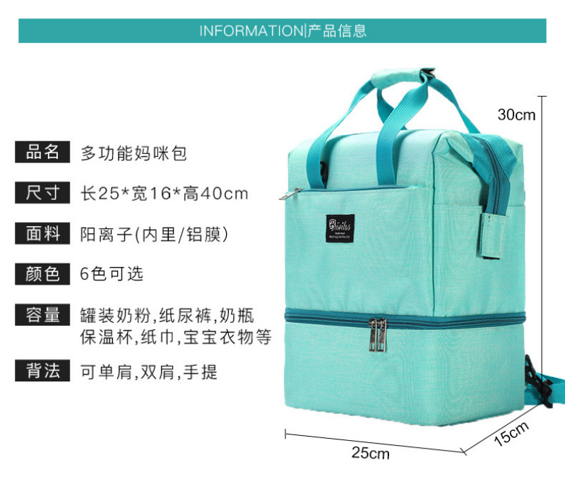 Moda mochila mamá mochila mochila mochila multifuncional mochila térmica de gran capacidad baoma mochila de salida