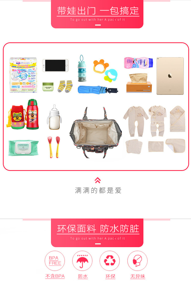 Bolsa de mamá bolsa multifuncional bolsa de madre e hijo bolsa de moda bolsa de madre bolsa de pañales impermeables fábrica de venta directa
