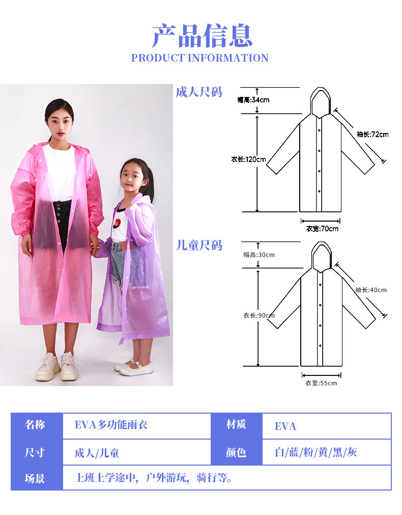 Los impermeables se engrosan y alargan de una sola vez, los impermeables Eva para adultos y niños son impermeables a prueba de lluvias torrenciales, los viajes portátiles con impermeables empaquetados
