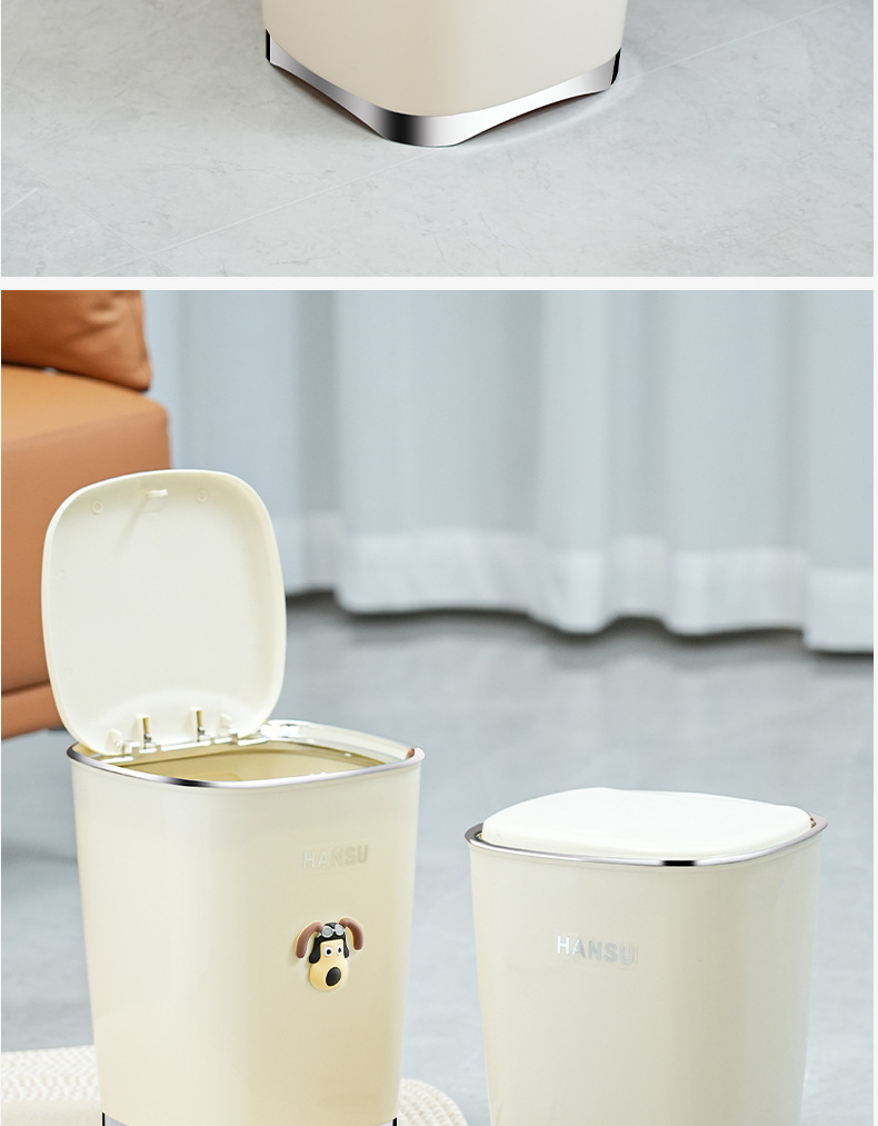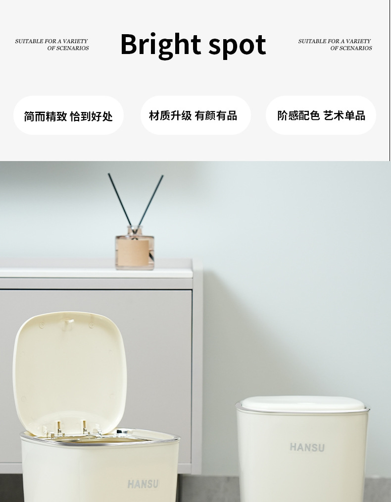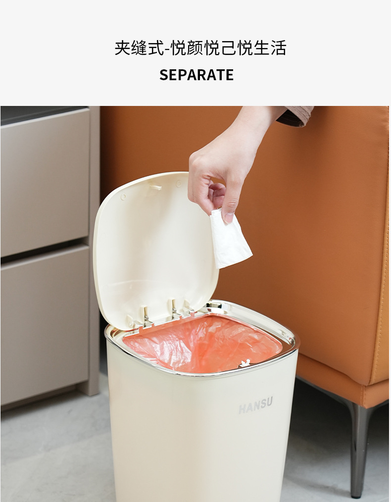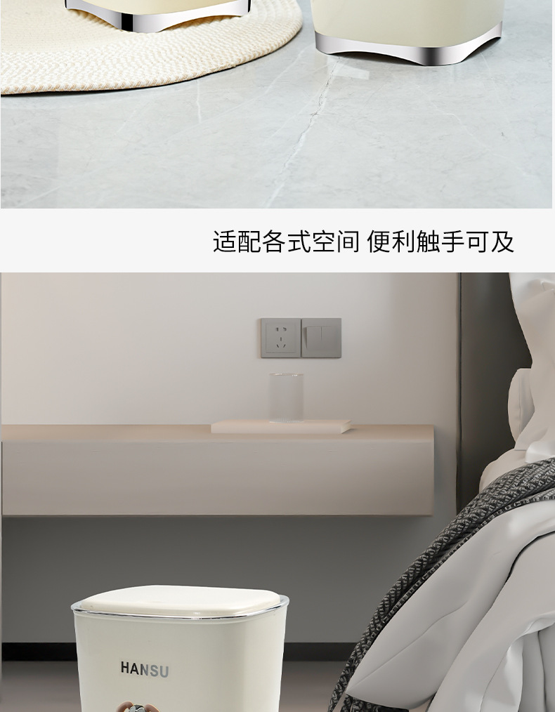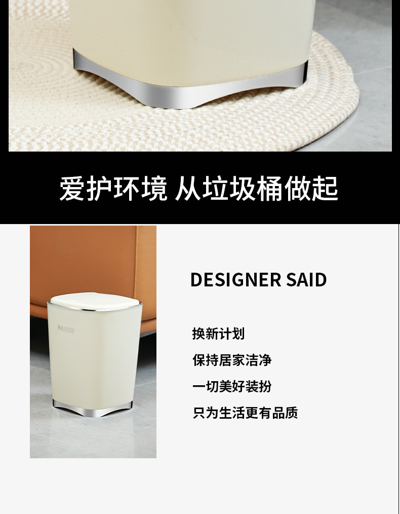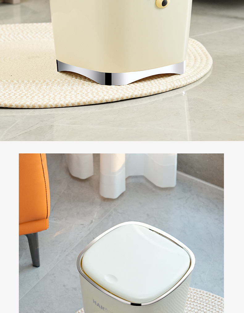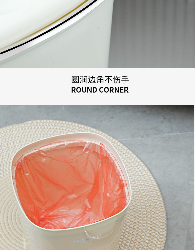 Bote de basura de baño de alto valor facial de lujo ligero nuevo cubo de basura de la Sala de estar de la cocina doméstica con tapa de cinturón de viento INS