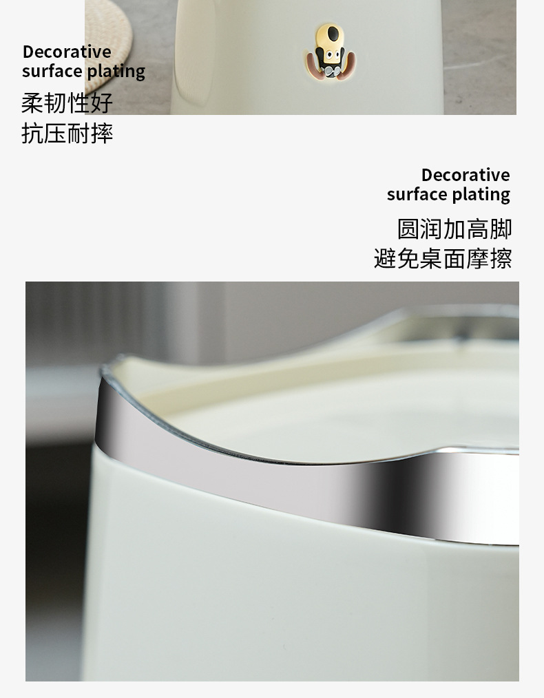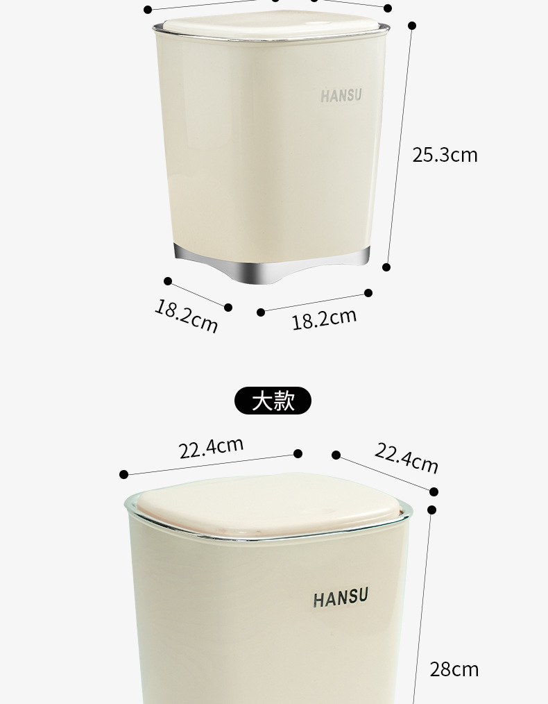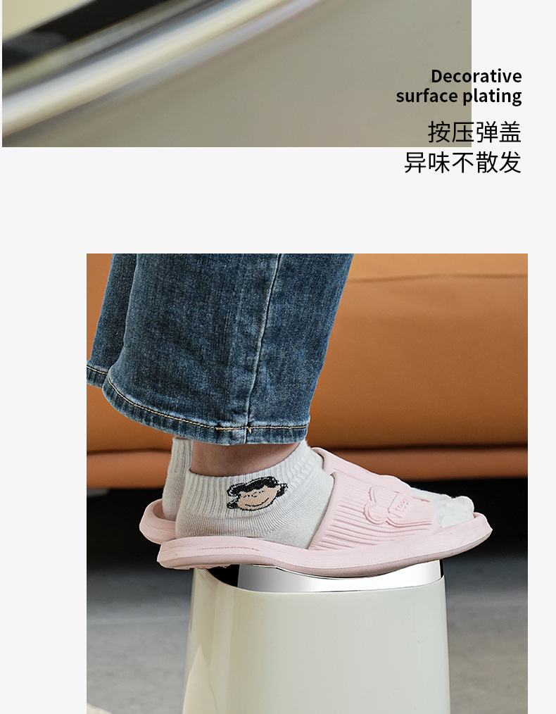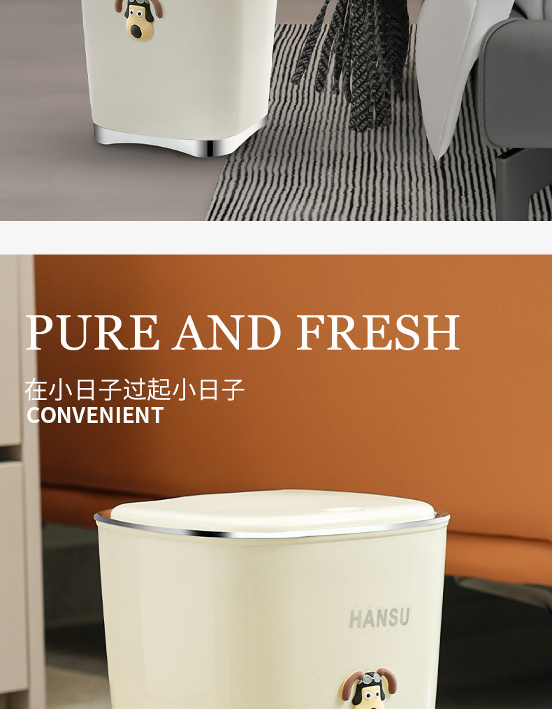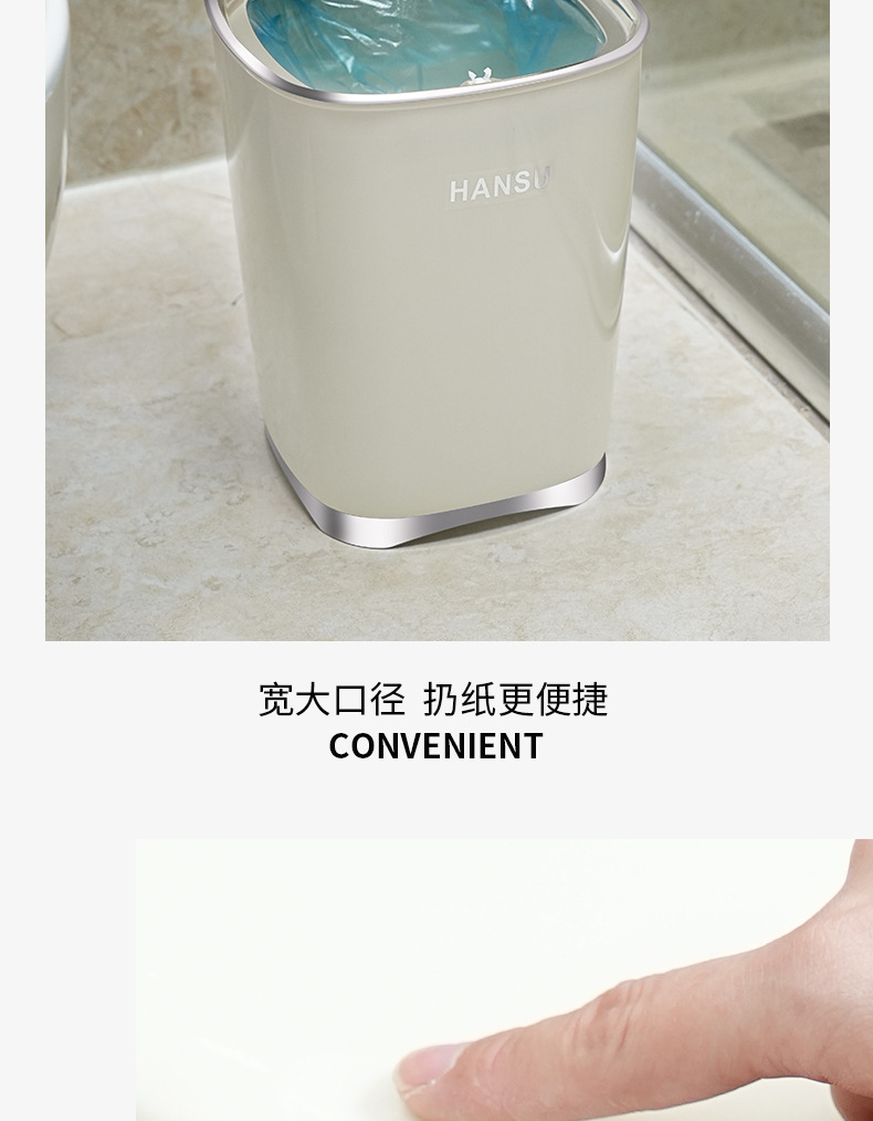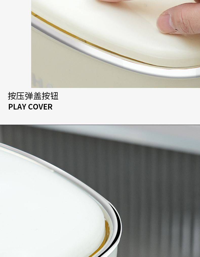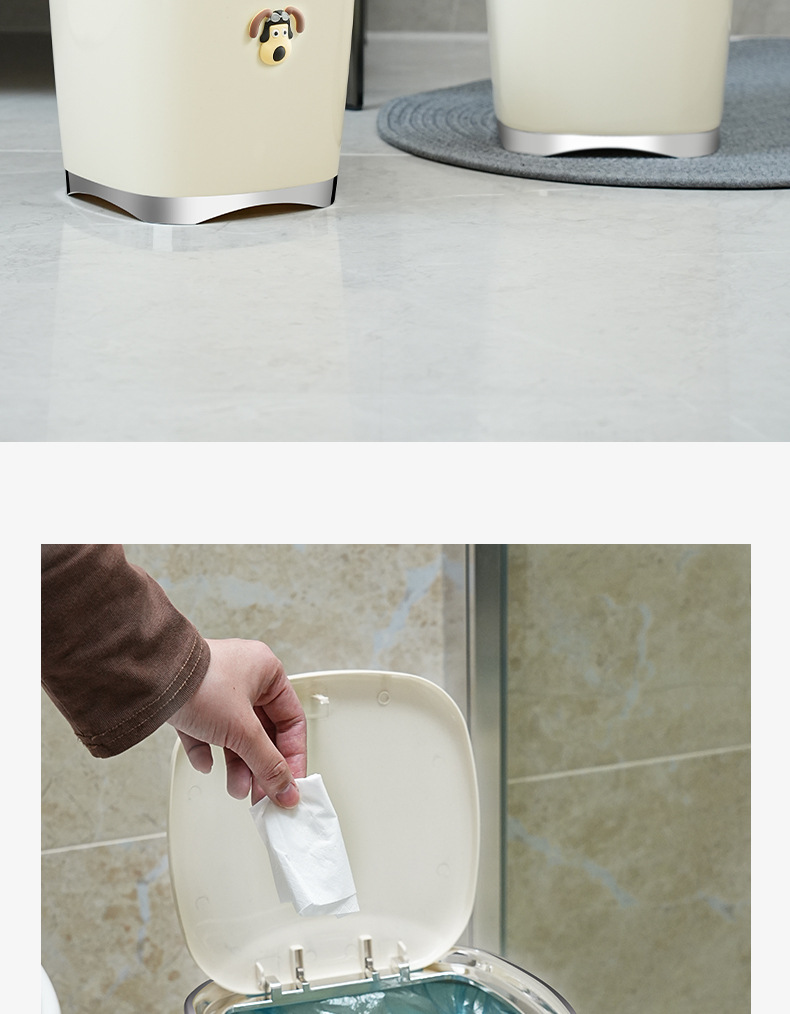 Bote de basura de baño de alto valor facial de lujo ligero nuevo cubo de basura de la Sala de estar de la cocina doméstica con tapa de cinturón de viento INS