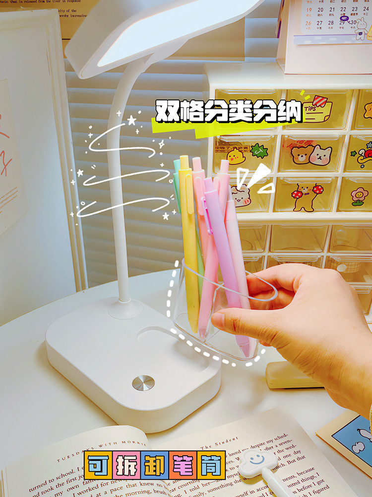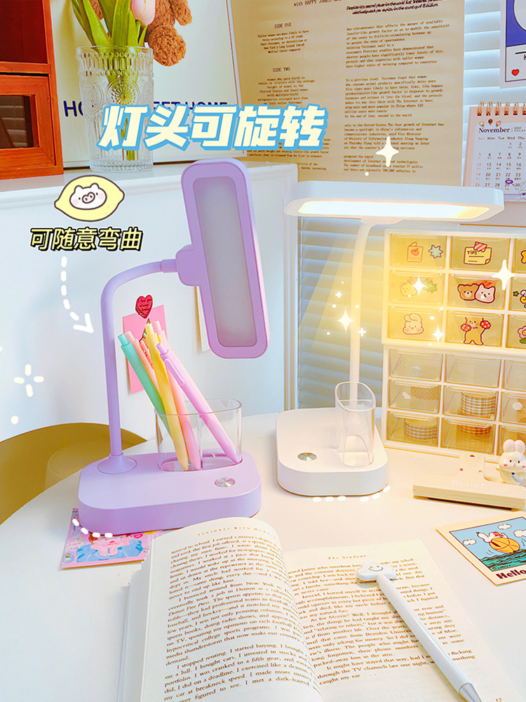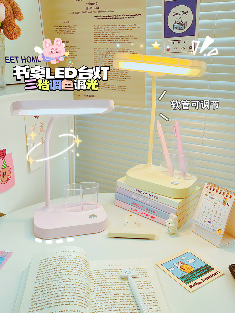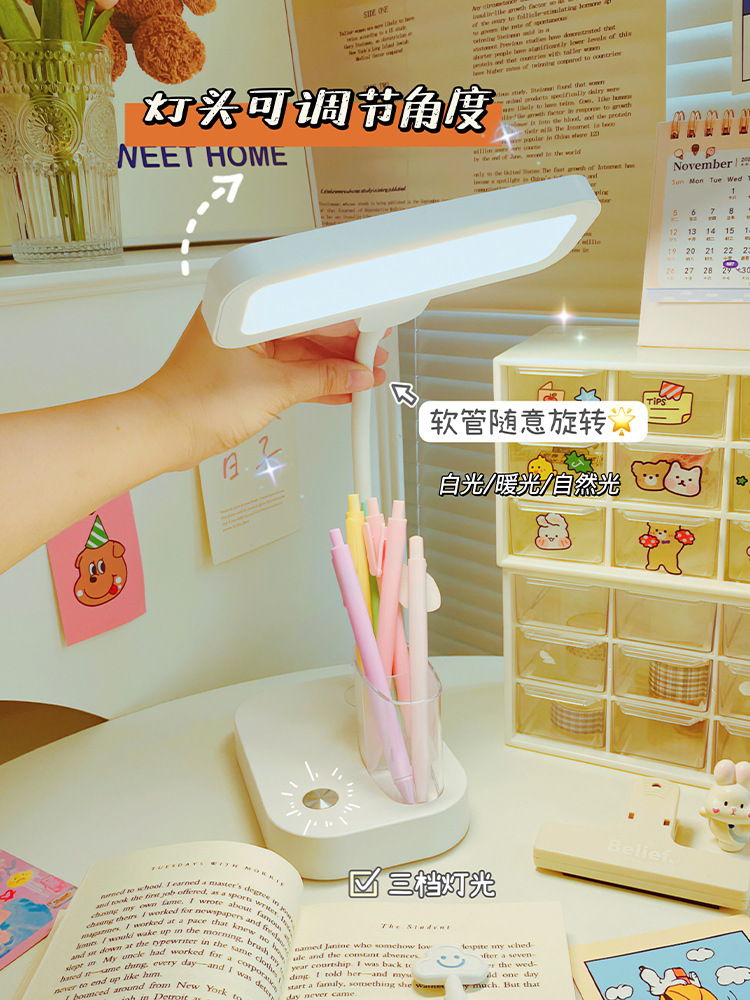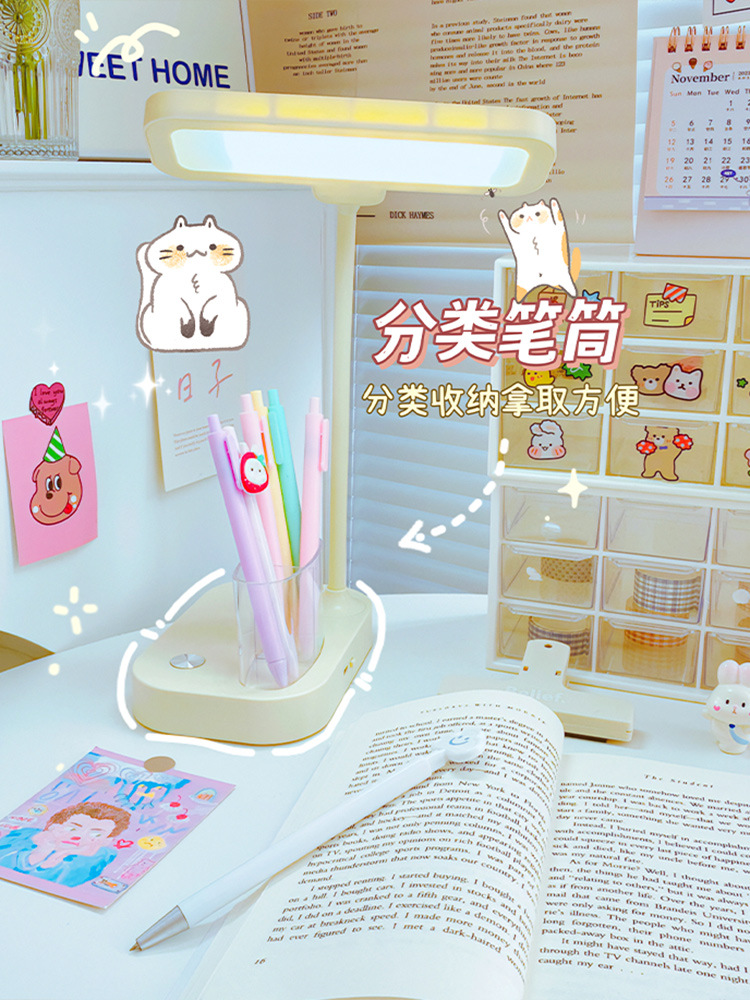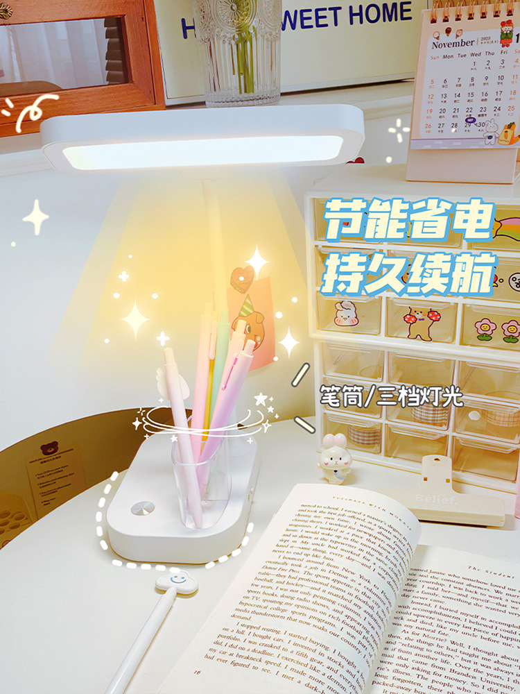 Lámpara de mesa de temperatura de color de tercera marcha de 2400 ma plegada y recogida de bolígrafos, lámpara de mesa de protección ocular, pequeña lámpara de cabecera de estudiante fresca