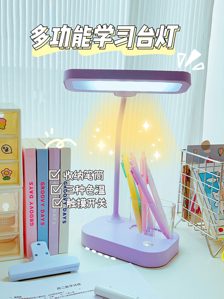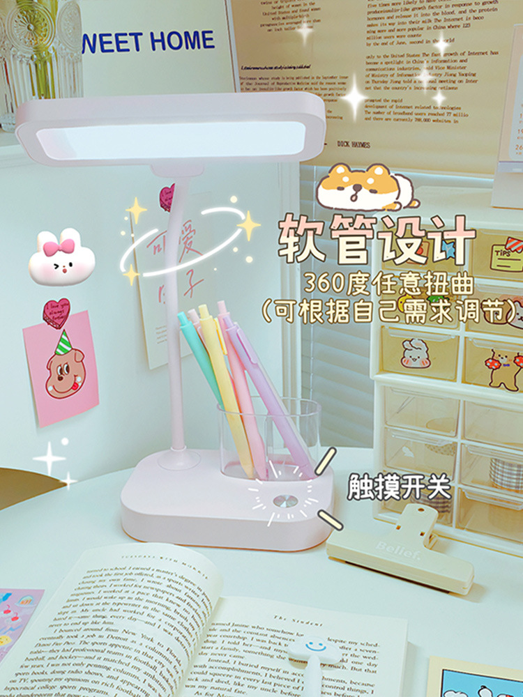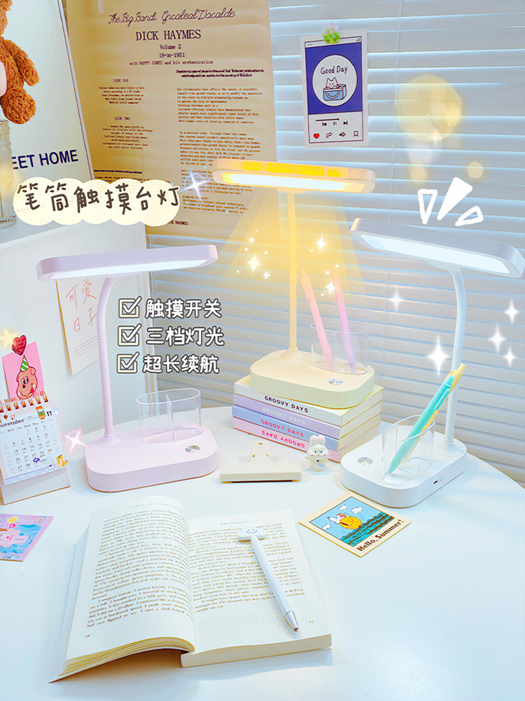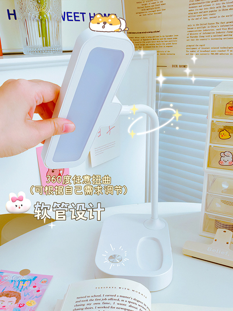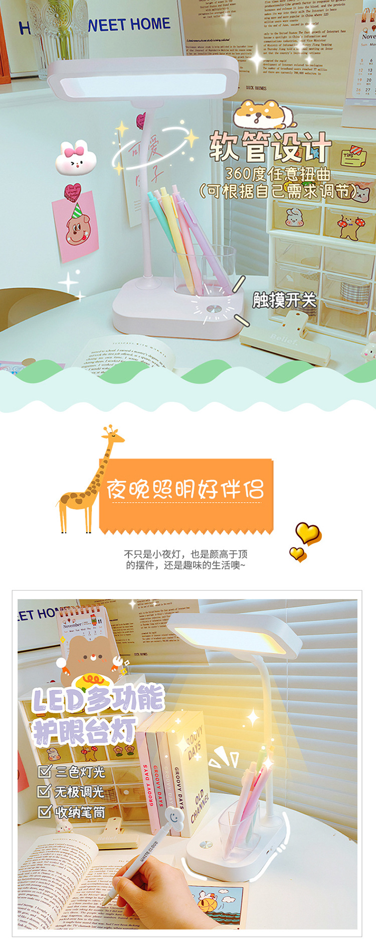 Lámpara de mesa de temperatura de color de tercera marcha de 2400 ma plegada y recogida de bolígrafos, lámpara de mesa de protección ocular, pequeña lámpara de cabecera de estudiante fresca