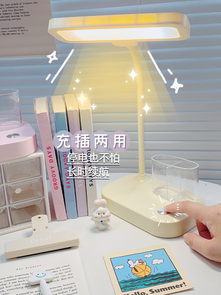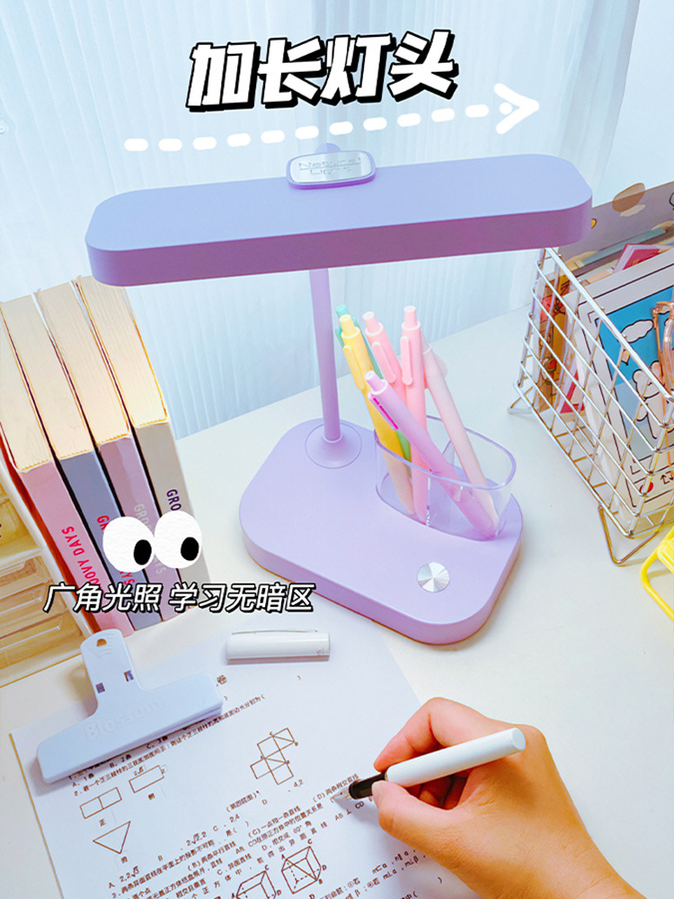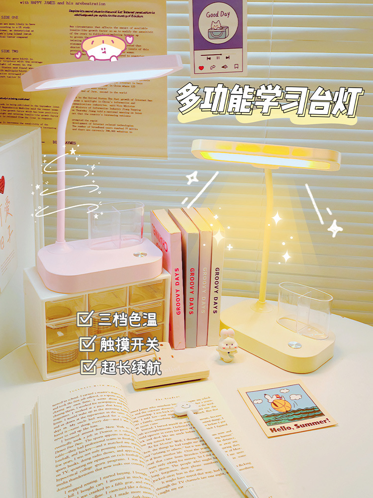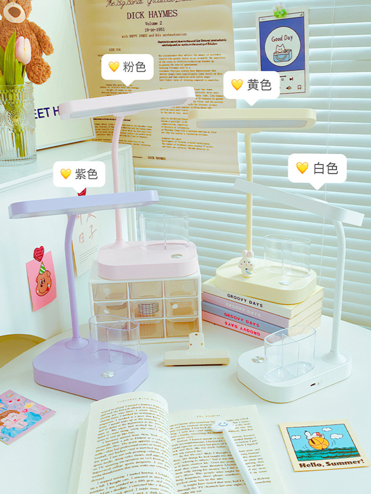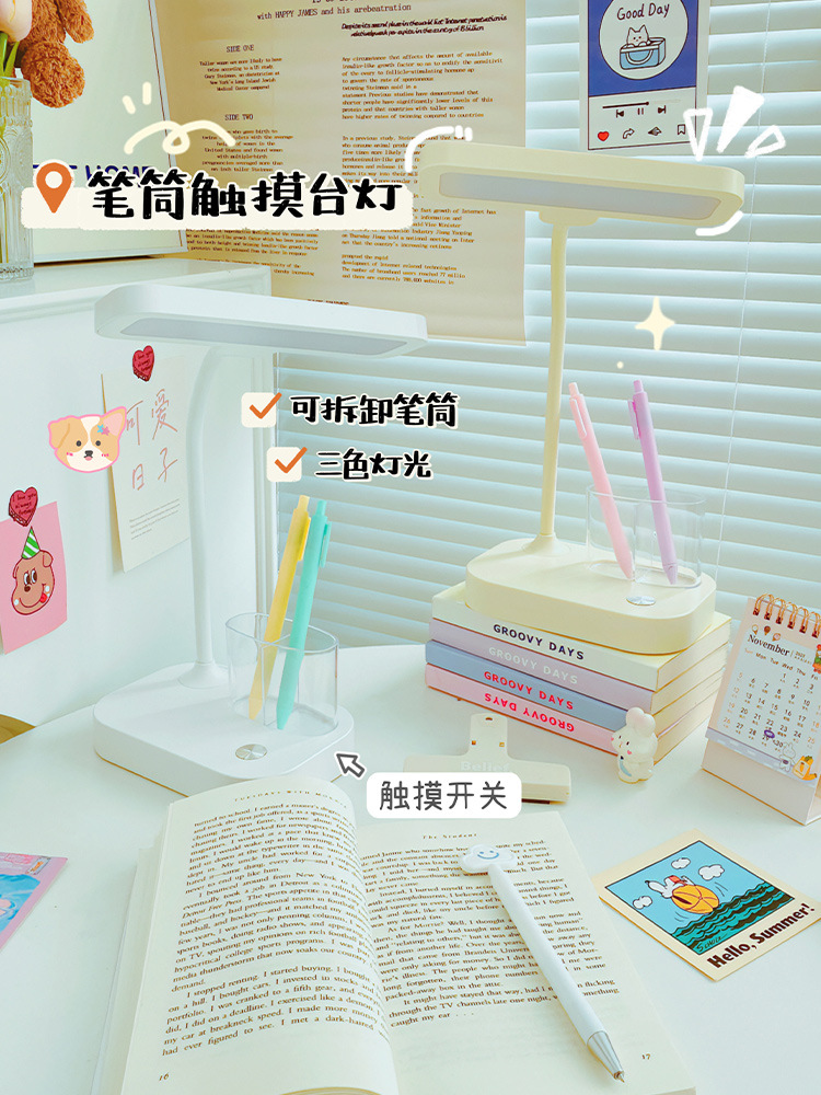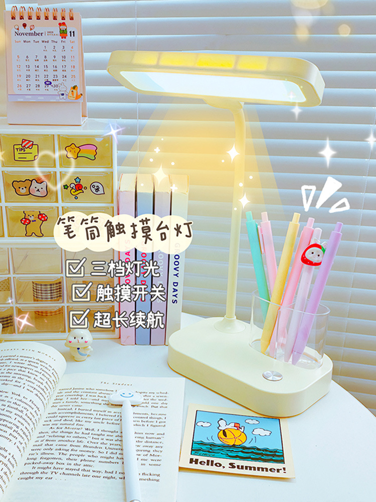 Lámpara de mesa de temperatura de color de tercera marcha de 2400 ma plegada y recogida de bolígrafos, lámpara de mesa de protección ocular, pequeña lámpara de cabecera de estudiante fresca