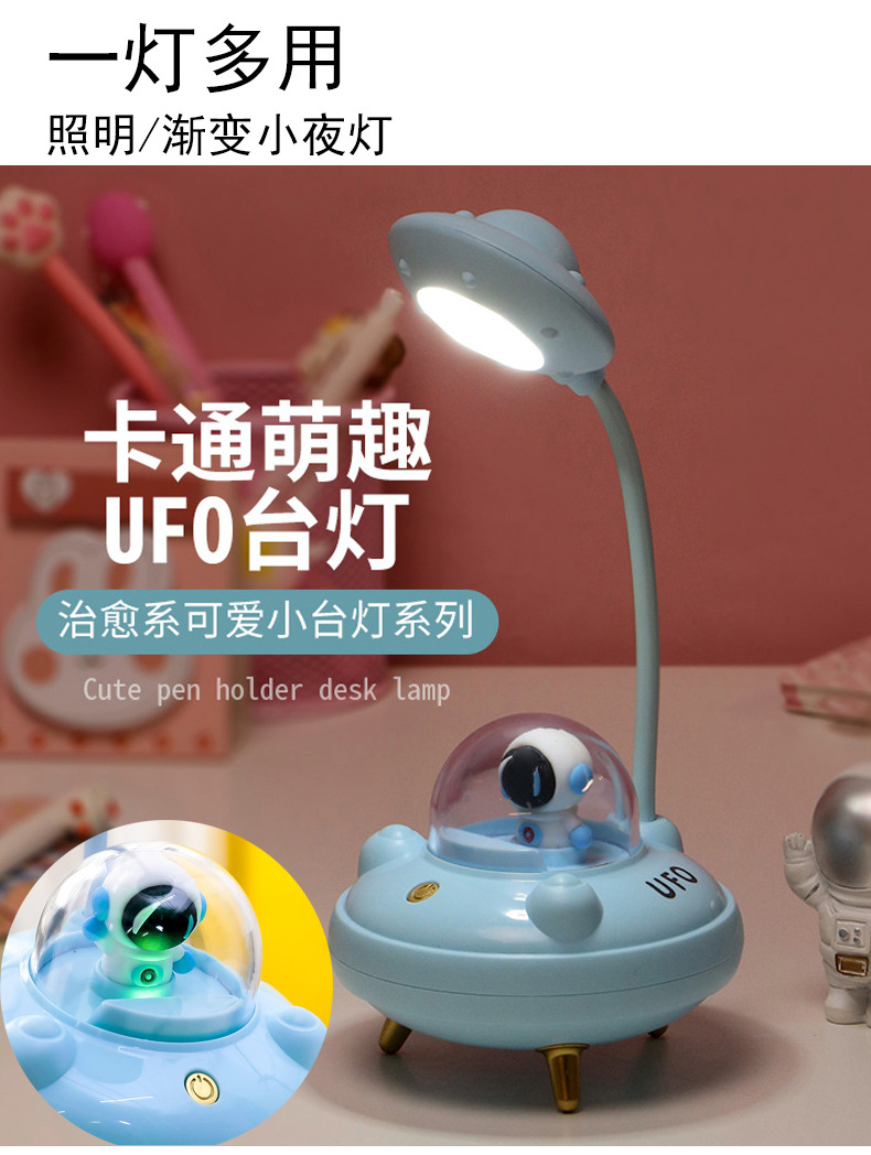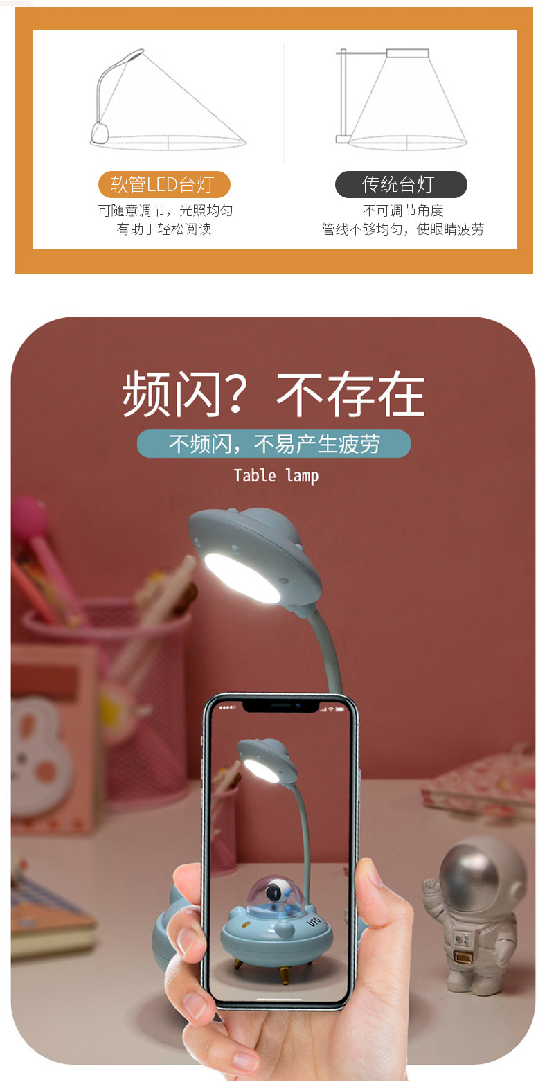Lámpara de mesa de astronauta Roja de Internet recargada por USB pequeña lámpara de noche de platillo volador fabricante mayorista de lámparas de mesa de regalo estudiantes lámparas de mesa plegables