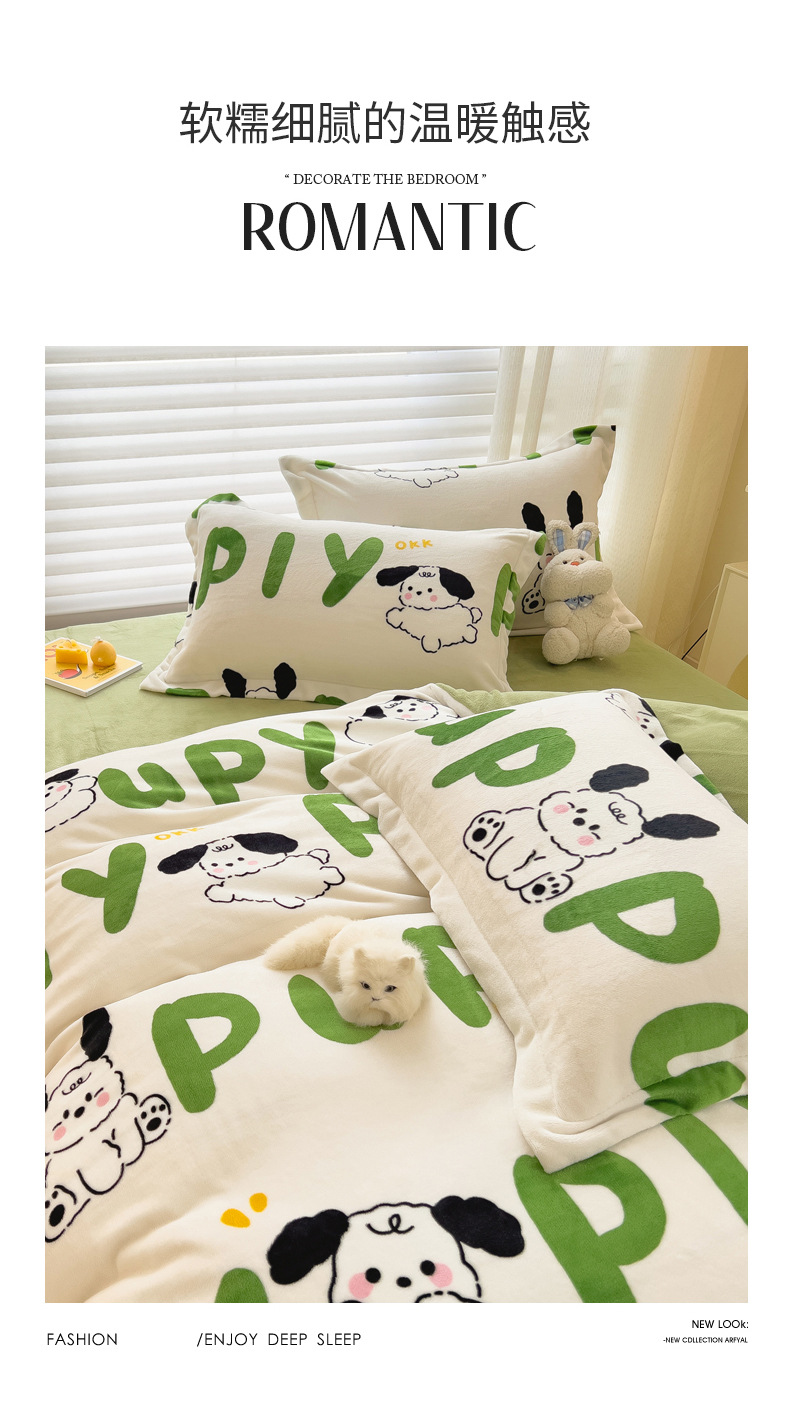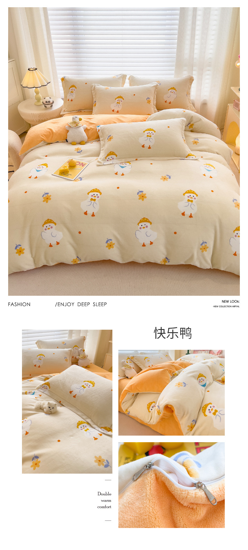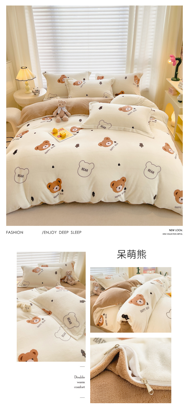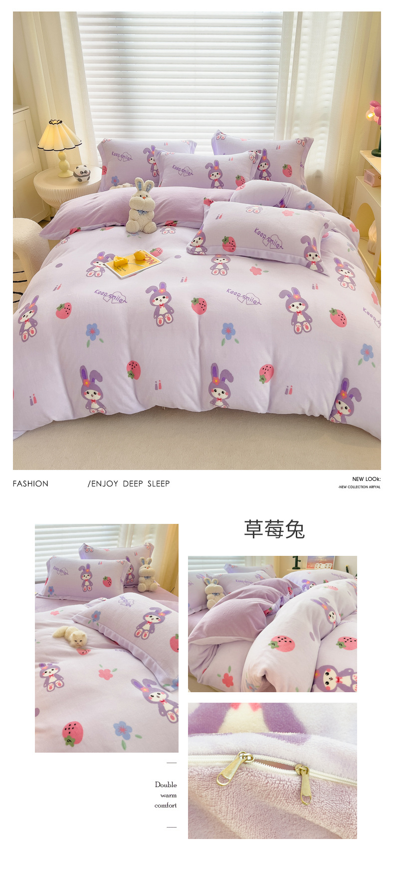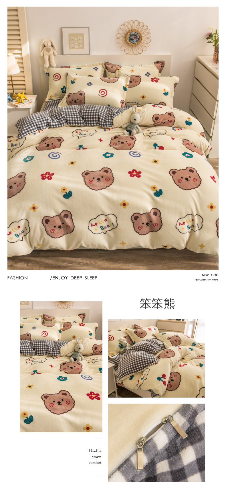 Cartoon Little Fresh Milk Velvet set de cuatro piezas ropa de cama engrosada y cálida en invierno, sábanas, edredones, edredones, franela