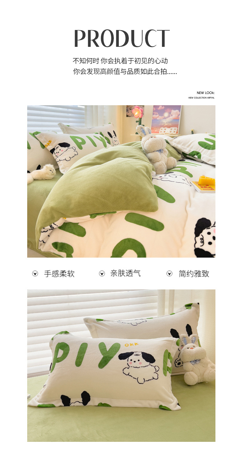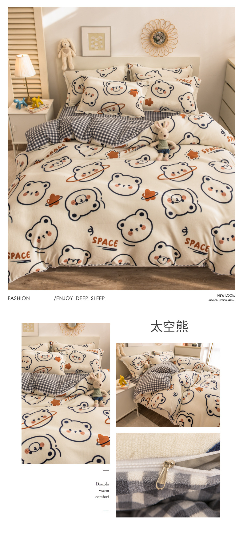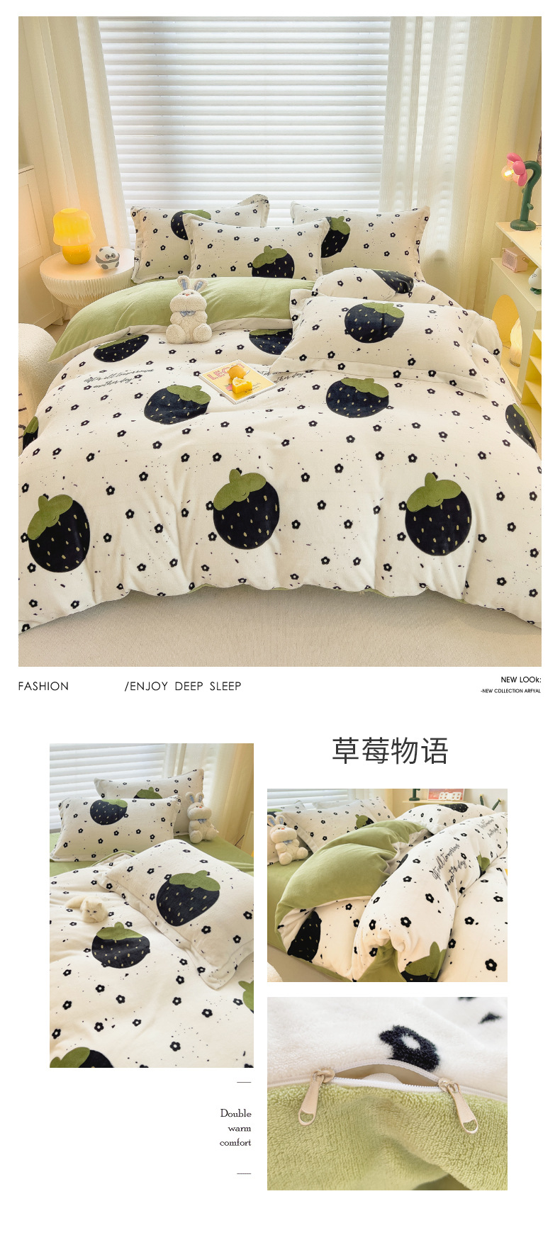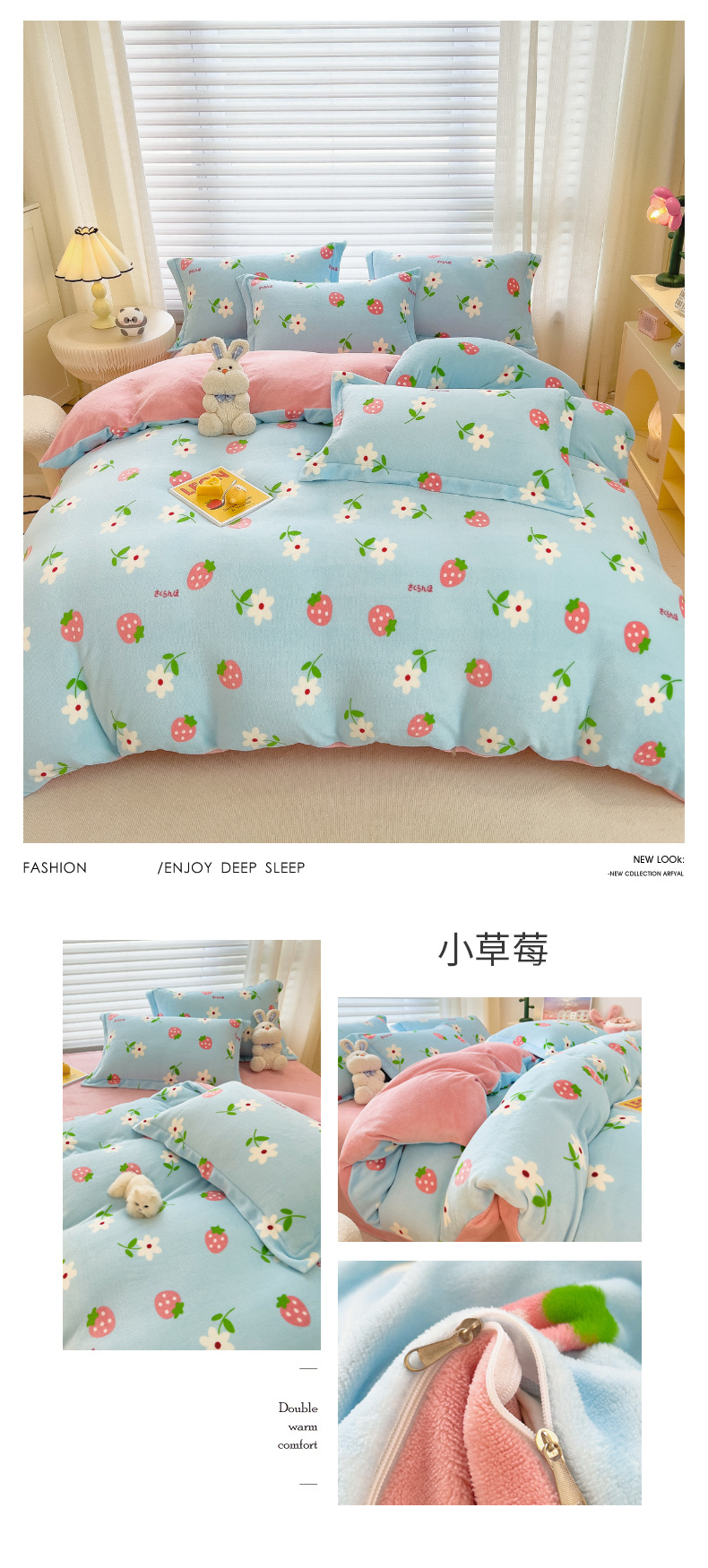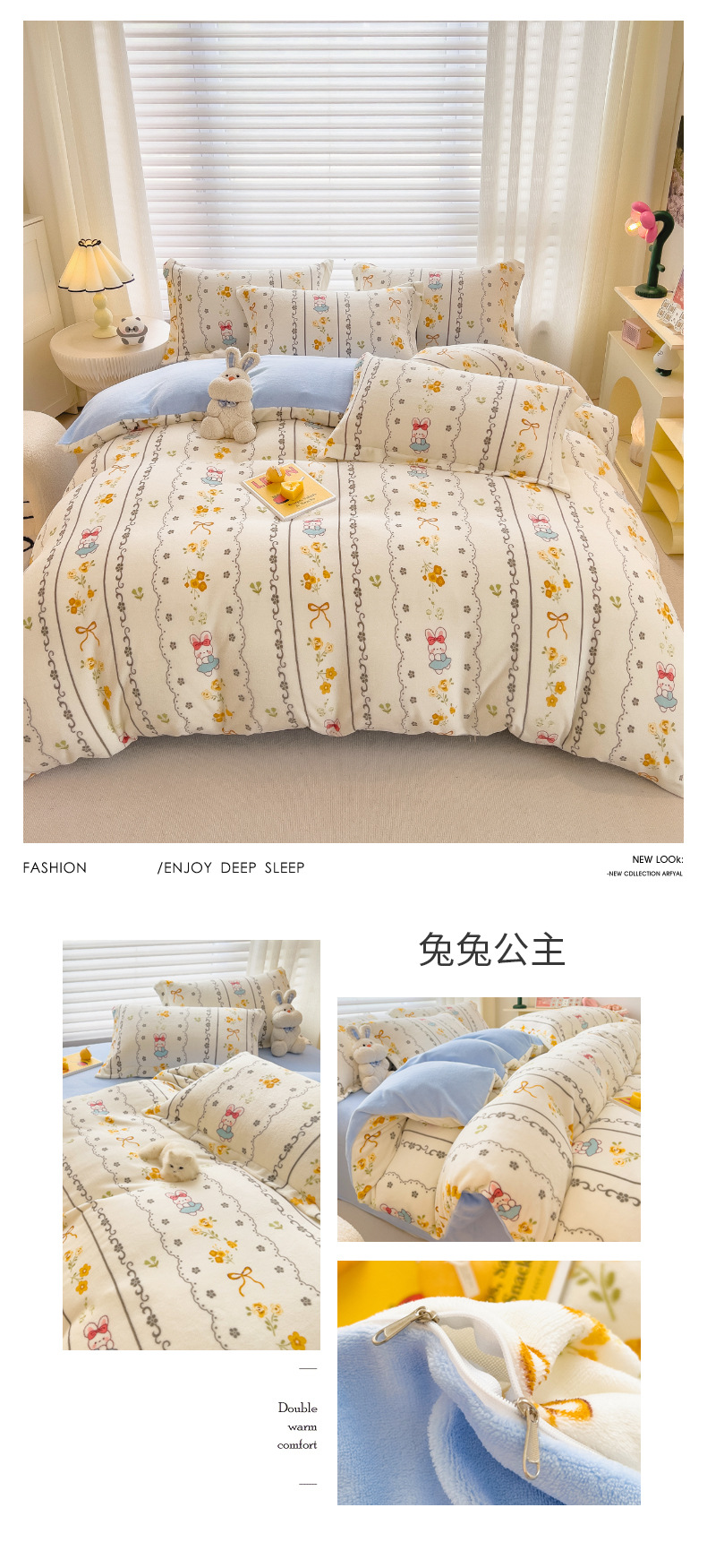 Cartoon Little Fresh Milk Velvet set de cuatro piezas ropa de cama engrosada y cálida en invierno, sábanas, edredones, edredones, franela