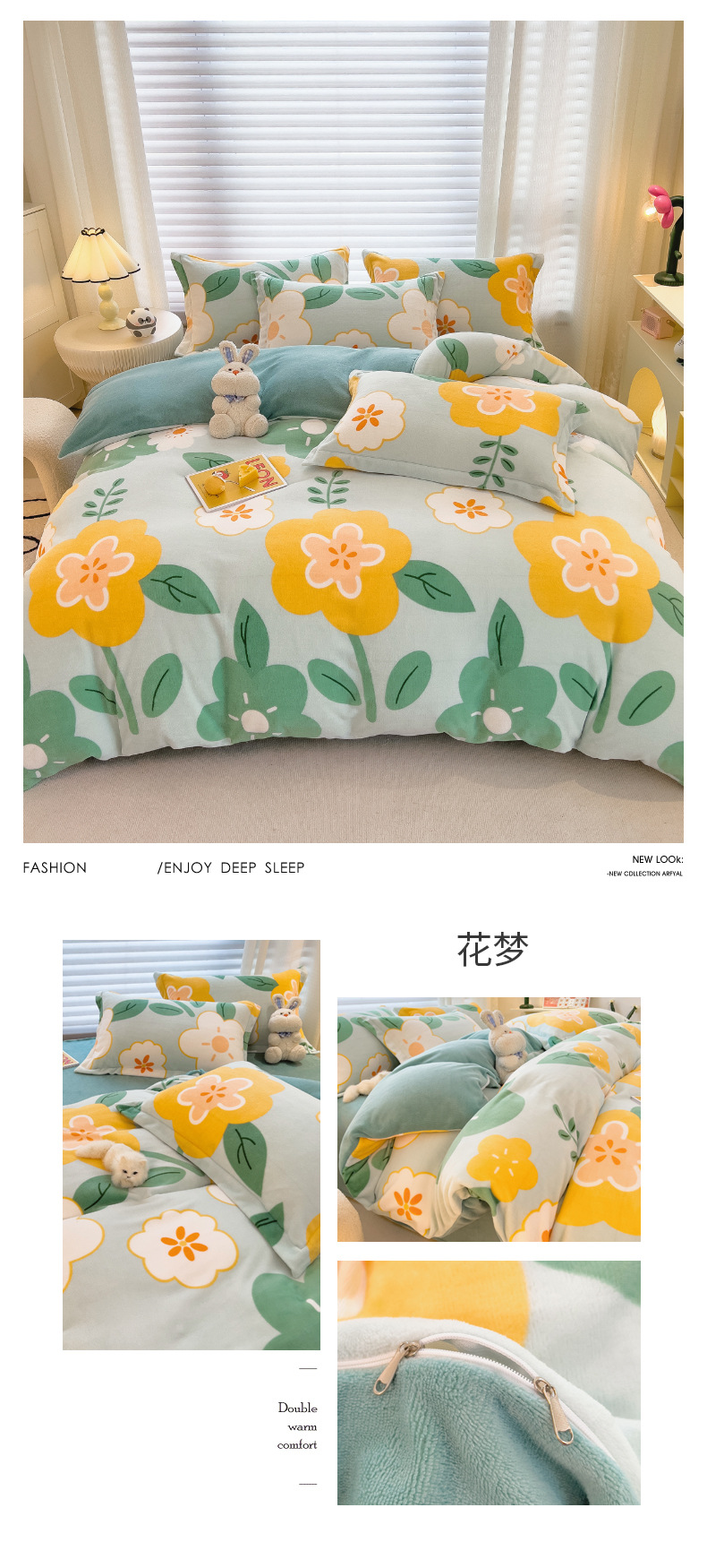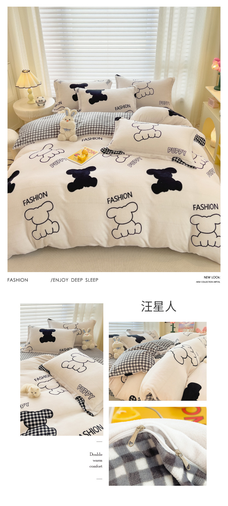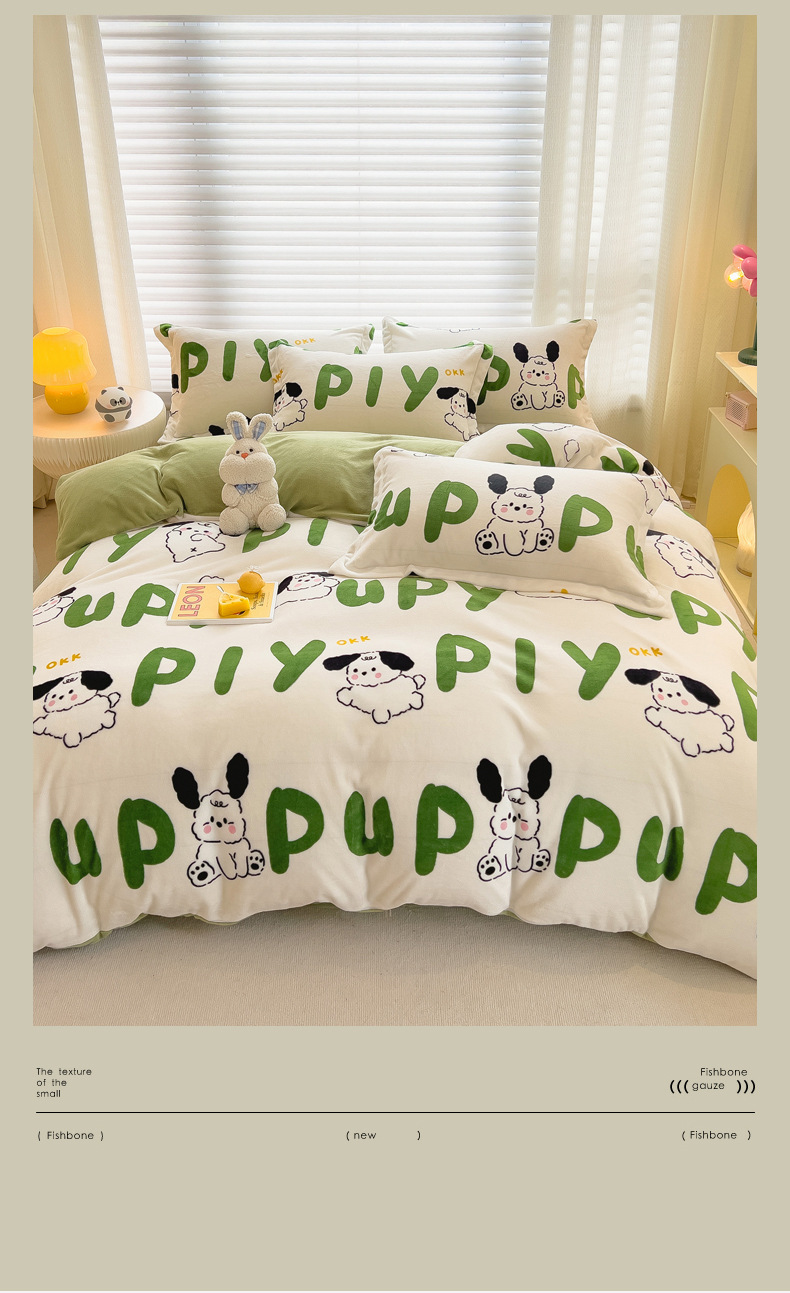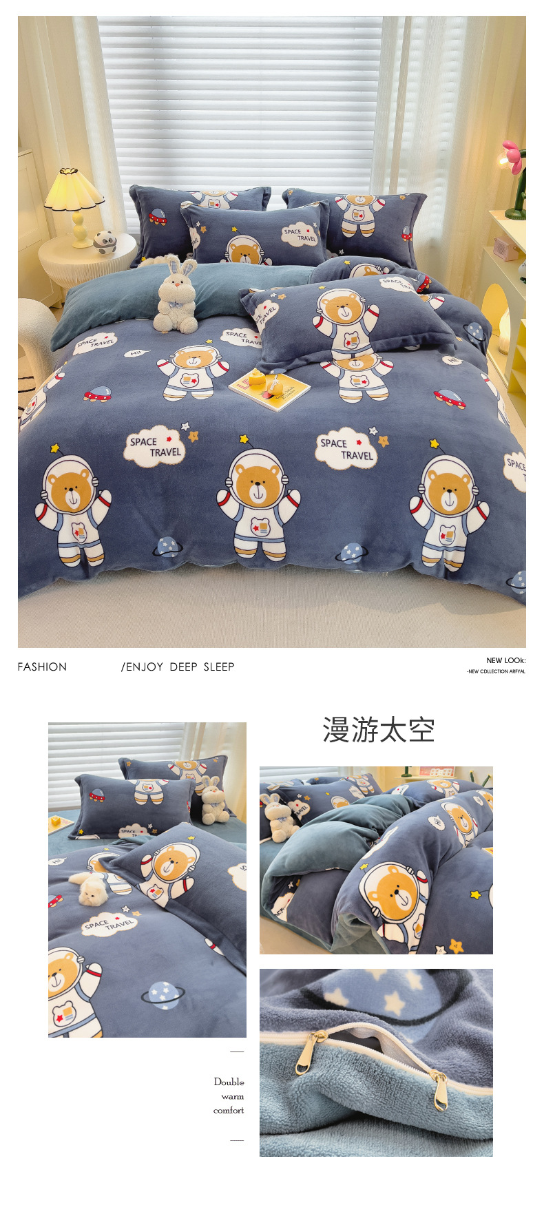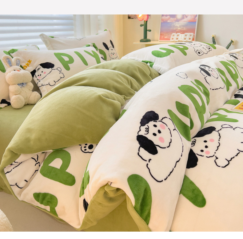 Cartoon Little Fresh Milk Velvet set de cuatro piezas ropa de cama engrosada y cálida en invierno, sábanas, edredones, edredones, franela