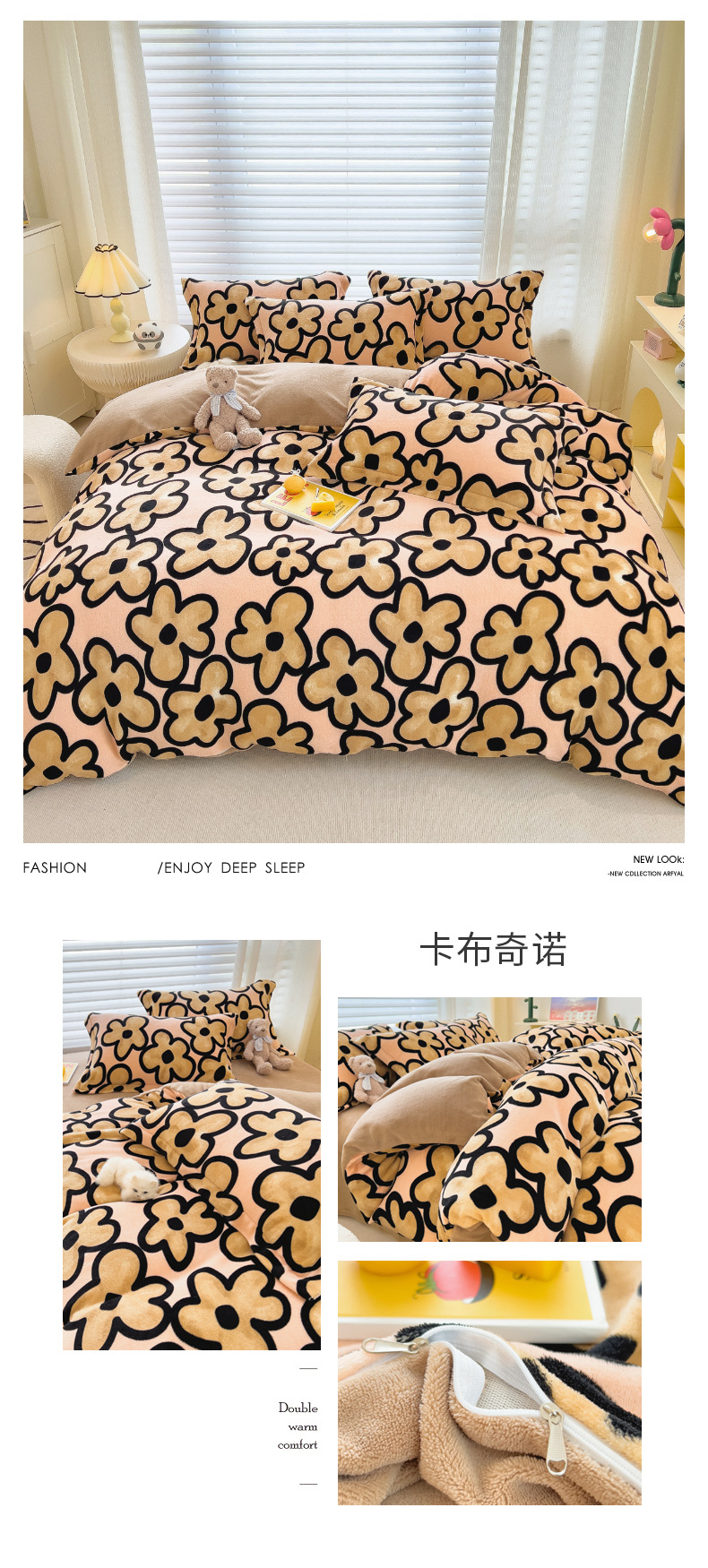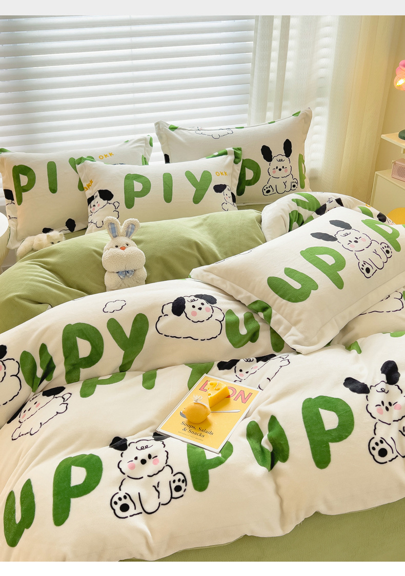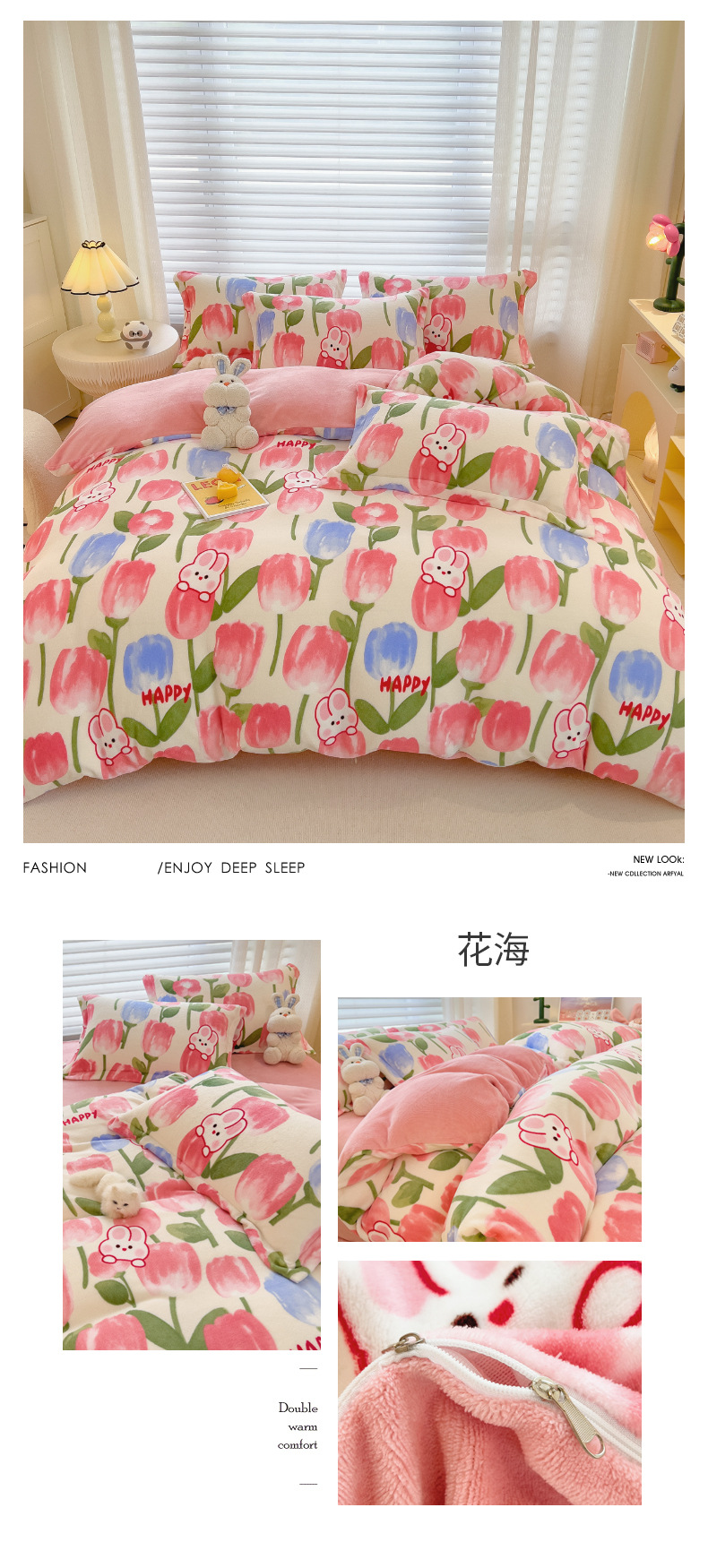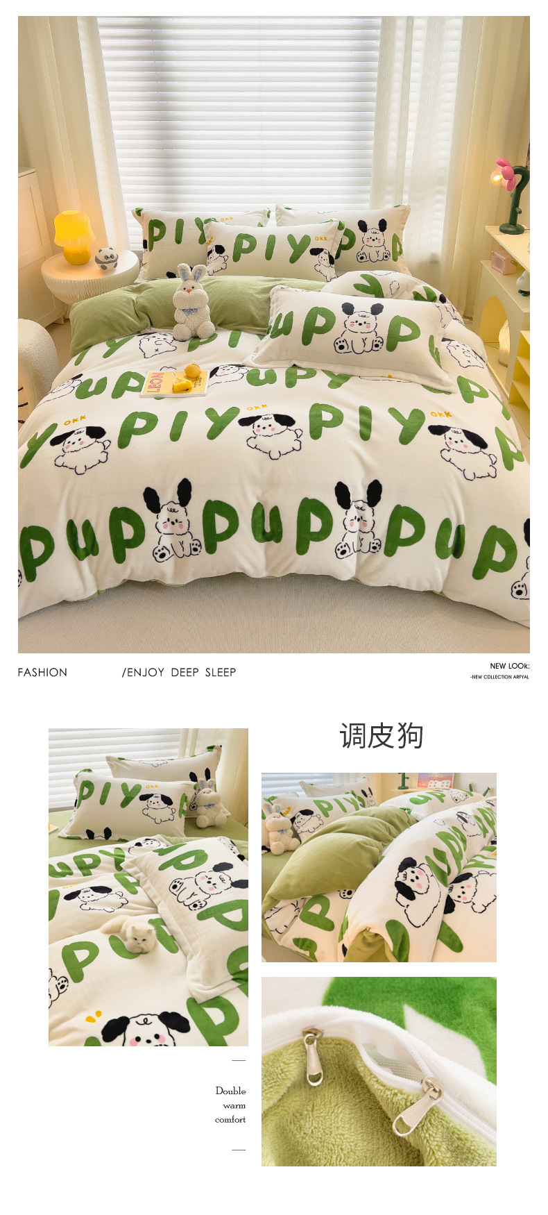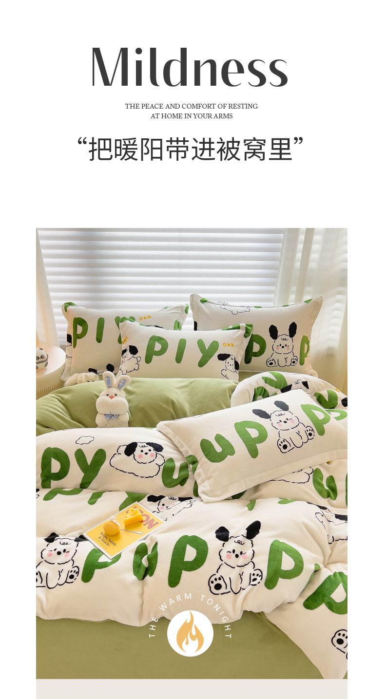 Cartoon Little Fresh Milk Velvet set de cuatro piezas ropa de cama engrosada y cálida en invierno, sábanas, edredones, edredones, franela