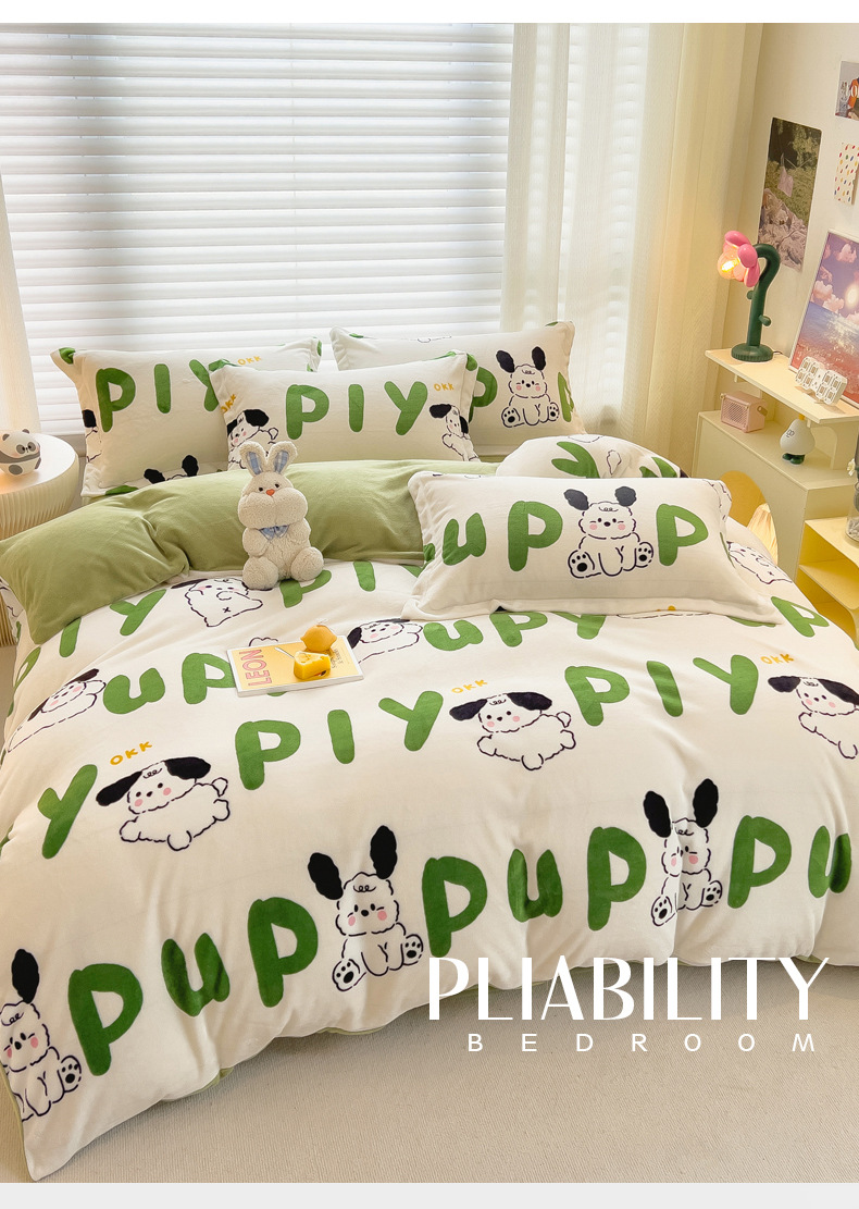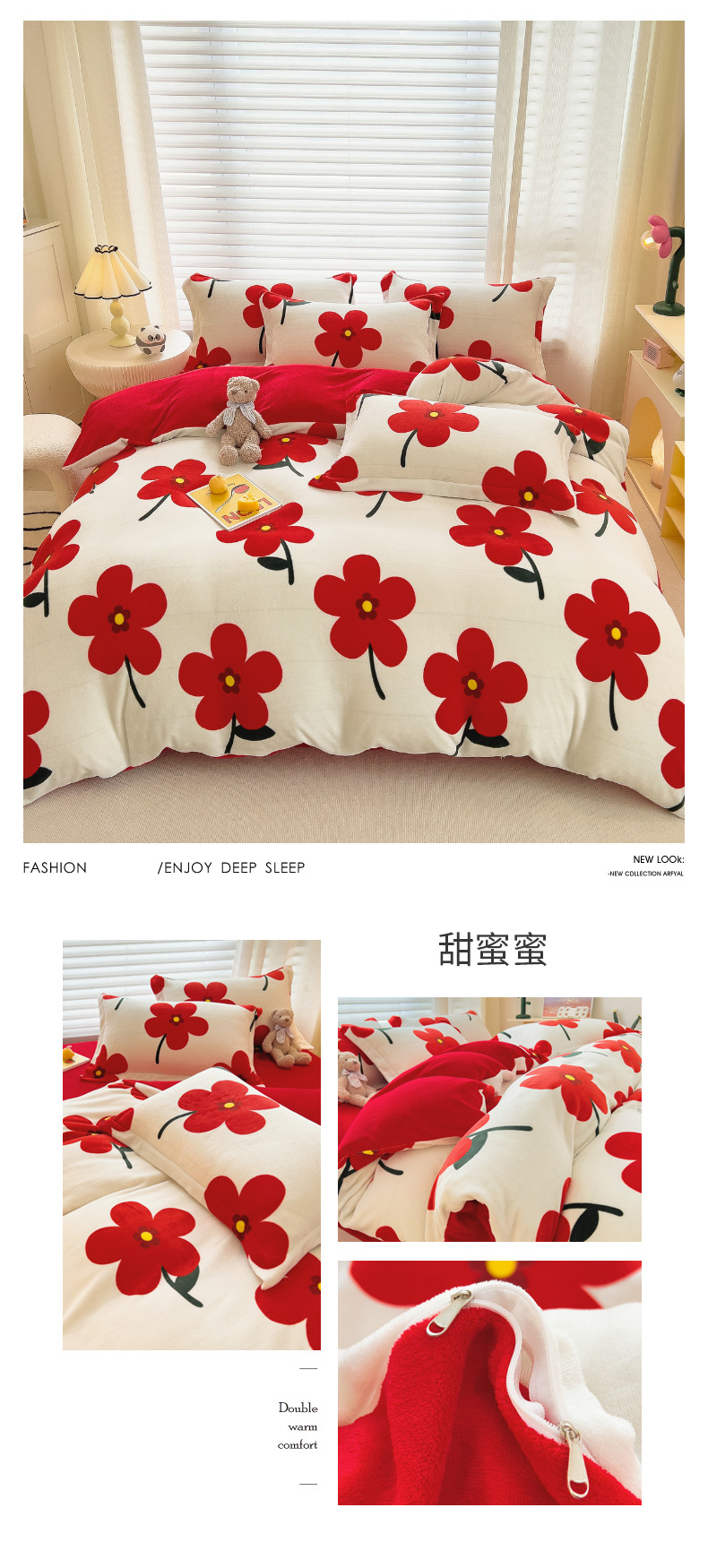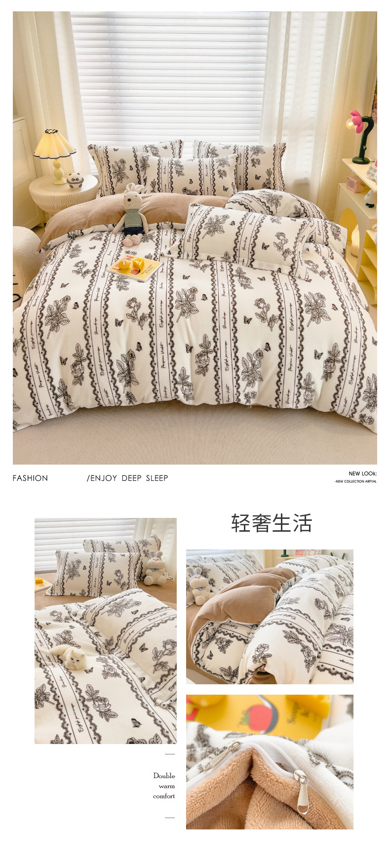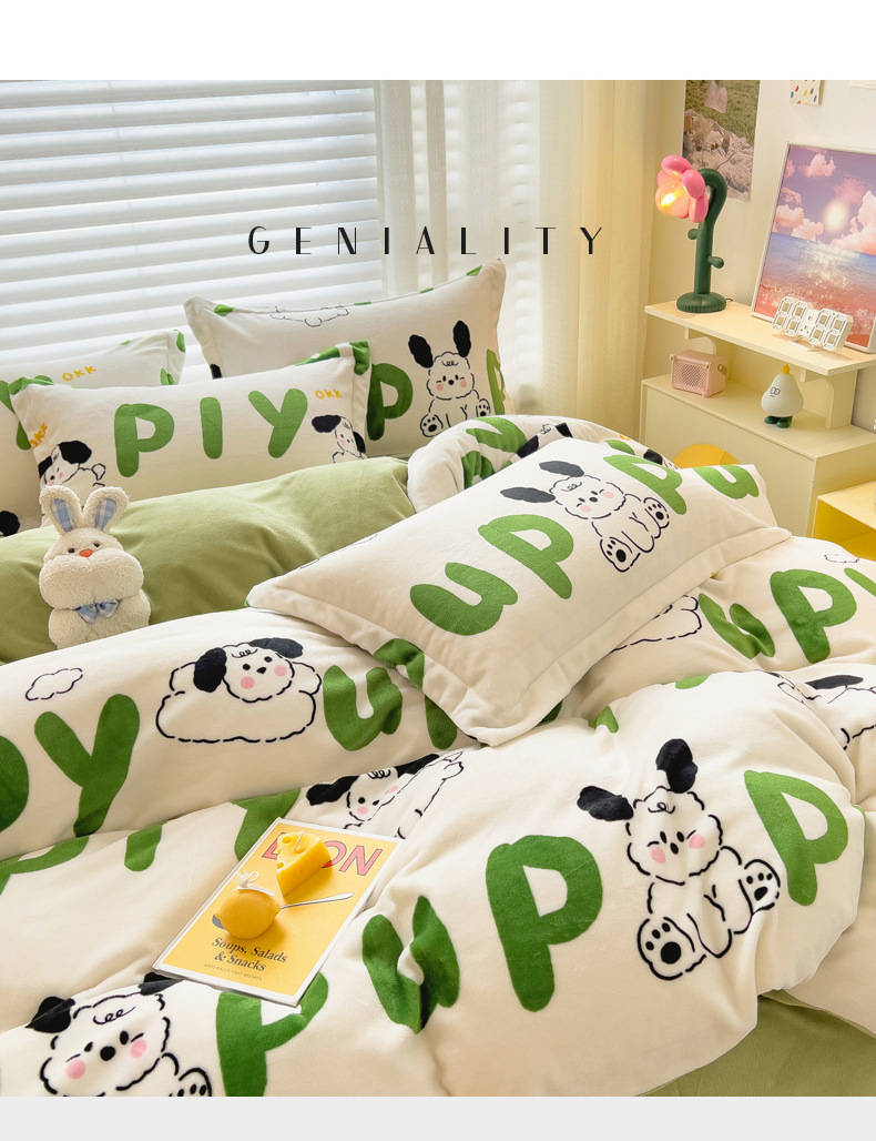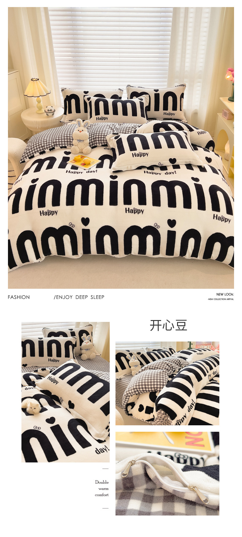 Cartoon Little Fresh Milk Velvet set de cuatro piezas ropa de cama engrosada y cálida en invierno, sábanas, edredones, edredones, franela