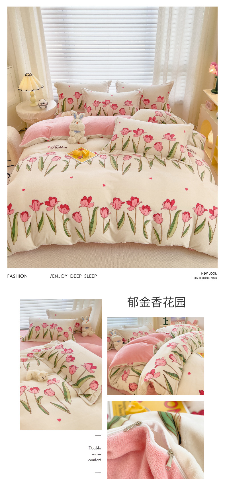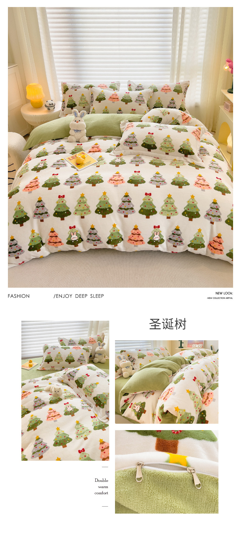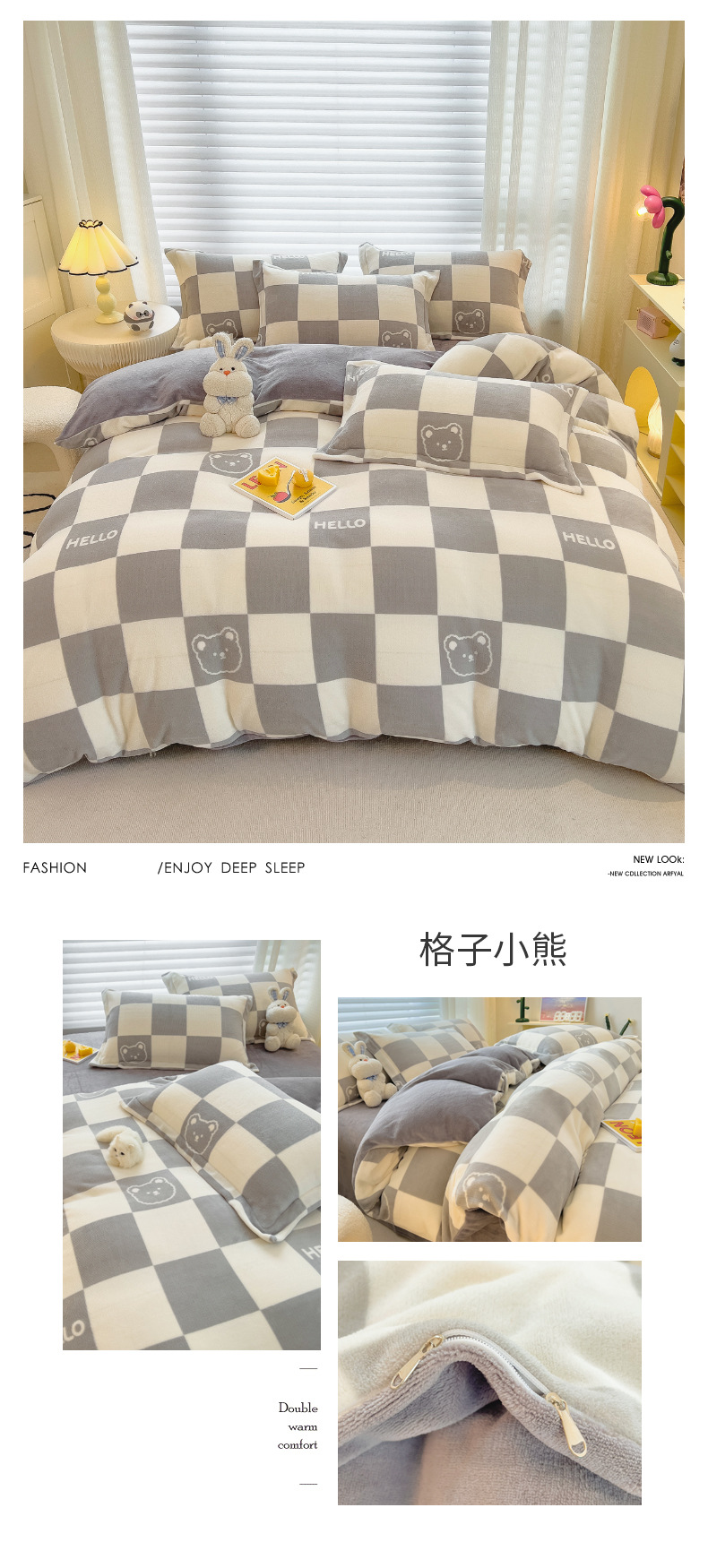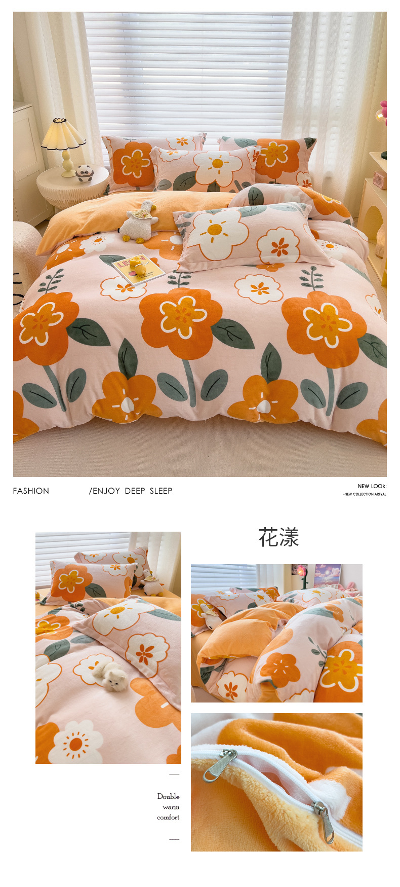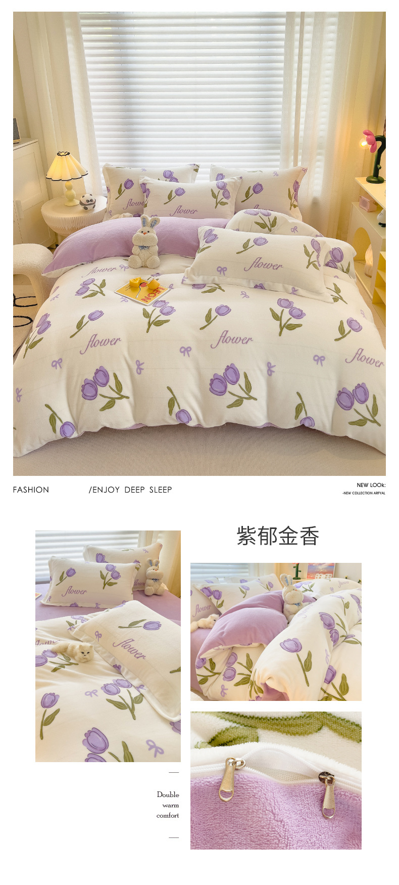 Cartoon Little Fresh Milk Velvet set de cuatro piezas ropa de cama engrosada y cálida en invierno, sábanas, edredones, edredones, franela