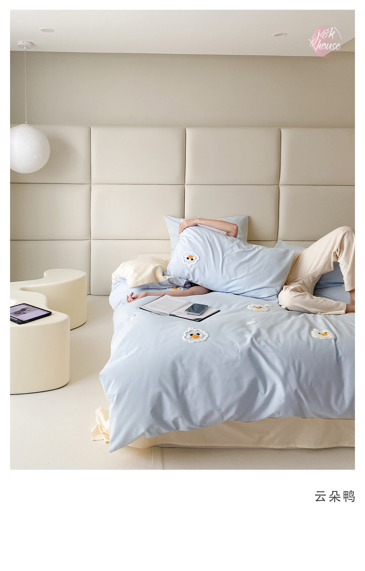 Categoría a cuatro juegos de edredones molidos de algodón puro, ropa de cama de dibujos animados, sábanas encantadoras, edredones, edredones, sombreros de bambú, dormitorios bordados, tres juegos