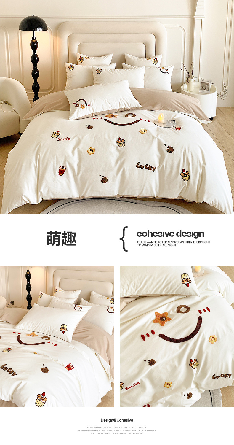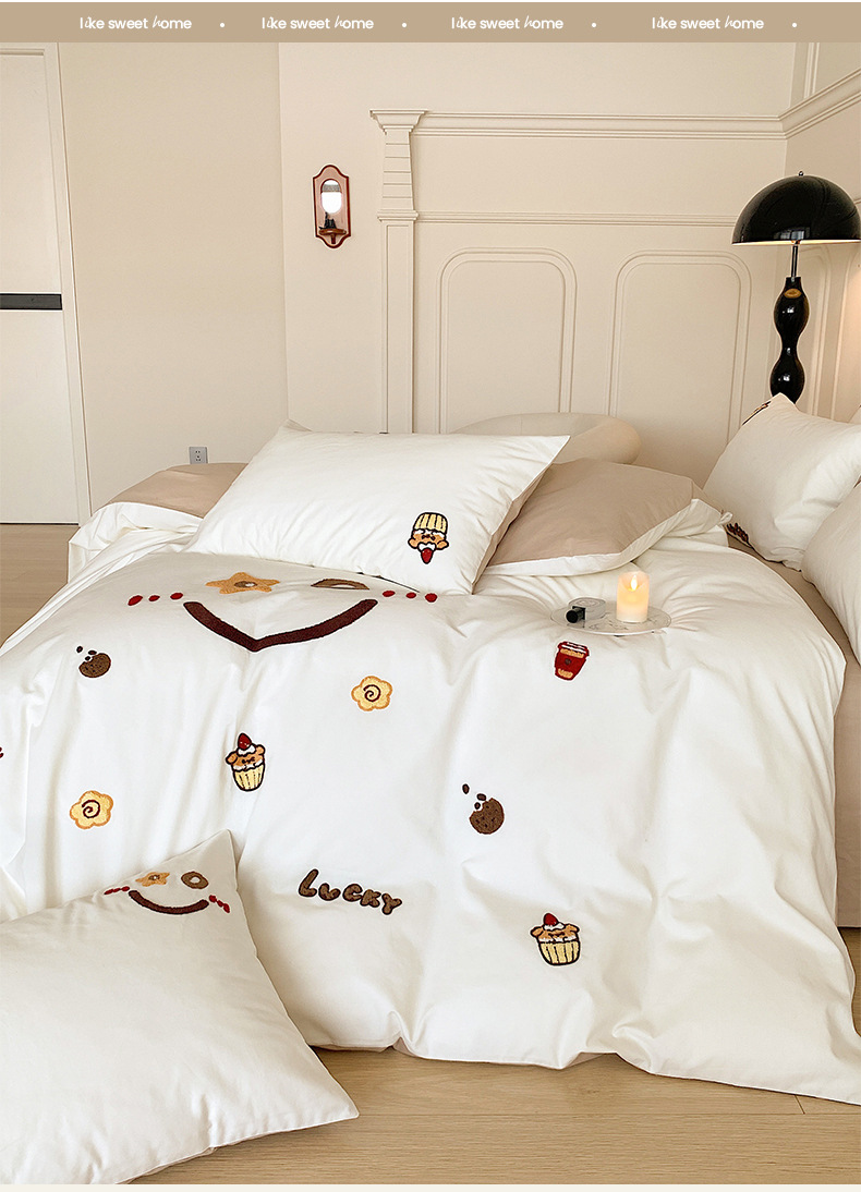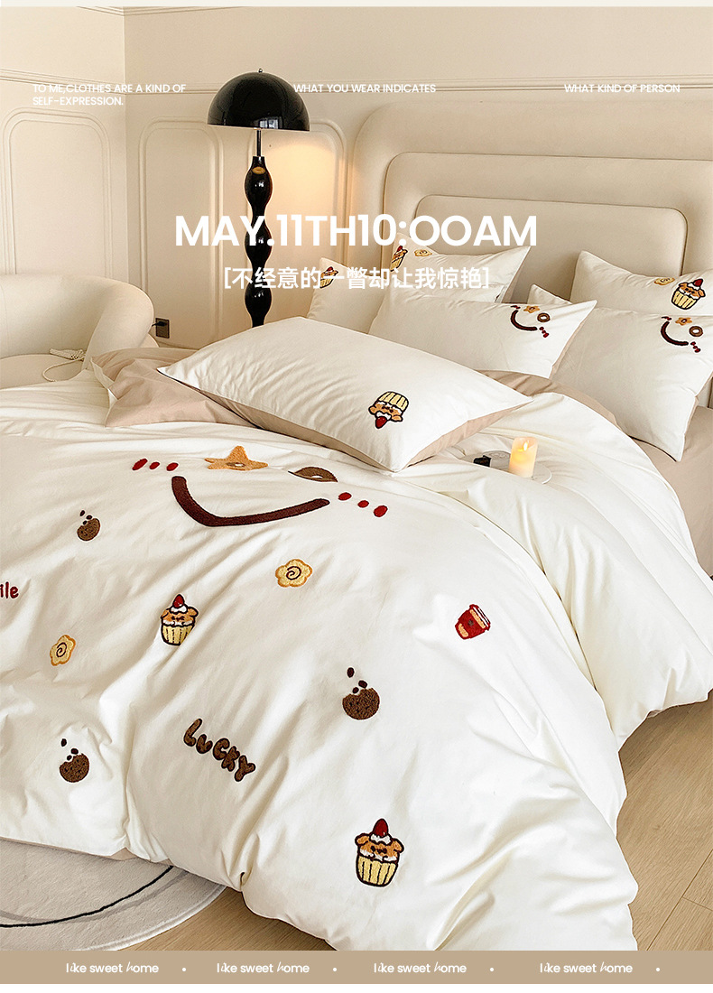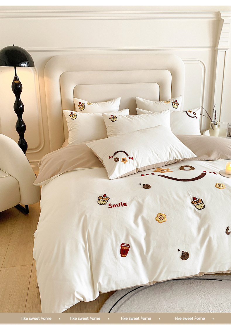 Categoría a cuatro juegos de ropa de cama de algodón puro de grado maternoinfantil, sábanas de cama, sábanas de cama, juegos de dormitorio de bordado de algodón molido