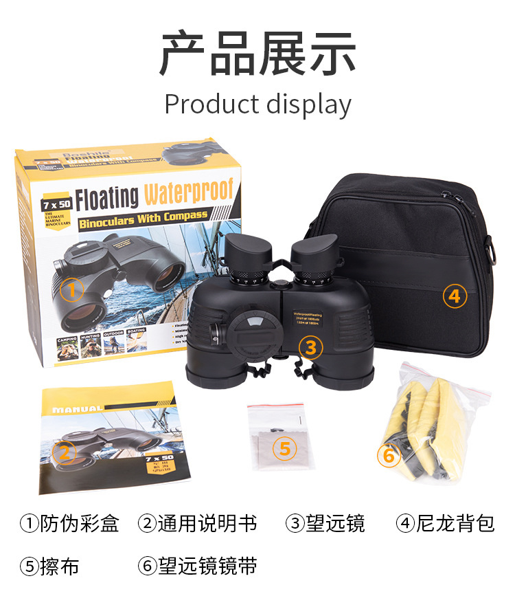 Binoculares boshile van de alta definición 7x50 gafas de visión nocturna militares para navegación adulta gafas de visión impermeable para buques