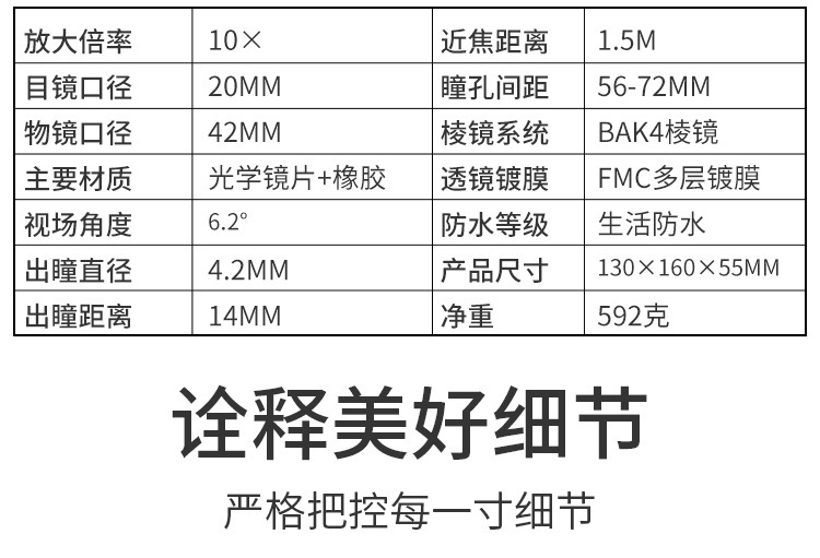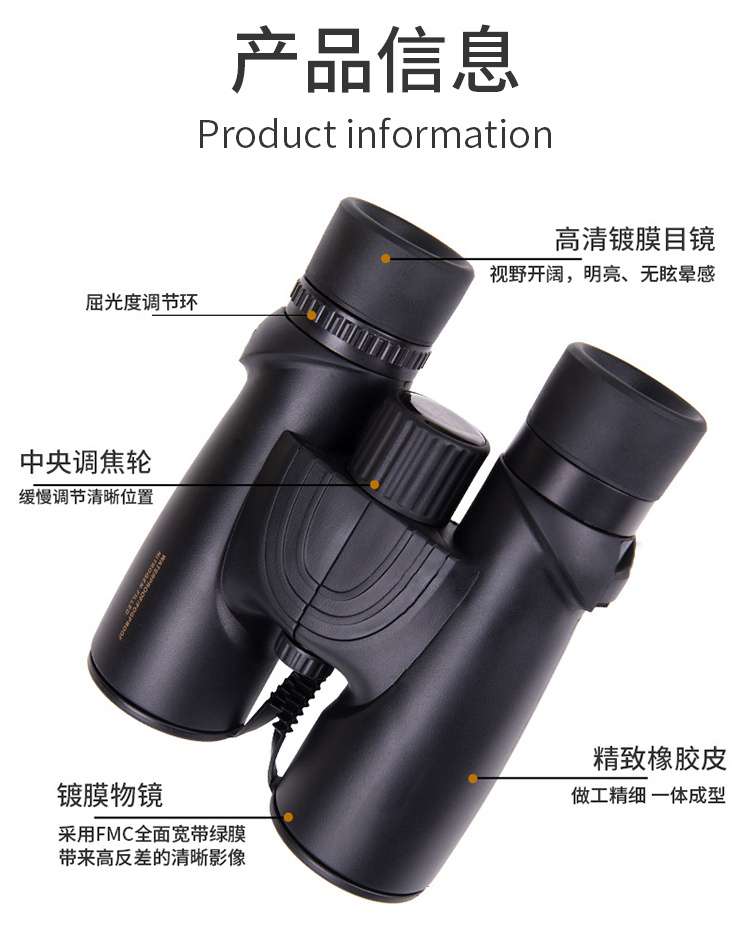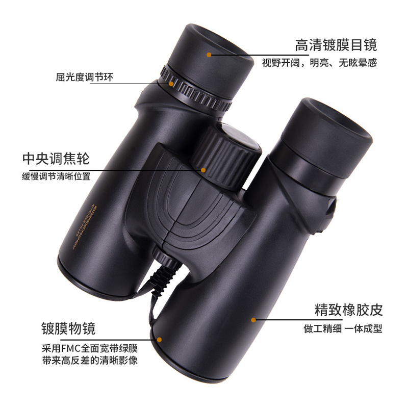 Venta al por mayor de telescopios 10x42 gafas de visión al aire libre impermeables de nitrógeno de alta definición de alta definición