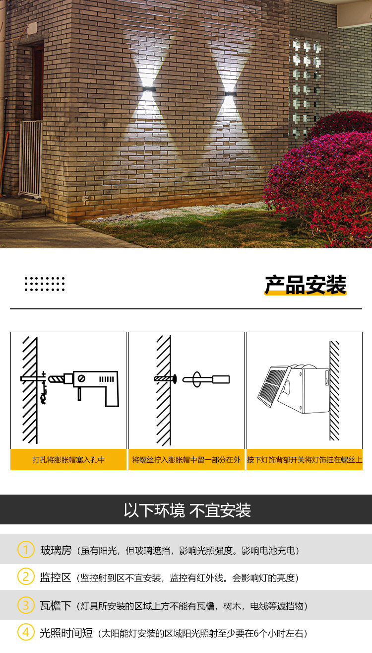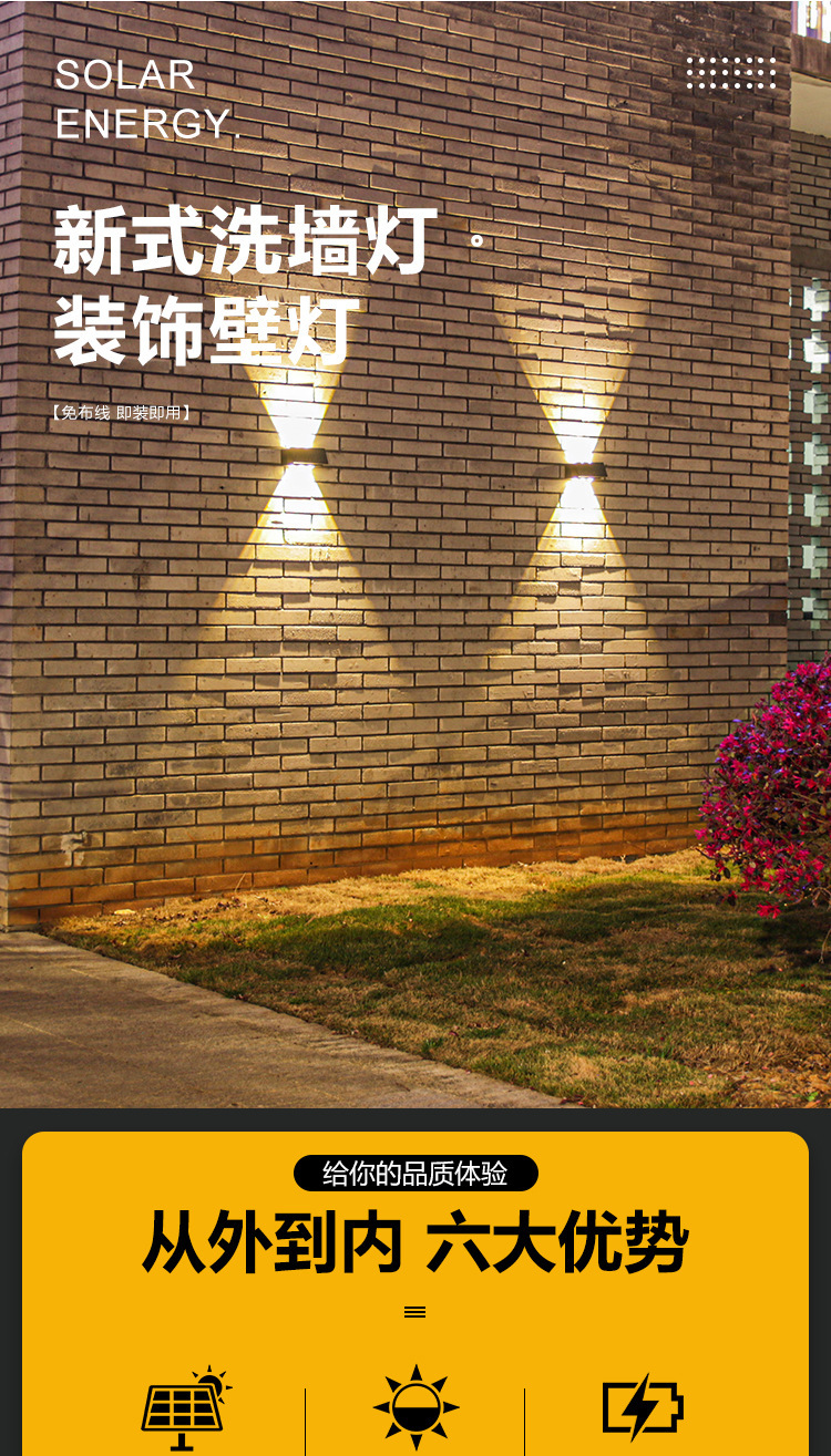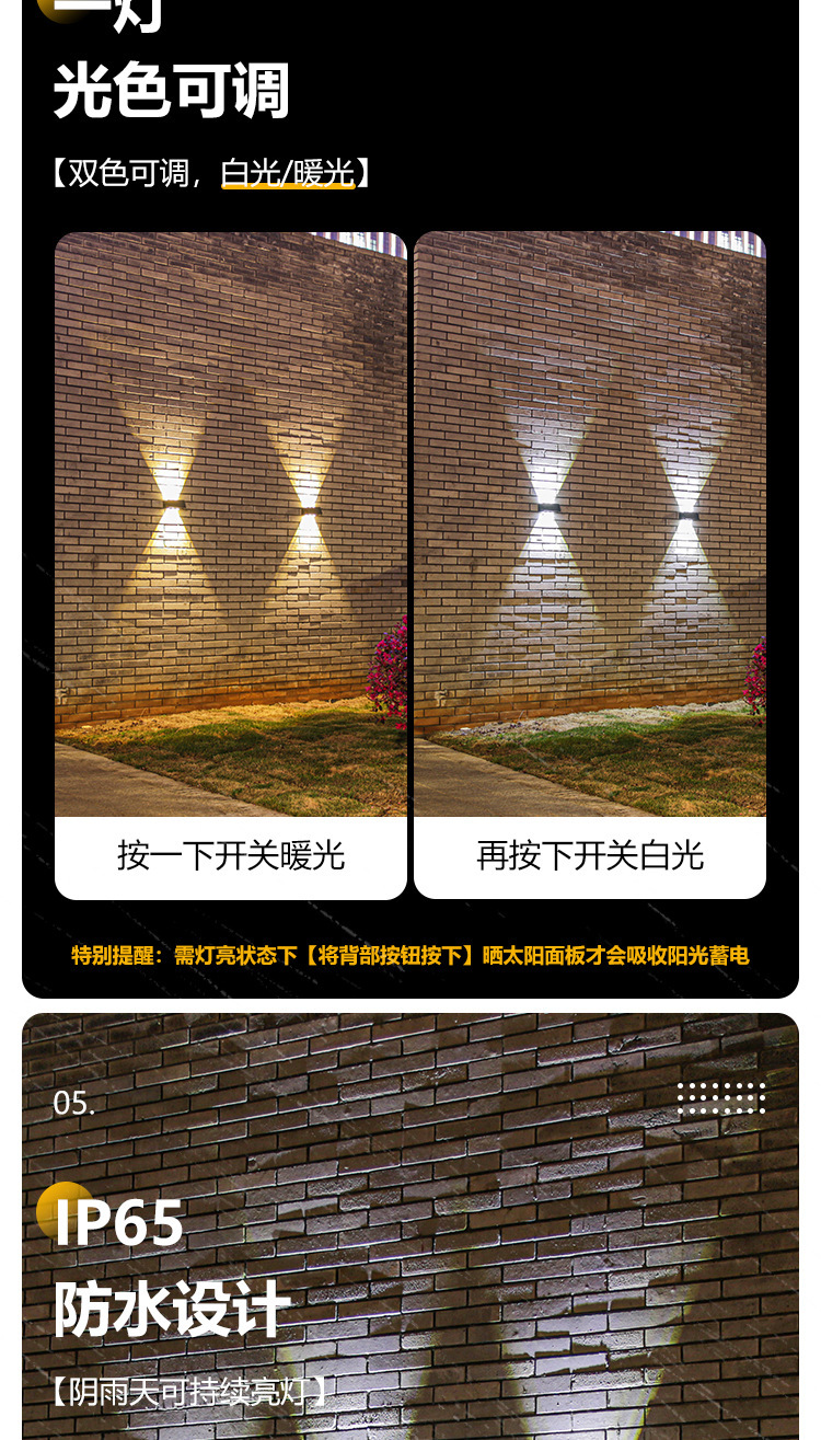Lámparas de lavado de paredes solares súper brillantes luces de lavado de paredes arriba y abajo lámparas de pared de pared lámparas de decoración de patio de Villa lámparas de proyección impermeable al aire libre