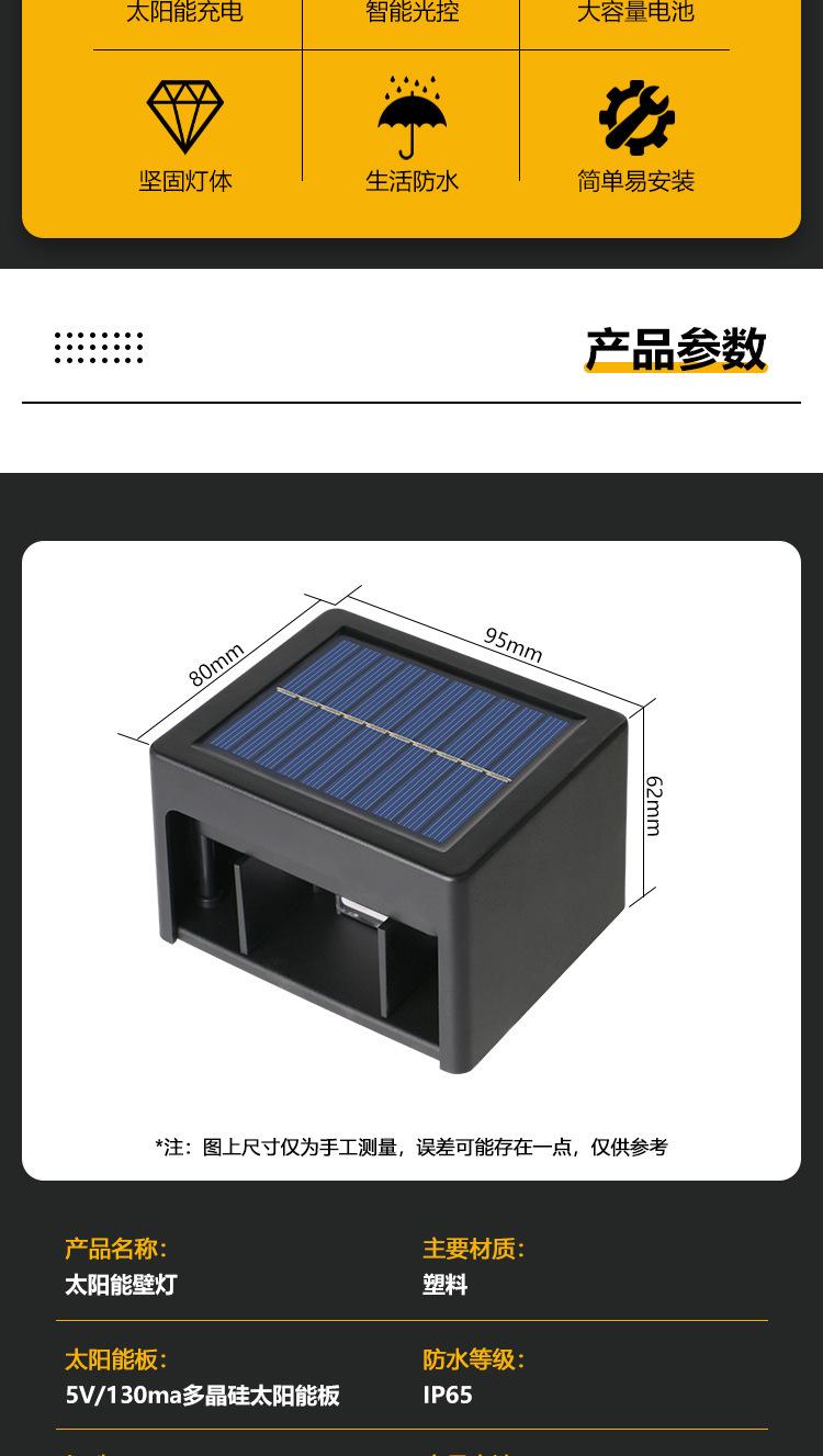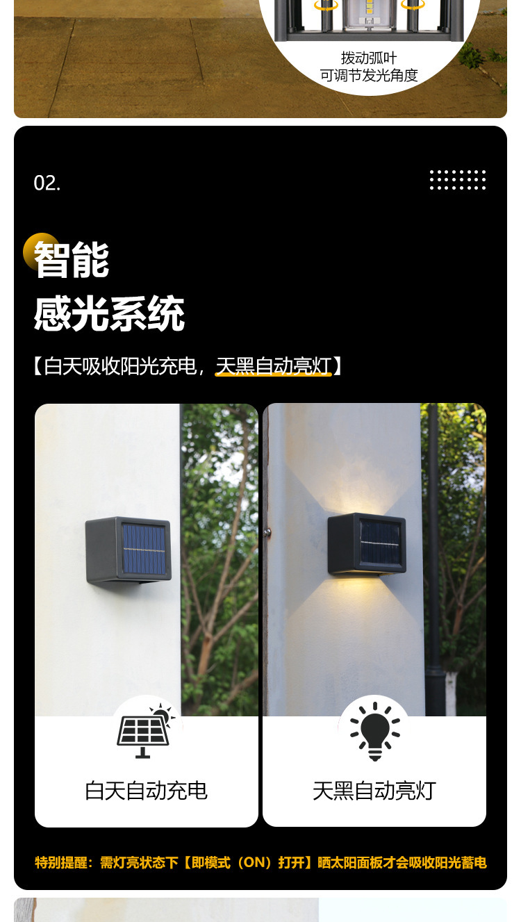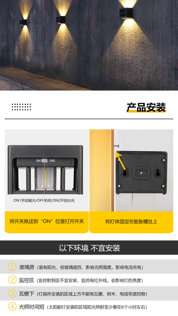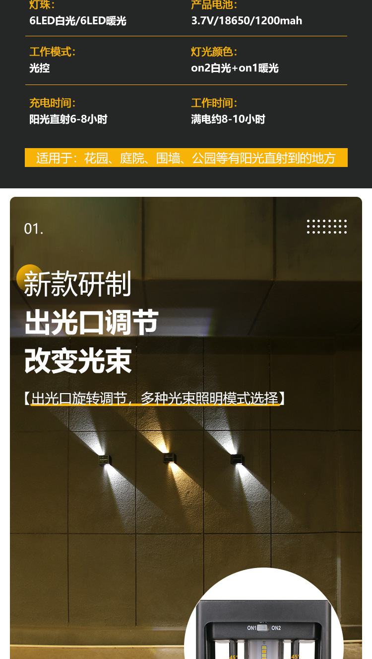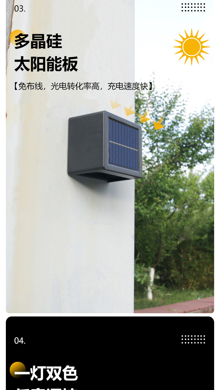 Luz solar de pared exterior patio iluminación de paisaje de patio Villa balcón pared de jardín luz de lavado de pared impermeable al aire libre