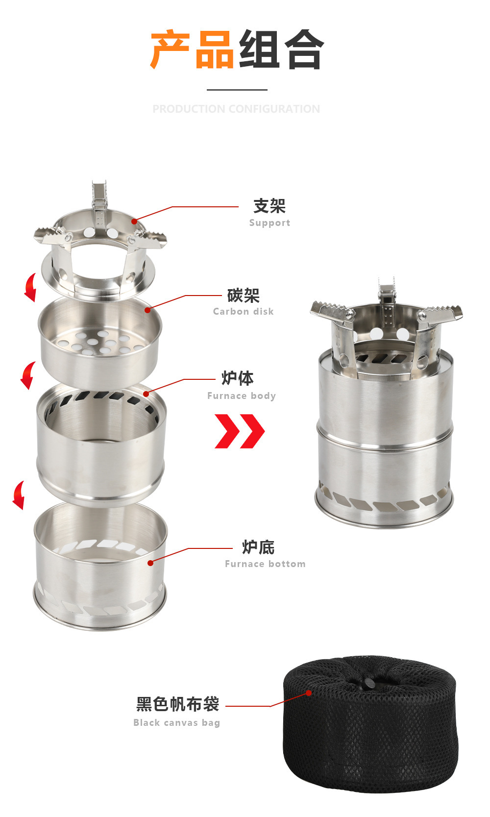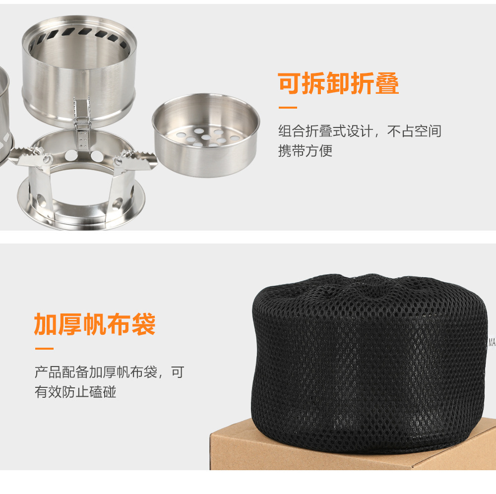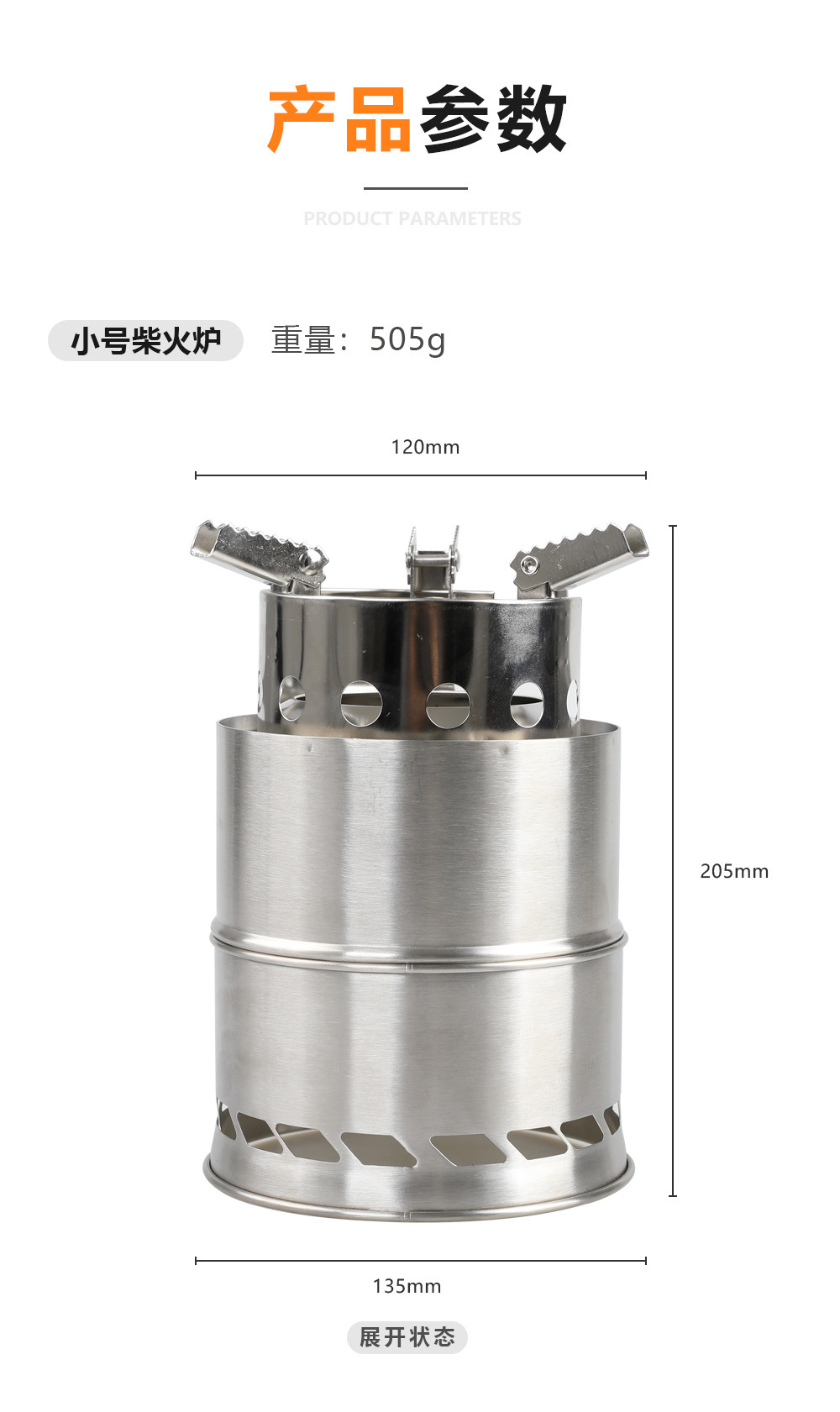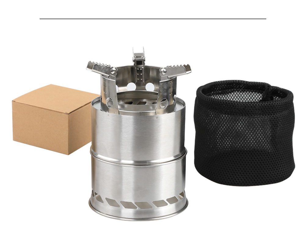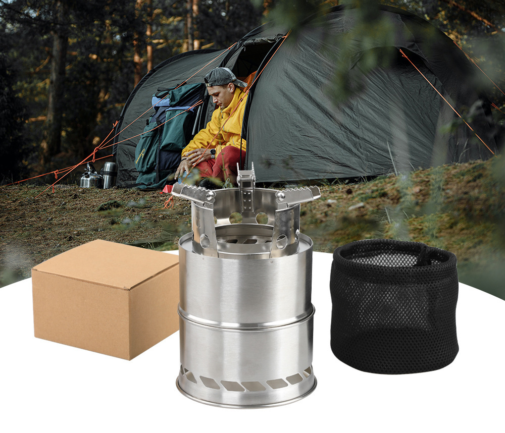Estufa de leña de picnic al aire libre estufa plegable portátil de leña estufa de carbón a prueba de viento engrosada estufa de leña de acero inoxidable