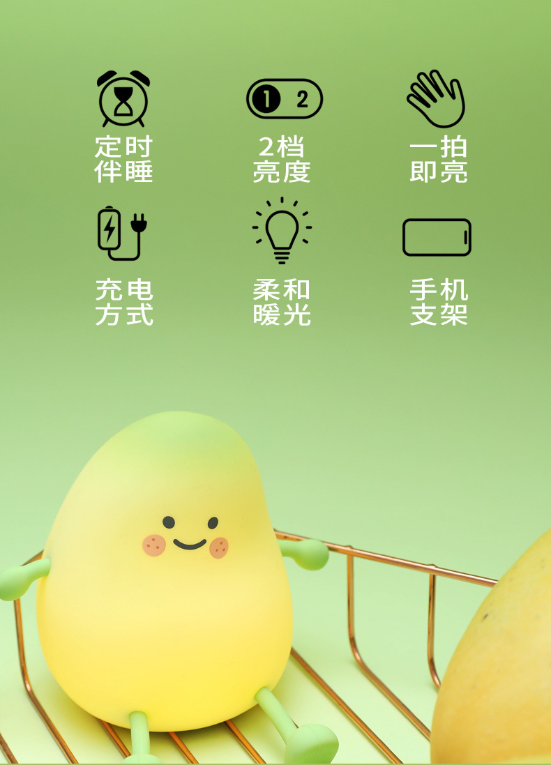 Mango Little Night LIGHT LED LIGHT stand Light Atmospheric Light Silicon dormitorio Sleep Bed lantern gift Shooting Light Lovely