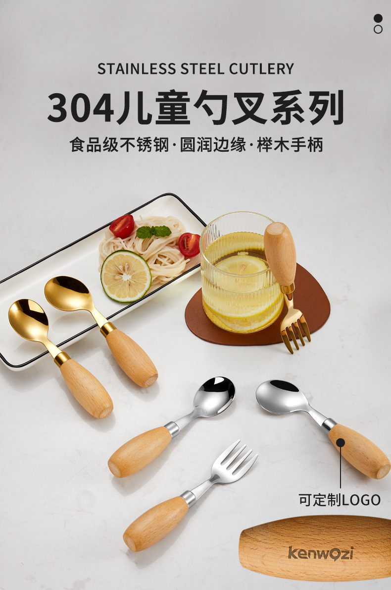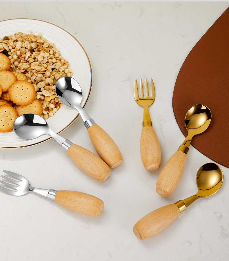 304 vajilla de cuchara de tenedor de acero inoxidable los niños aprenden a comer entrenamiento cuchara bebé bebé bebé juego de vajilla complementaria