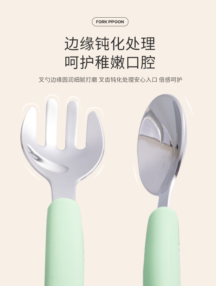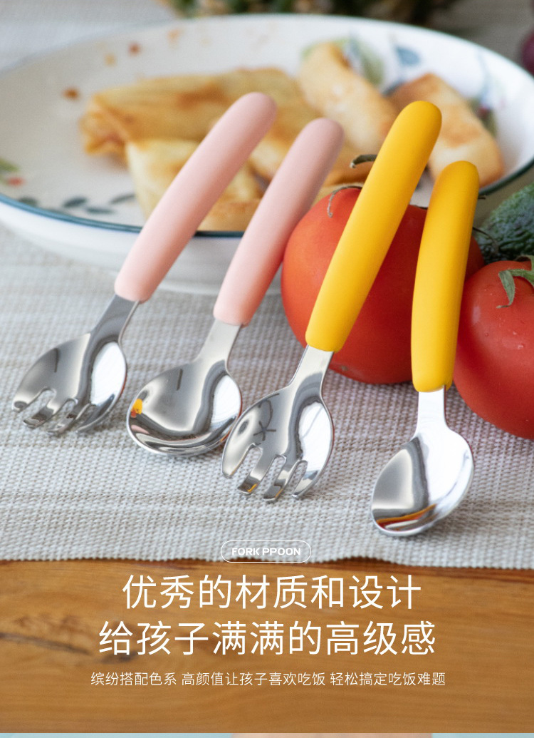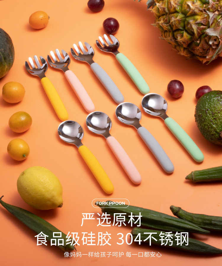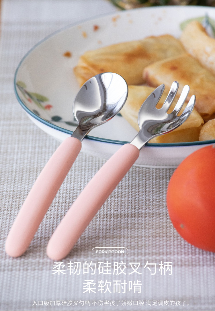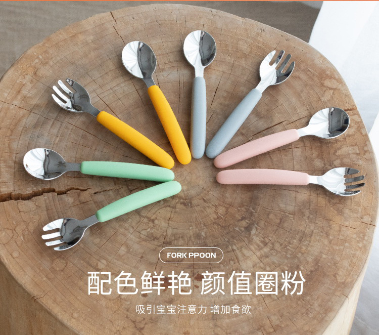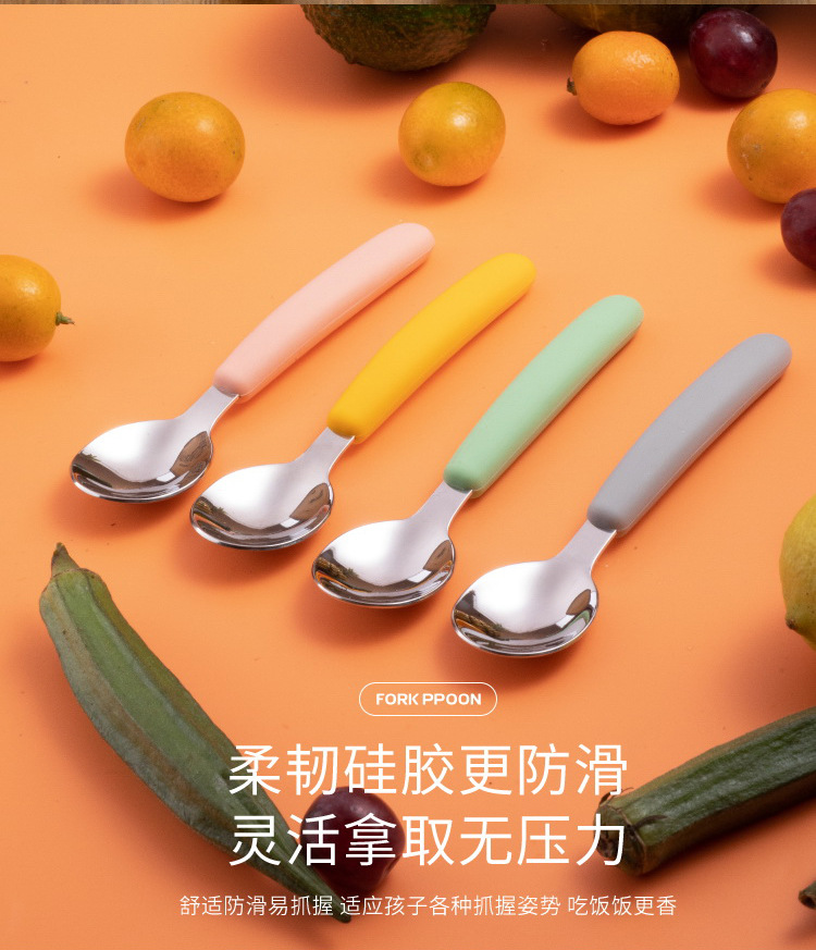 304 tenedores y cucharas de acero inoxidable, grado alimenticio para bebés, cucharas de mango de silicona, vajilla auxiliar, juegos de vajilla para tiendas infantiles y maternas